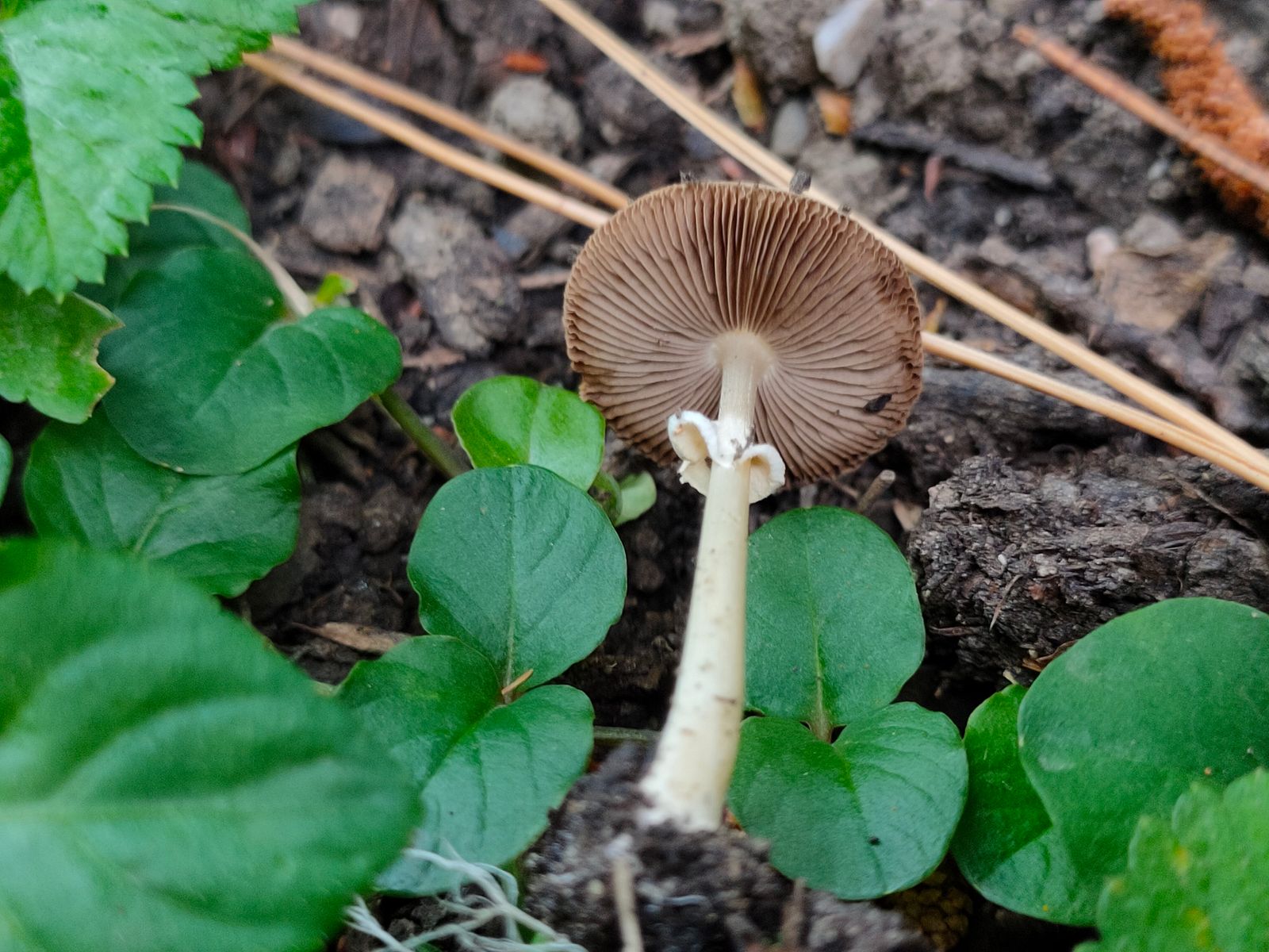 Dieser Ockerbraune kleine Pilz (2-3 cm) wuchs einzeln unter einer japanischen Tuja. Dieser hatte einen dünnhäutigen hängenden Ring.