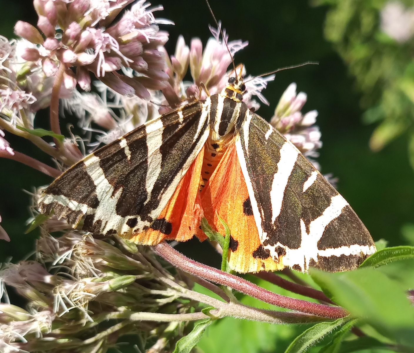 Mangels weiterer Pilze musste ich die Aufmerksamkeit auf anderes richten. Diesen hübschen Gesellen habe ich als Spanische Flagge (Euplagia quadripunctaria) identifiziert. Die Blüte ist, glaube ich, vom Wasserdost: