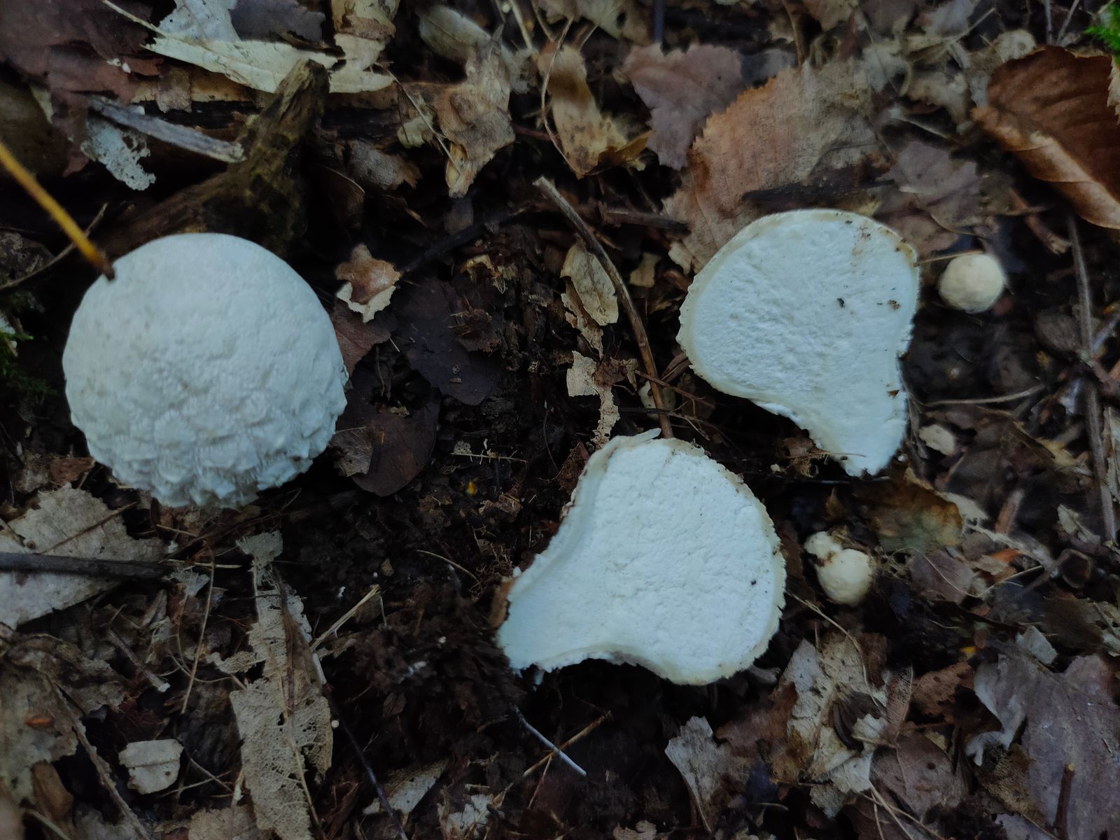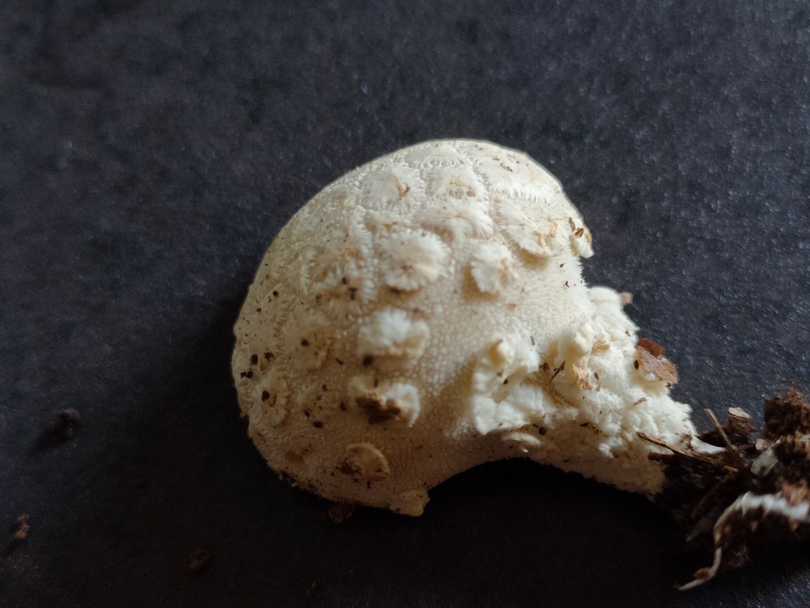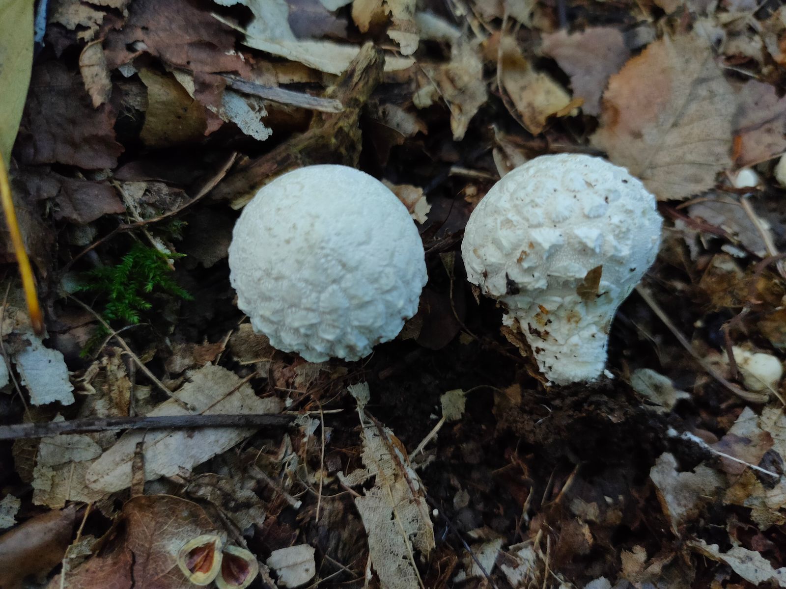 1. Der wohl eher seltene Lycoperdon mammifore - Flockenstäubling, war auf sehr trockenen steilem Lehmboden zwischen Fagus, Quercus, Carpinus zu finden. Dieser sieht optisch aus, als ob ein Crossgolfer seine Bälle im Wald liegen gelassen hätte.