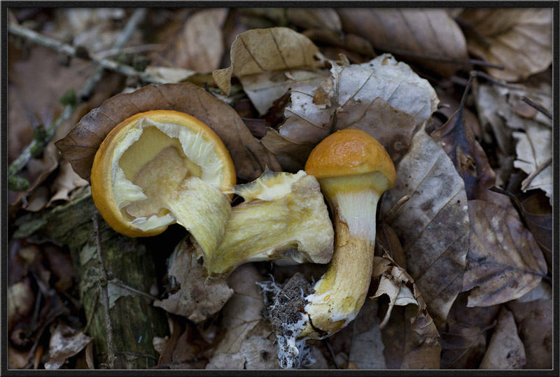 Auch habe ich heute den Gold Röhrling (Suillus Grevillei) gefunden, wenn es er denn ist, der Wald, eine neuer Stelle wo ich zuvor noch nie war, stand voll davon. Ich habe aber alle stehen lassen. Oder ist es doch der Rostroter Lärchen Röhrling (Suillus Tridentinus). Es waren alles sehr kleine Exemplare. Diesen hatte ich zuvor schon einmal gefunden, heute jedoch in grossen Mengen.