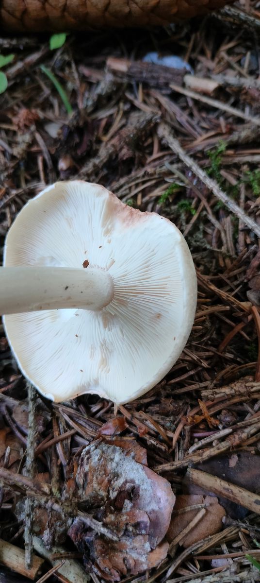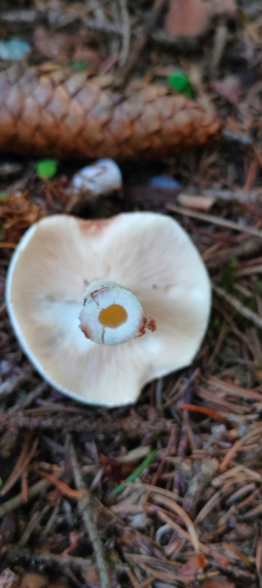 Hat jemand eine Idee, um was es sich hier ungefähr handelt, gefunden im Fichtenwald, wächst im gleichen Habitat wie der Semmelstoppelpilz. Stiel wie im Bild zu sehen hohl, keine Knolle oder ähnliches, der Fruchtkörper hat sich im Schnittbild nicht verfärbt, hatte leider vergessen auf den Geruch zu achten, war aber wahrscheinlich eher unauffällig.