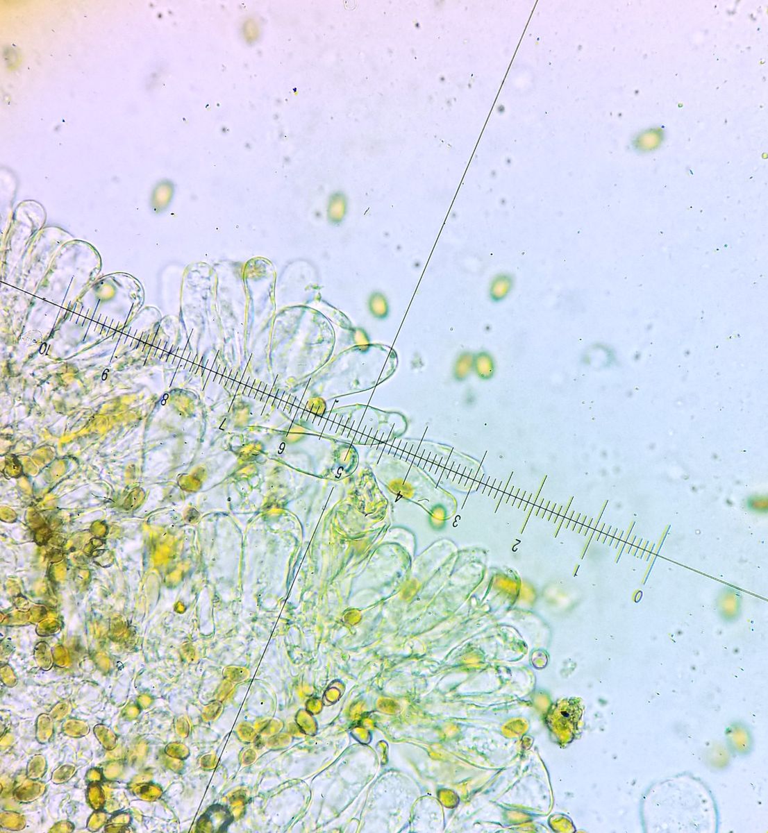 Sporen: 11-12 x 7-8 mu (nur drei Sporen im Objektiv mit dem Auge vermessen)