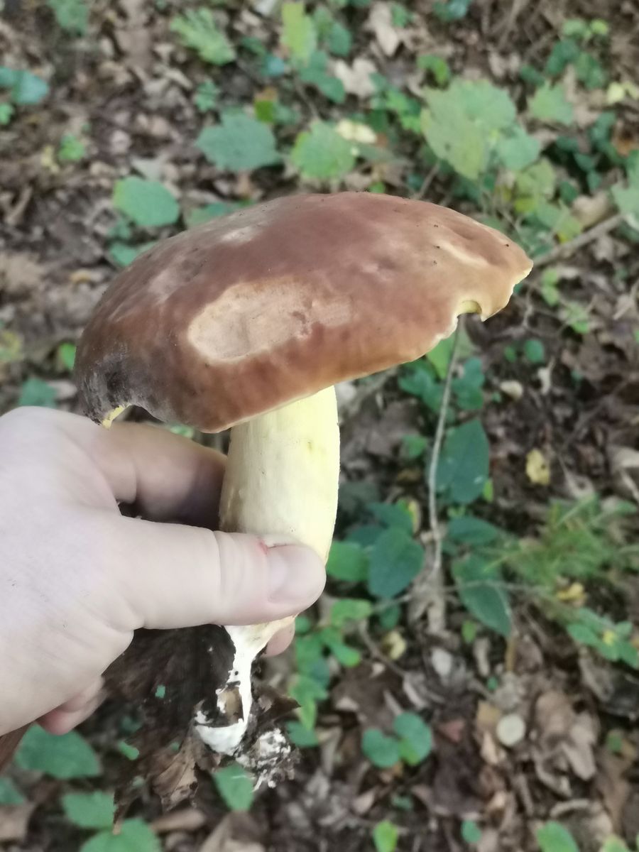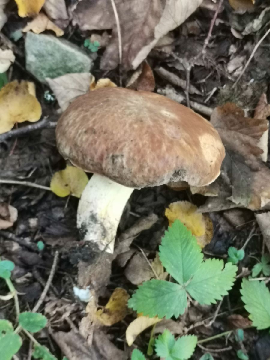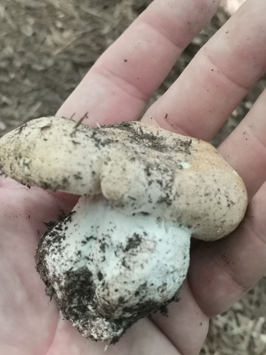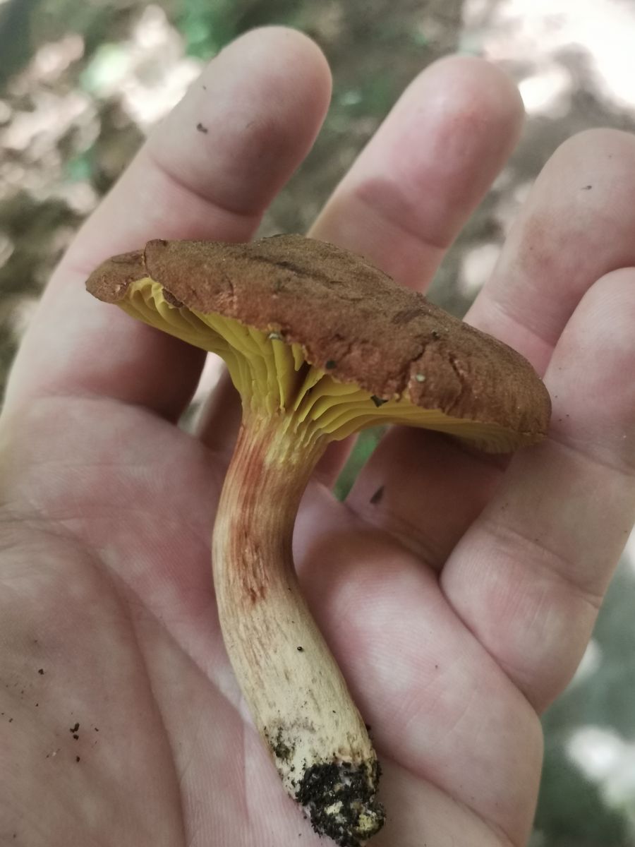 Das ist kein Anhängselröhrling wegen der gedellten Hutoberfläche und dem fehlenden Stielnetz samt fehlender Blauverfârbung.