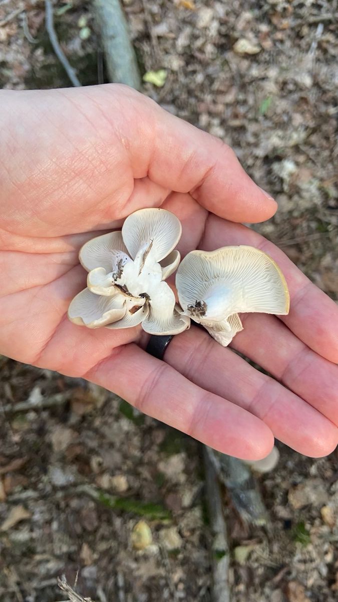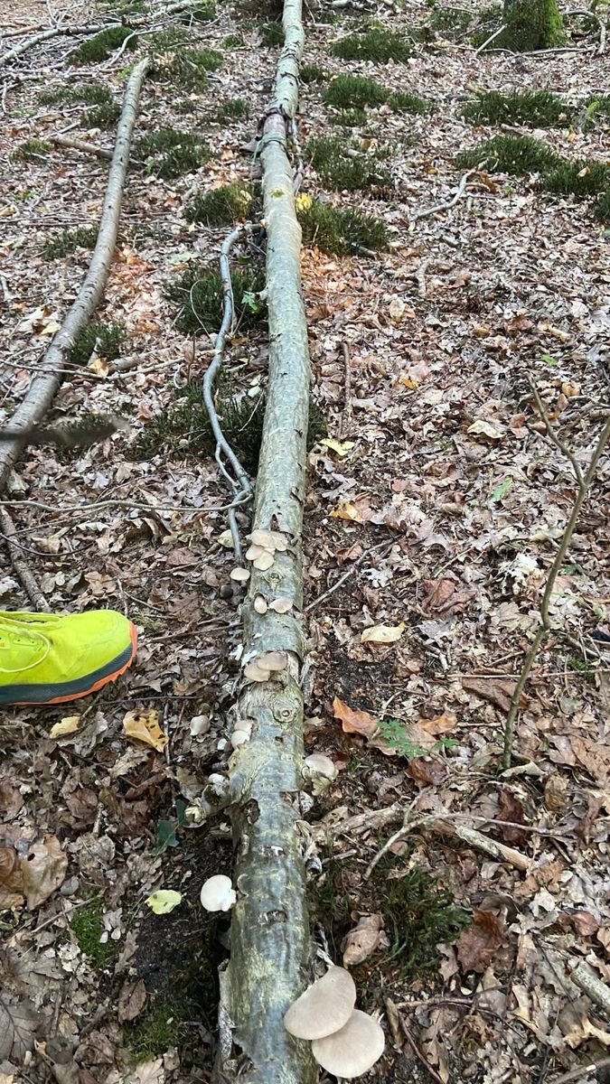 ich kam eben ohne gutes Fotoequipment an einem Baum vorbei, der ein paar Seitlinge zu bieten hatte. Die Fotos sind leider etwas dürftig (altes Handy ohne Makrolinse).