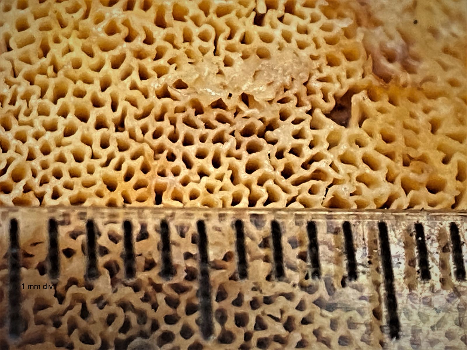 Bei der Hymenialschicht sind die Unterschiede gering: 1-2 bzw. 2-3 Poren/mm.