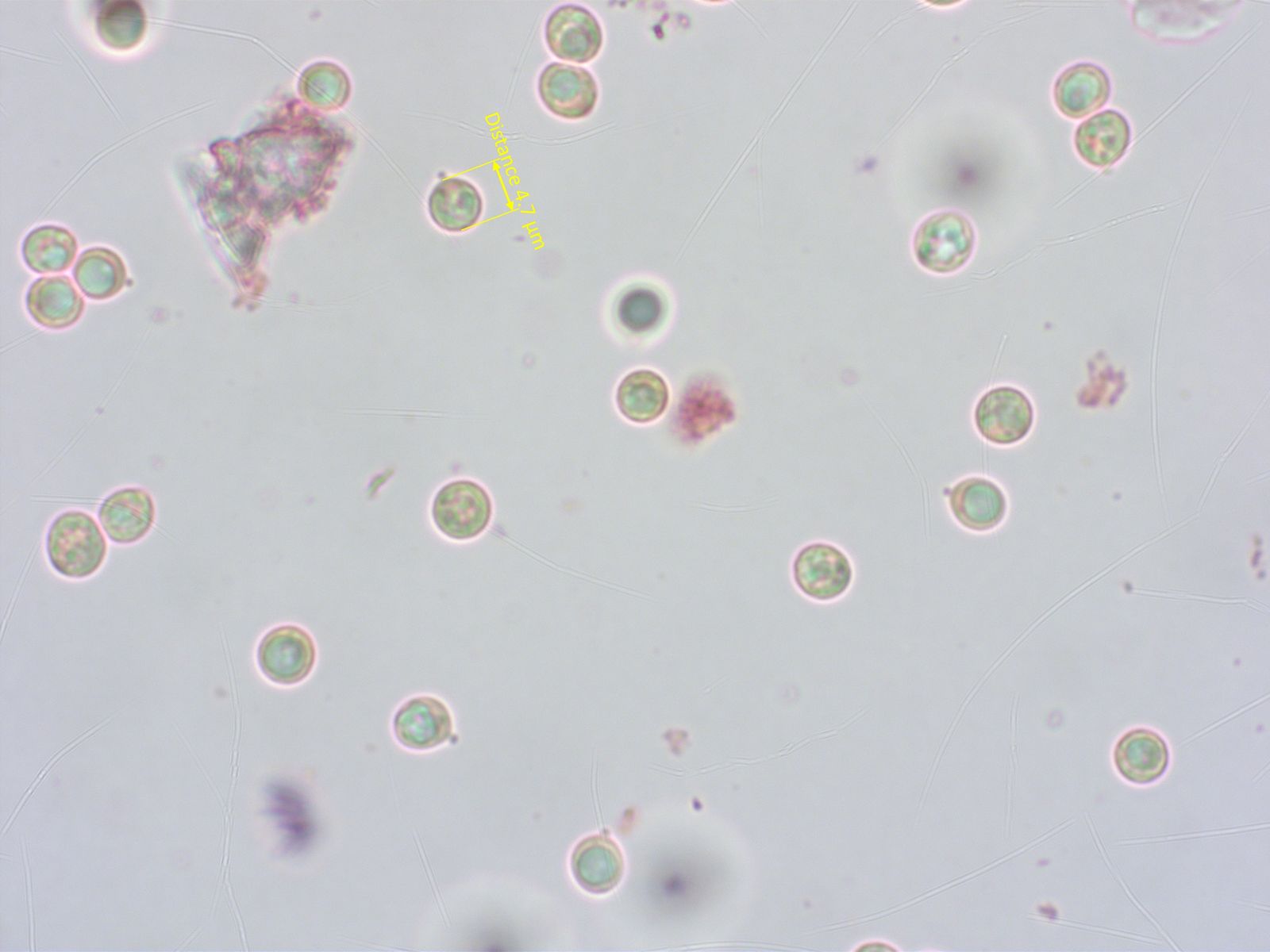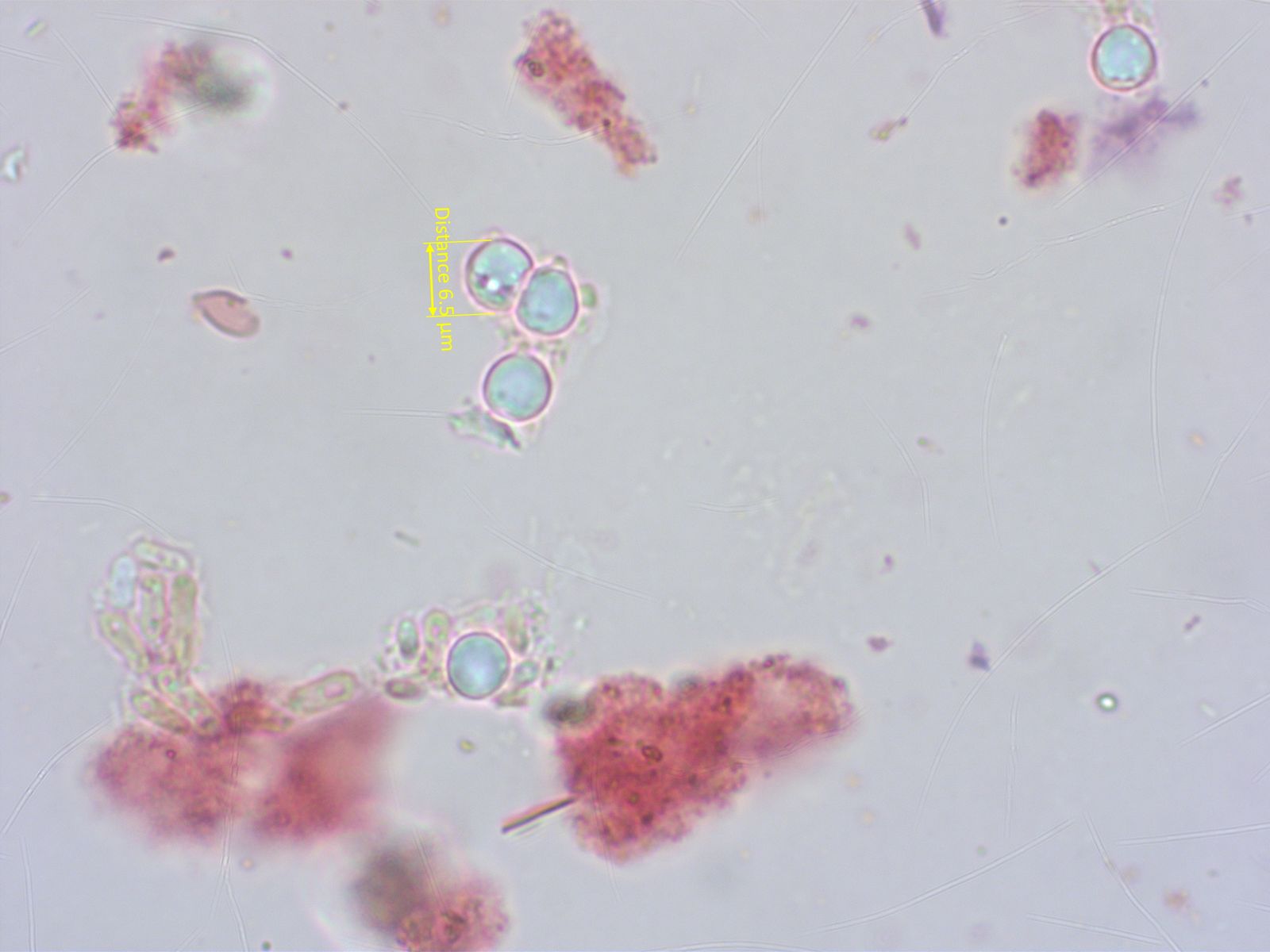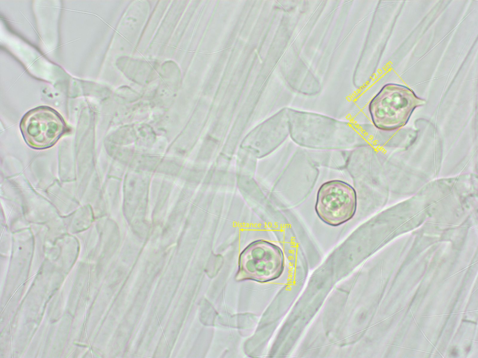 Leider gelang mir kein Sporenabwurf, aber im Präparat konnte ich doch einzelne Sporen erhaschen.