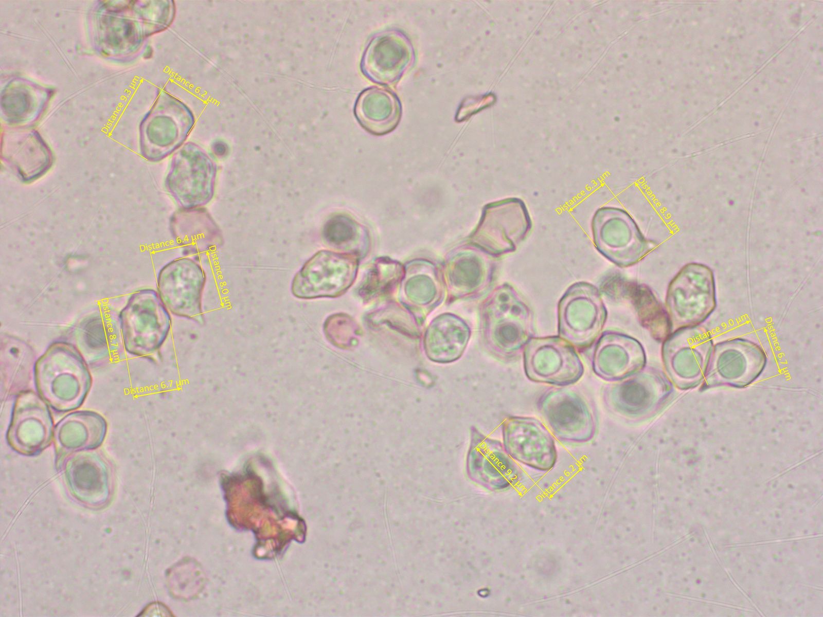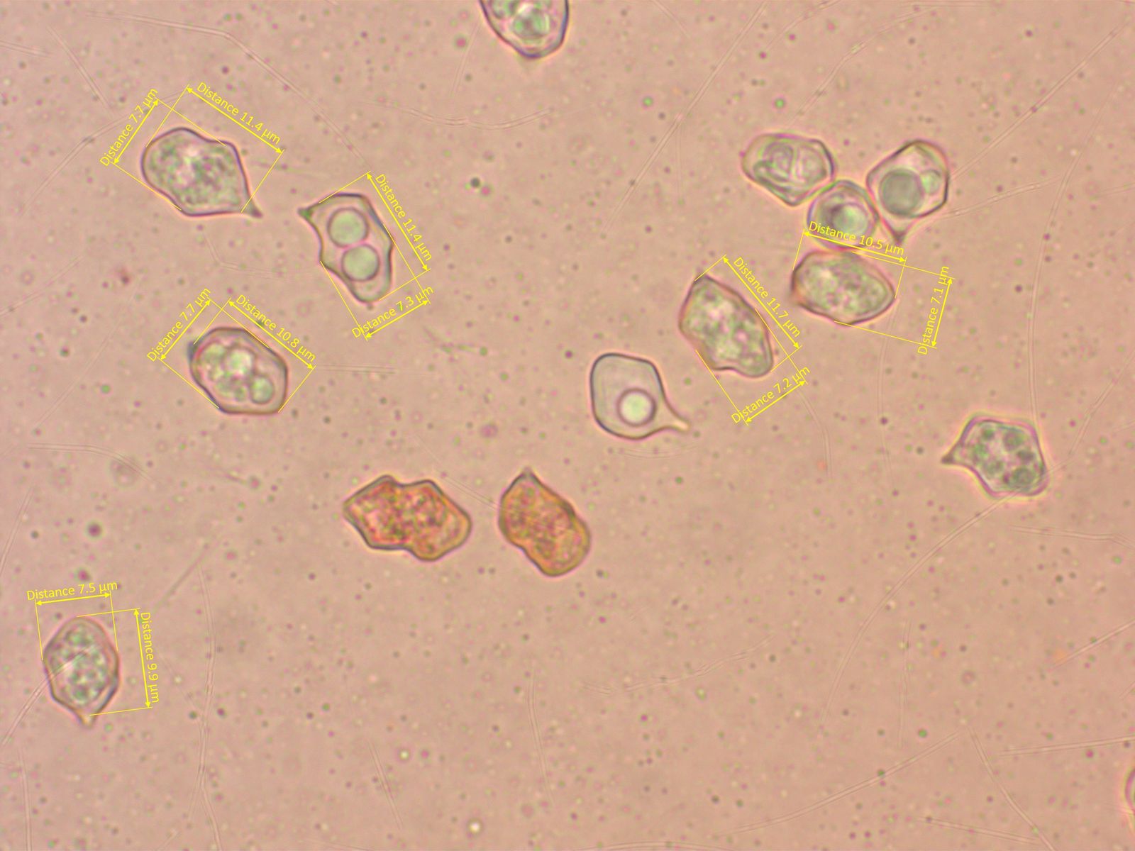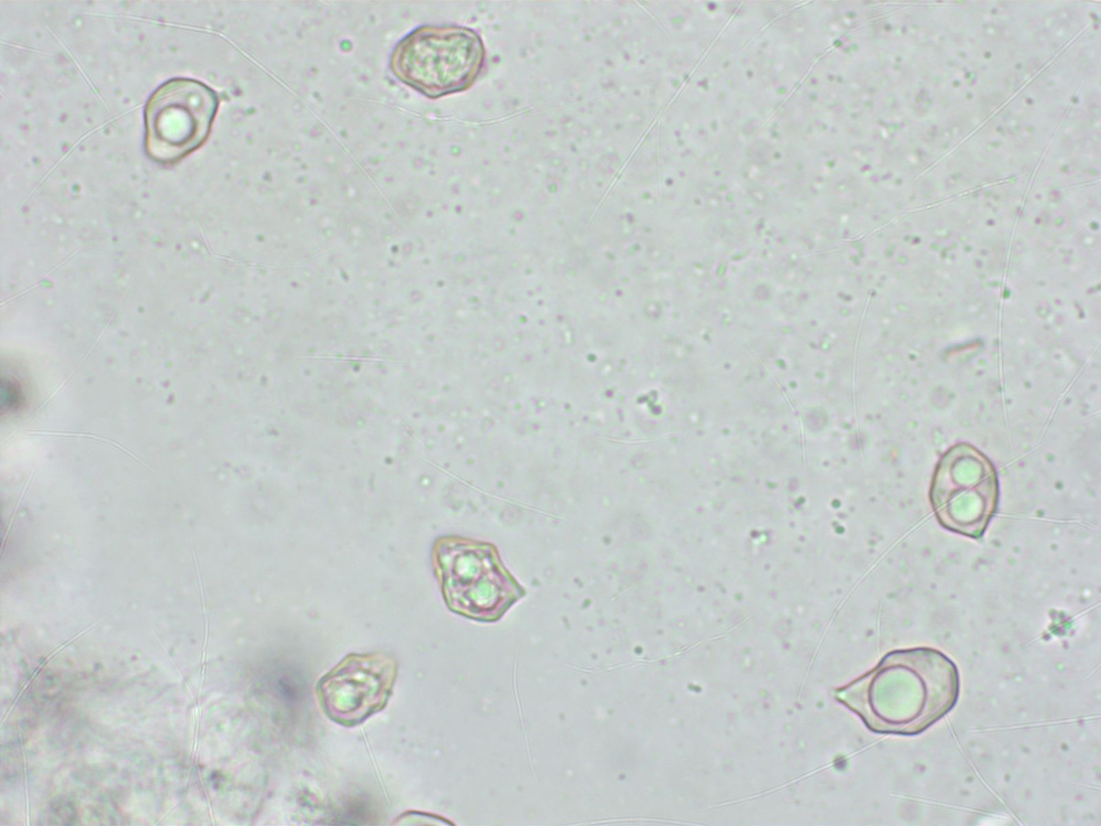 Leider gelang mir kein Sporenabwurf, aber im Präparat konnte ich doch einzelne Sporen erhaschen.