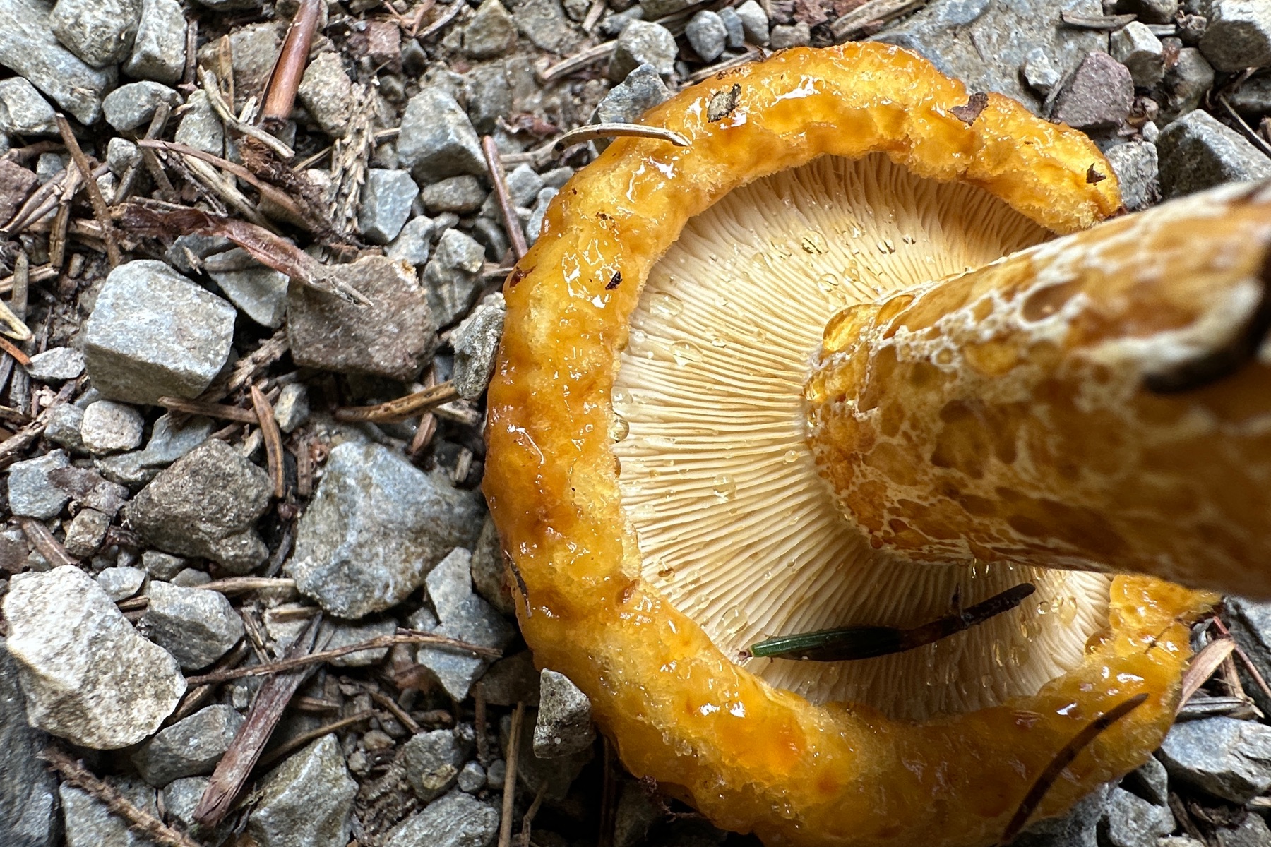 Hut: schleimig, trichterförmig, Rand stark eingerollt