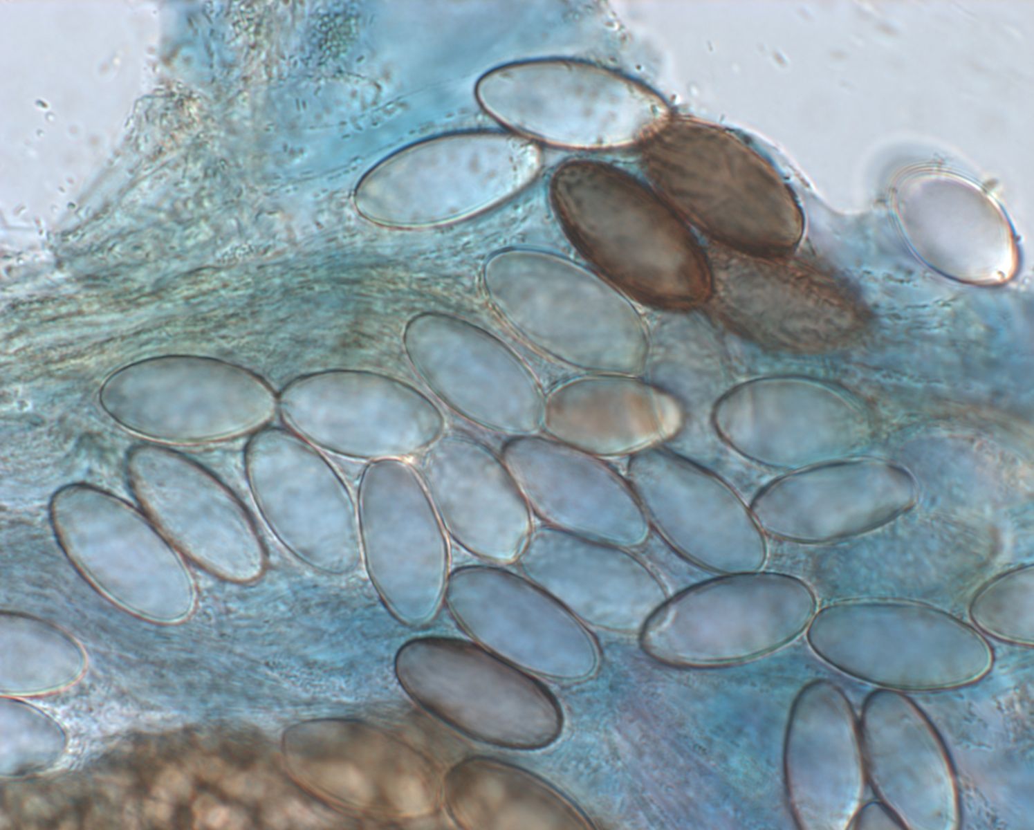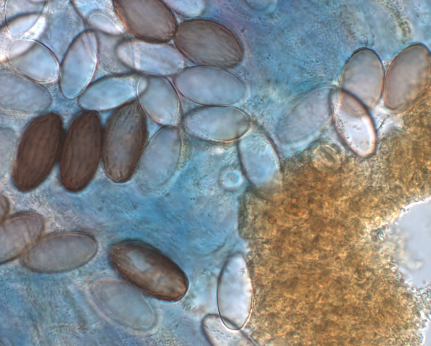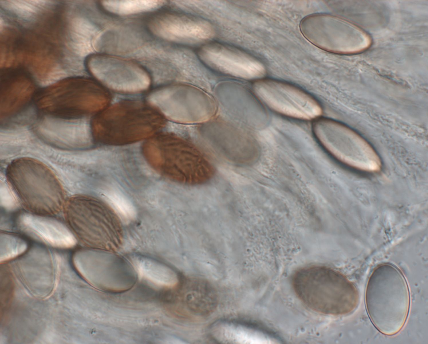 reife Sporen mit Rissen, unreife Sporen hyalin und (aus meiner Sicht) noch ohne Risse