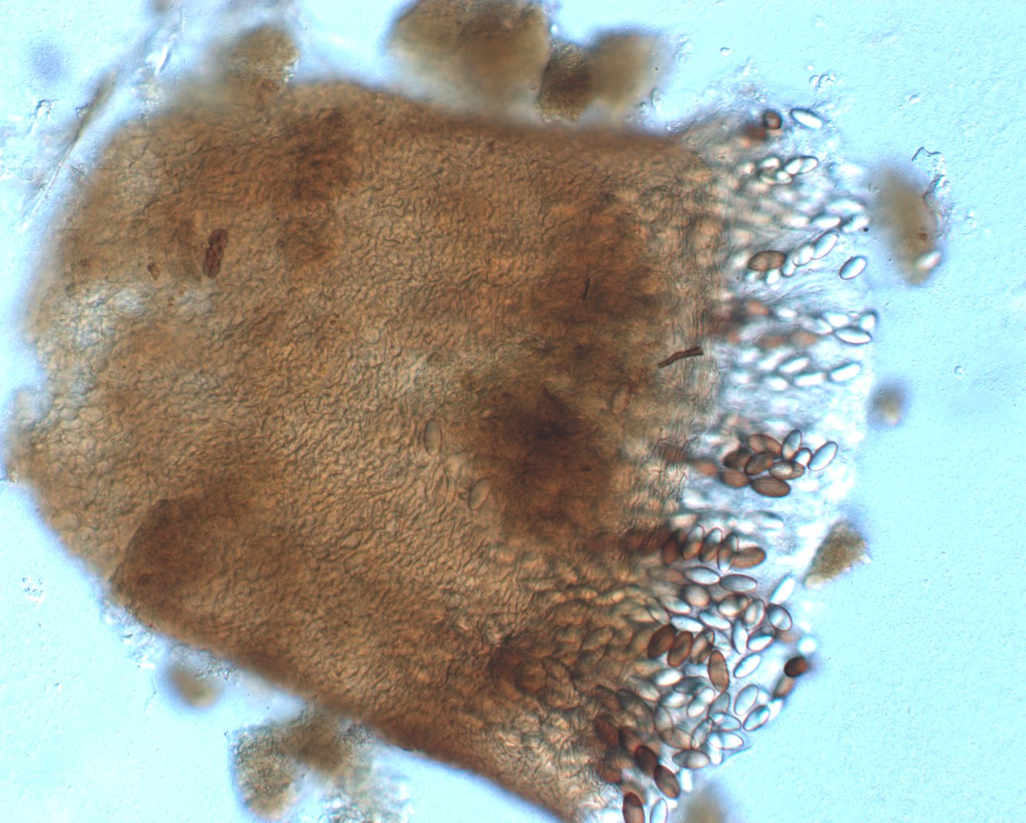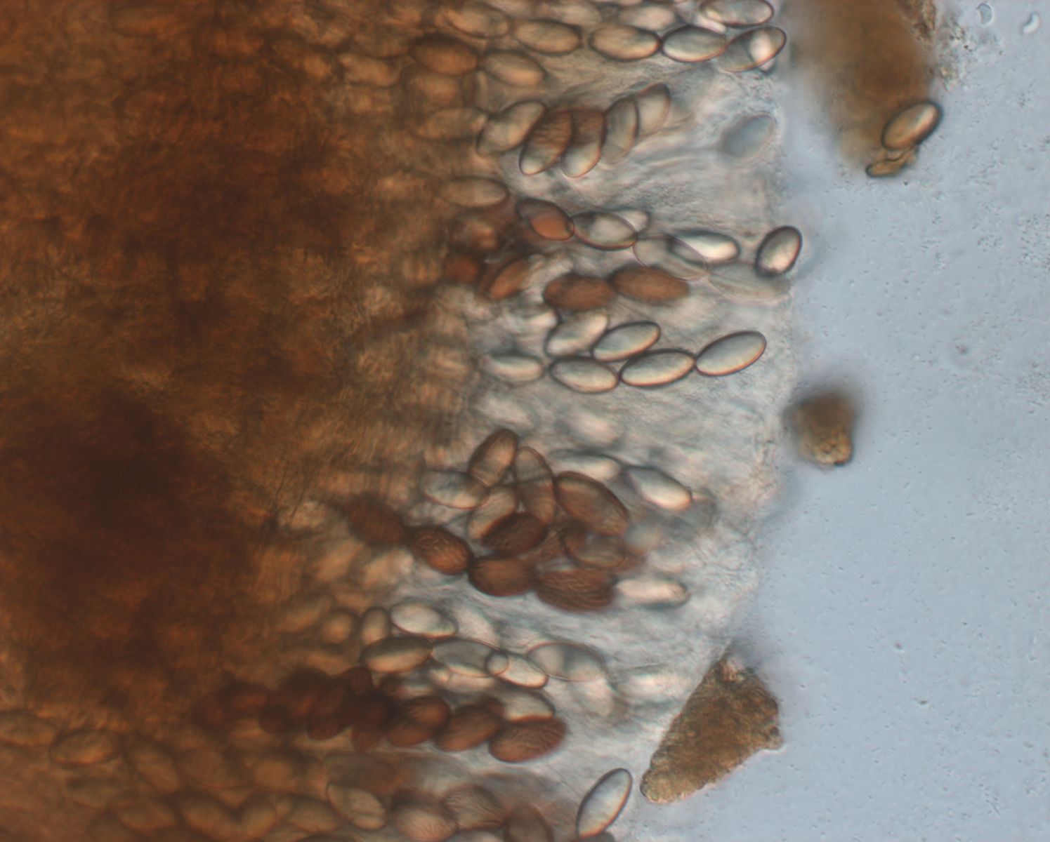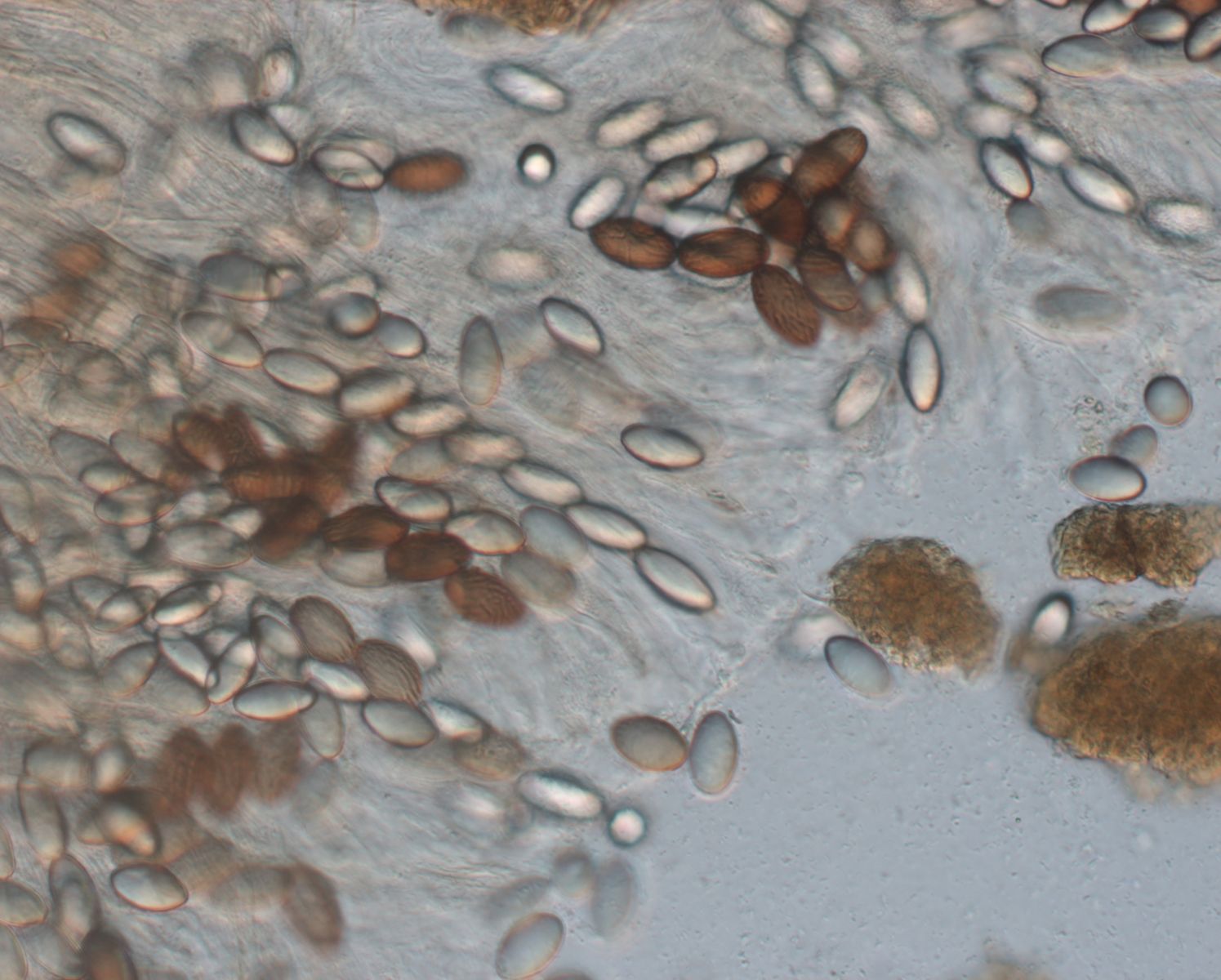 reife Sporen mit Rissen, unreife Sporen hyalin und (aus meiner Sicht) noch ohne Risse
