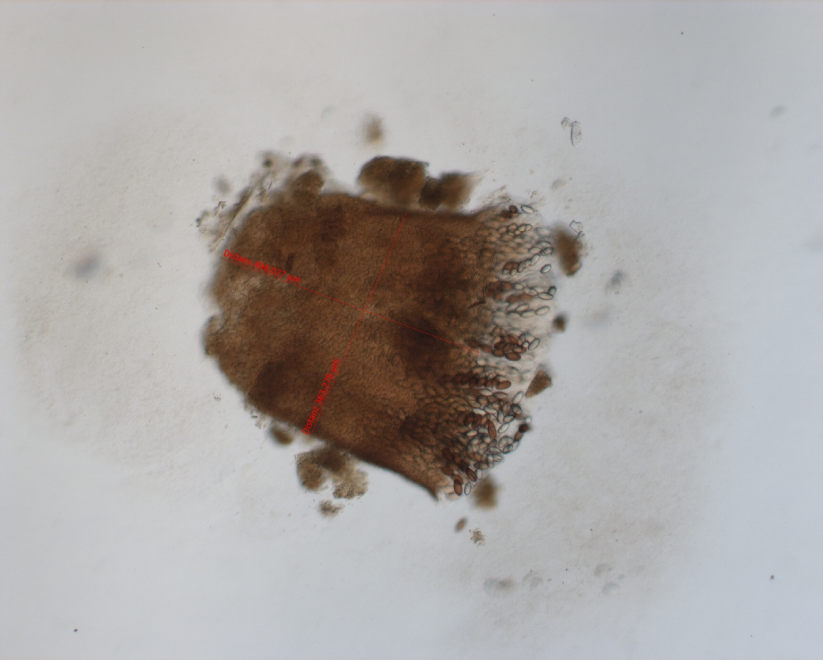 Apothecium: 363,3 µm Durchmesser, 408 µm Höhe