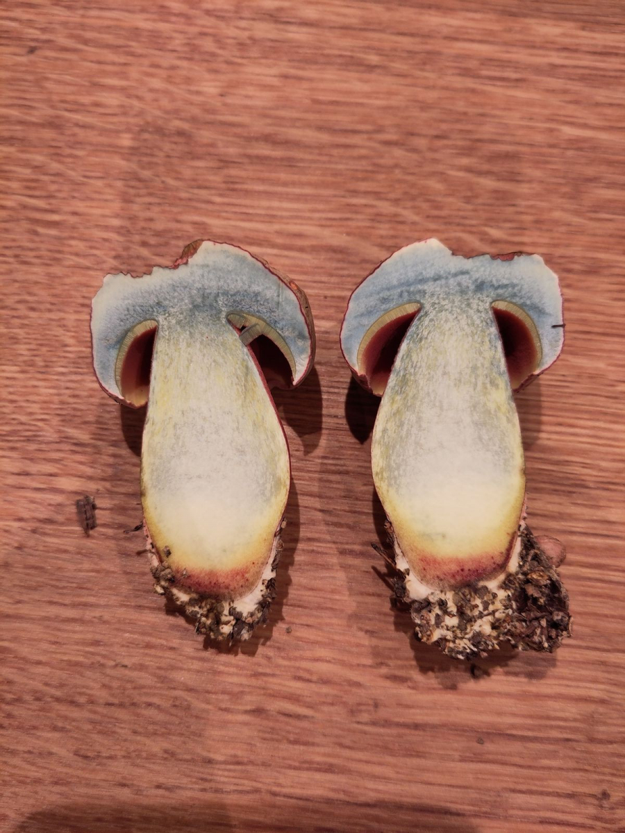 Junger Fruchtkörper blaut nur gering im gesamten Fruchtkörper