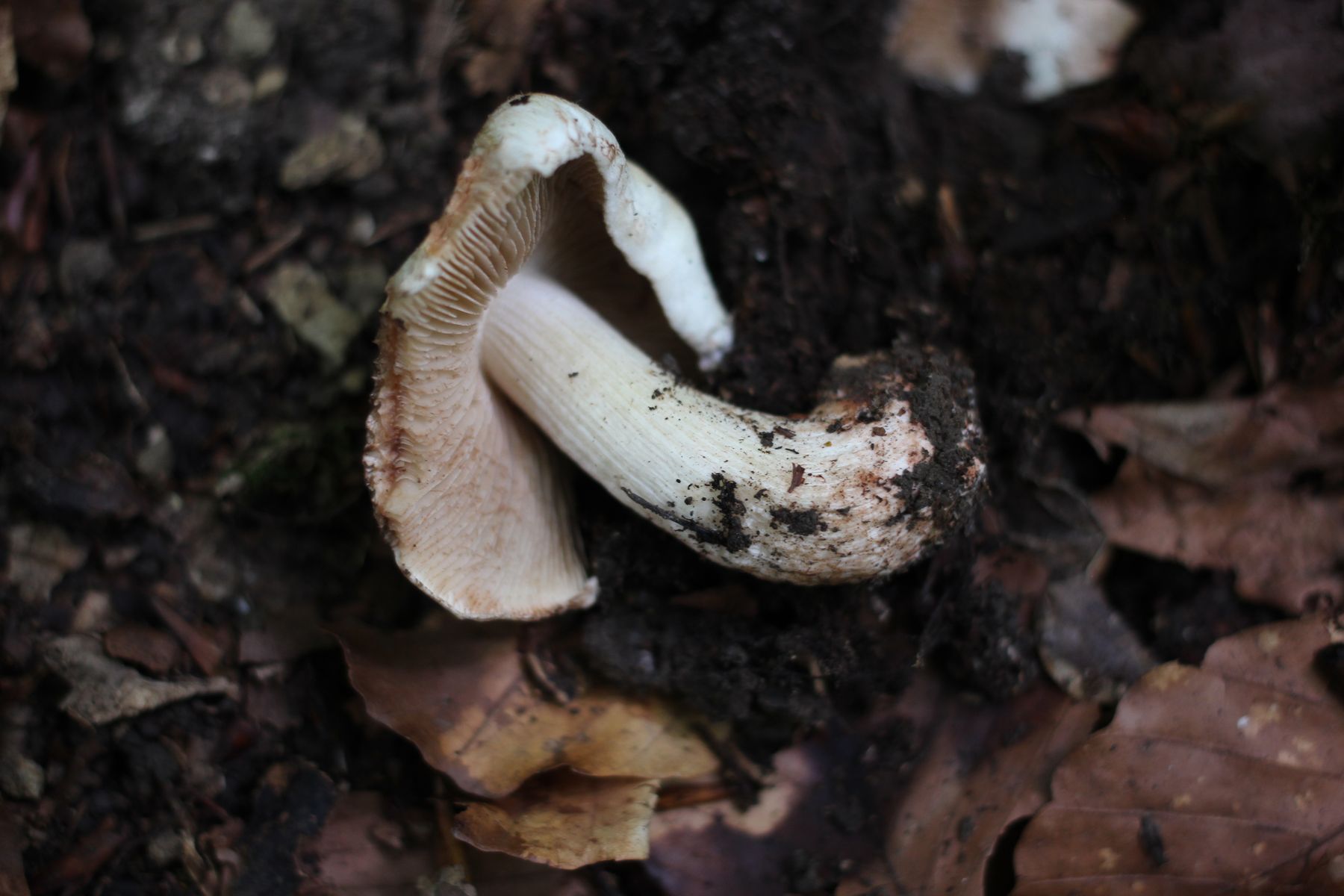 folgenden Fund habe ich vor allem deshalb mitgenommen, weil ich noch nie einen vergleichbaren Geruch bei einem Pilz wahrgenommen habe. Der Geruch war schwer süßlich nach Rosenduft und ich musste sofort an diese getrockneten Rosenblüten denken, die manche Leute sich gern in die Wohnung stellen. Ich hätte nie gedacht, dass Pilze so riechen können. Fundort war unter Buchen auf Kalk, ansonsten will euch nicht mit einer ausschweifenden Beschreibung langweilen, die Bilder sollten für sich sprechen. Hat jemand eine Idee?
