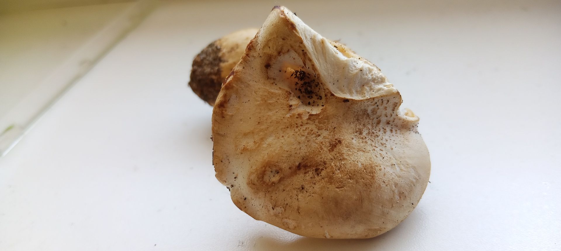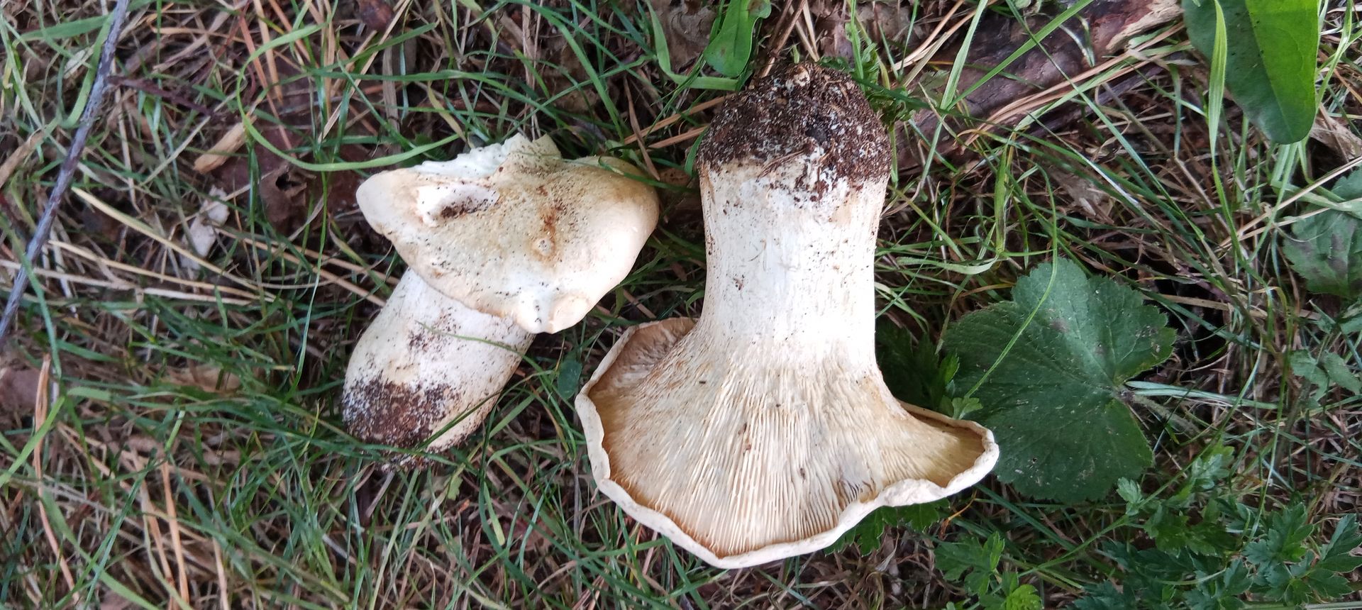 Von einer Wanderung zeigte mir jemand seine zwei Pilzfunde. Angeblich am Boden gewachsen, bei Laubgestrüpp und Kiefern in der Nähe.