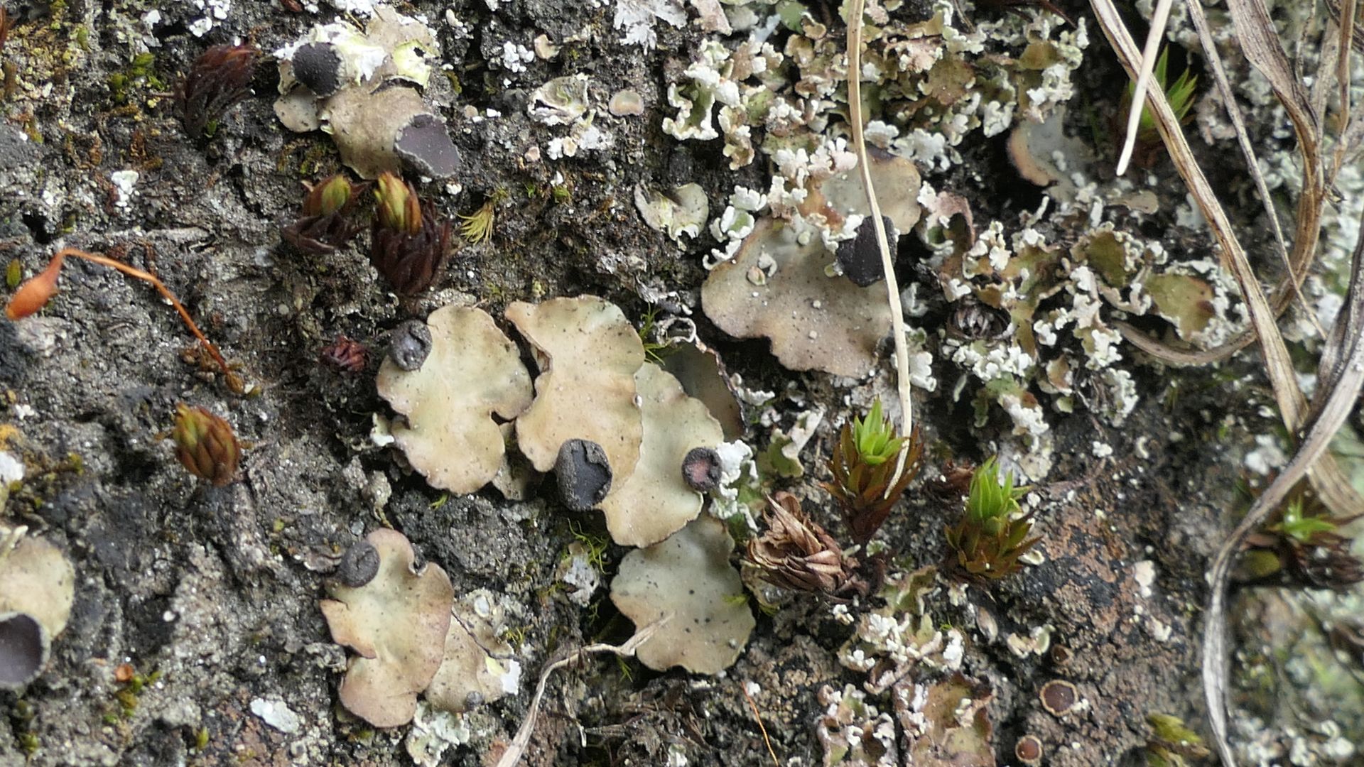 Einige Höhenmeter weiter bei knapp 2300m an der Wegböschung auf Erde: Peltigera venosa.