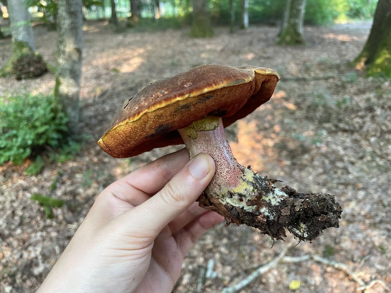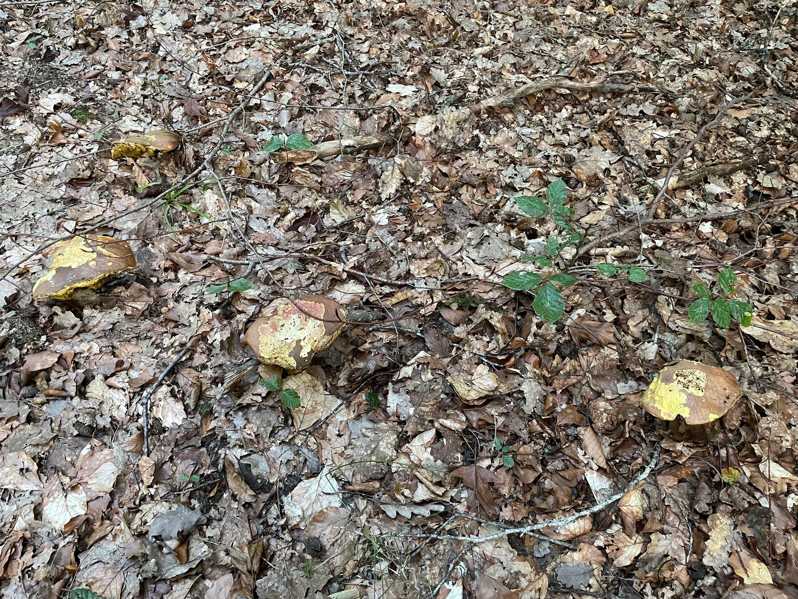 Dann der Wechsel in den zweiten Wald - das Sommersteinpilz-Habitat. Dort hatte ich ja letzte Woche den Erstfund vom Bronzeröhrling und dem Glattstieligen Hexenröhrling, jeweils mit Massenwachstum.
