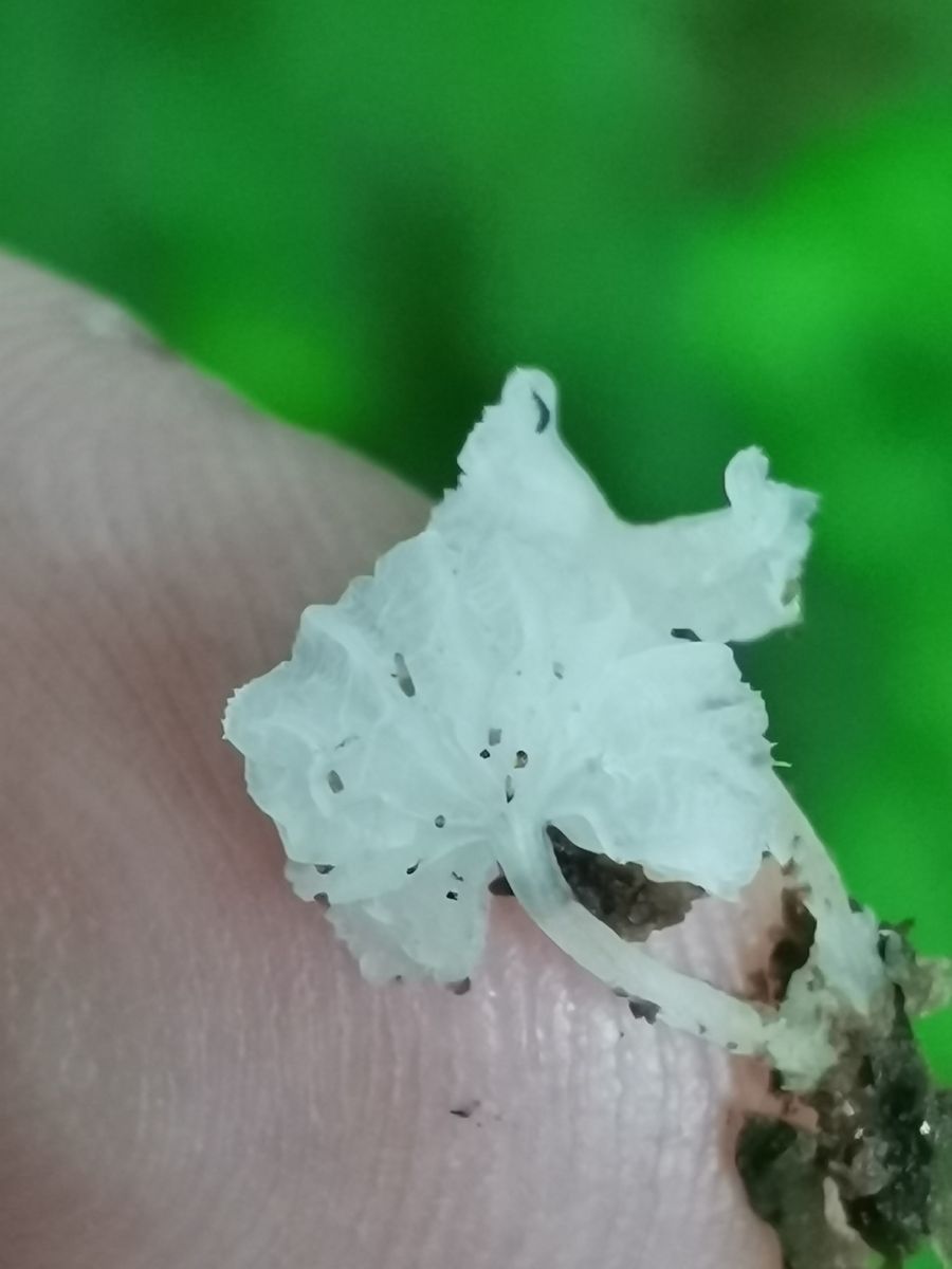 Ein schönes Pilzchen, ich denke in diese Richtung -> Delicatula Delicatula integrella = Genabelter Schleierhelmling