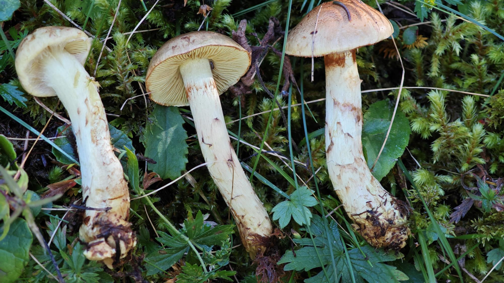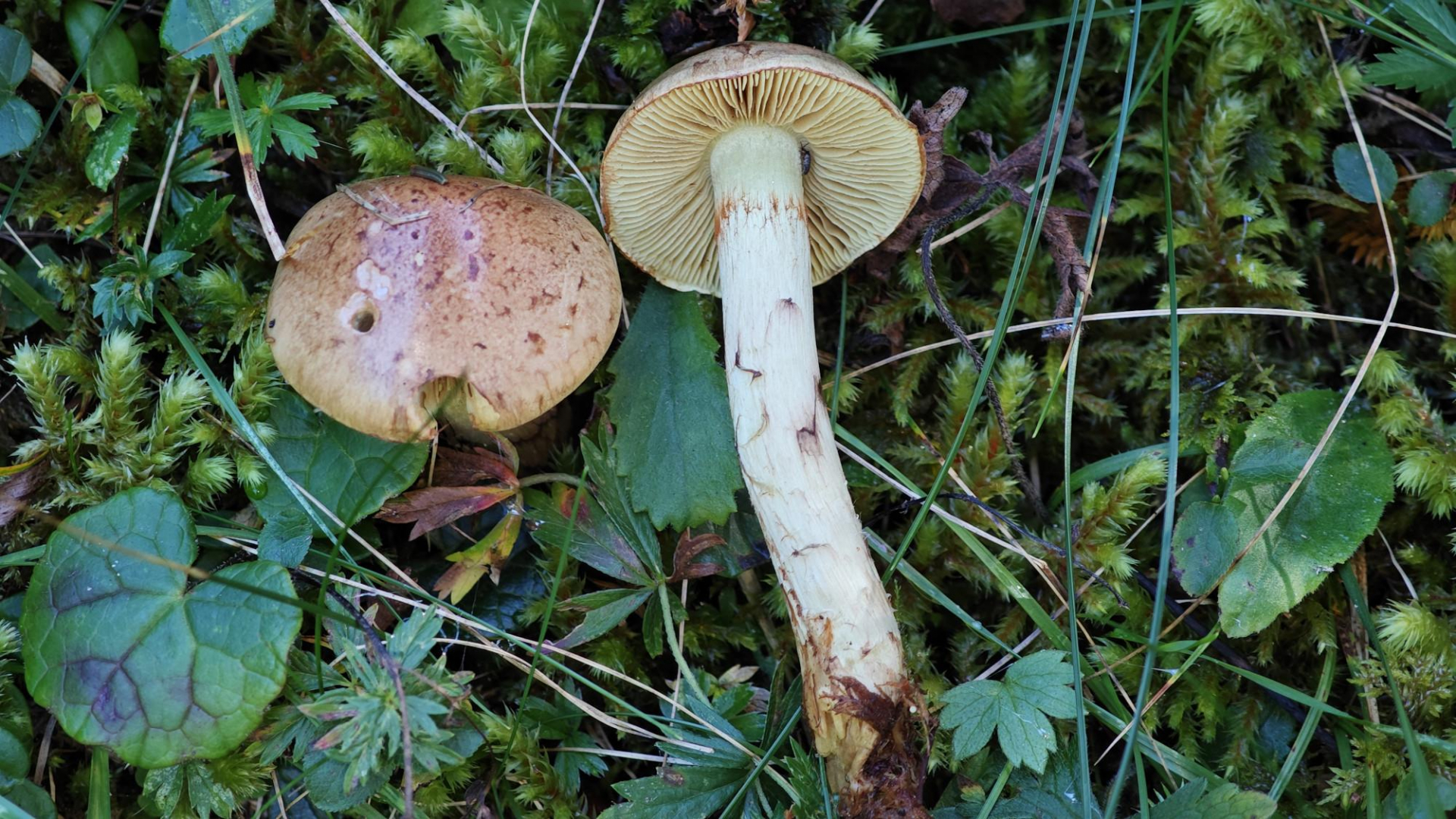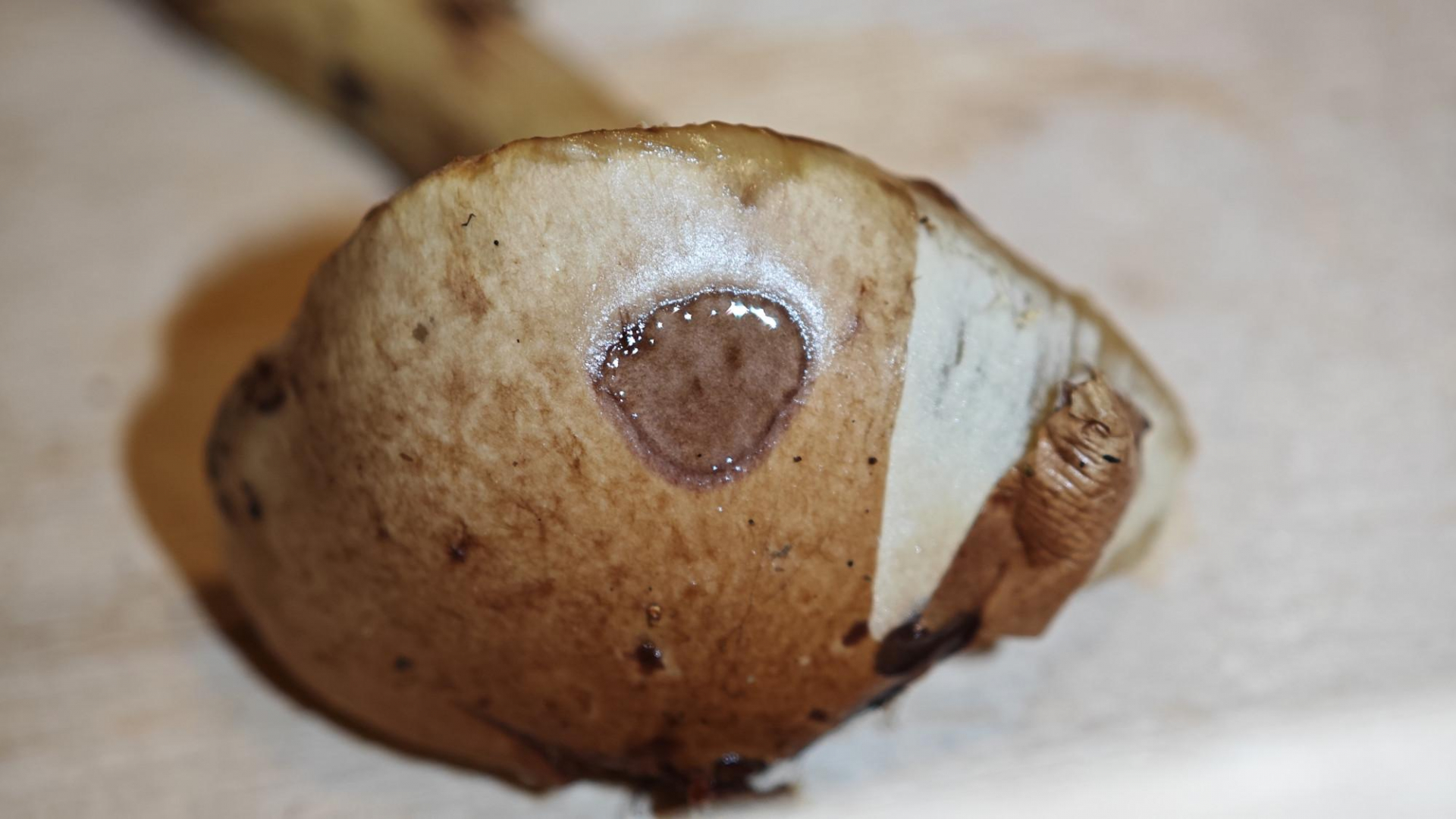 Was mir bei diesem Schleimkopf direkt auffiel waren seine dunkleren Velumgürtel und dann später zuhause sein extrem aufdringlicher, meiner Meinung nach erdig muffiger Geruch. Der Geruch ist so penetrant, dass, wenn man einen Pilz in einem Raum liegen lässt, der ganze Raum diesen erdartigen, muffigen Geruch annimmt. Ich habe beim Bestimmungsversuch zunächst mal in den Kibby geschaut und fand dort Cortinarius mussivus. Allerdings schien dieser Pilz eher etwas grösser zu sein. Des Weiteren fand ich noch Cortinarius nanceiensis, dort passte aber der Geruch überhaupt nicht. Also habe ich mal in den Ludwig geschaut und im Bildband Cortinarius mussivus gesucht. Dieser schien mir aber im Habitus deutlich kräftiger zu sein, als mein Fund, aber direkt daneben habe ich einen Pilz gesehen, der optisch wirklich perfekt zu meinem Fund zu passen schien und dann habe ich noch den Namen gelesen Cortinarius russeoides - Stinkender Fichten-Schleimkopf und ich dachte mir, Volltreffer. ![]()