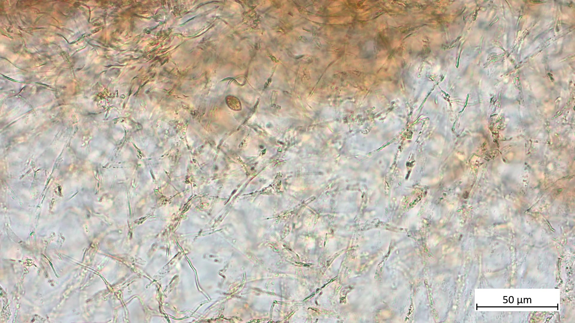 Also habe ich mir im Textband von Ludwig die Beschreibung dazu durchgelesen und es scheint wirklich sehr gut zu passen. Soweit ich gesehen habe, ist das einzige Merkmal, das nicht ganz zu passen scheint, die KOH-Reaktion im Stielfleisch. Ludwig schreibt, KOH-Reaktion überall grauoliv. Auf der HDS und im Hutfleisch scheint die beschriebene Reaktion zu passen, aber im Stielfleisch erhielt ich eine rötliche Reaktion. Bei C. mussivus beschreibt er die KOH-Reaktion auf HDS negativ und im Fleisch negativ bis schwach rosa. Alle sonstigen Merkmale (auch die Sporen) scheinen aber meiner Meinung nach perfekt zu Corinarius russeoides zu passen. Was denkt ihr?