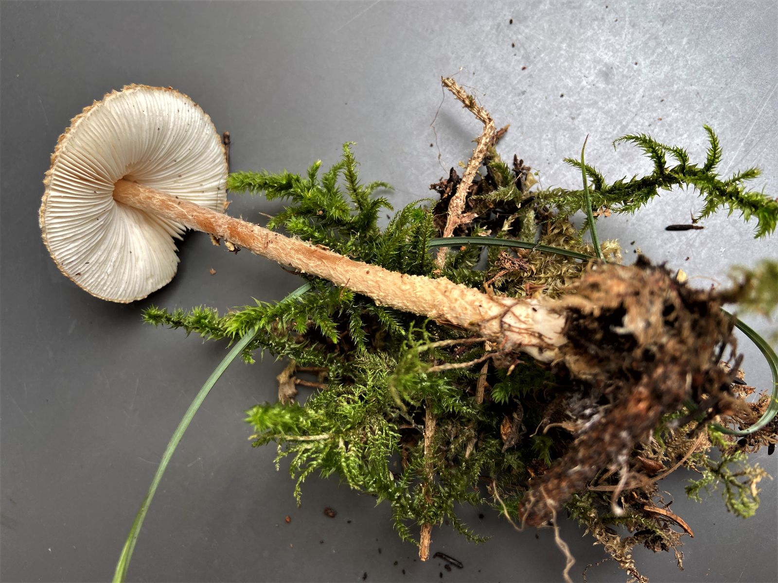 bei dem gestrigen Fund kam ich wegen der großen Sporen auf Gelbflockiger Wollstielschirmling (Lepiota magnispora). Aber ich sehe keine gelbe Flocken - nur am Hutrand Andeutungen; auch keinen ausgeprägten Ring. Könnten die aufgrund der Hitze in der letzten Woche eingetrocknet sein?