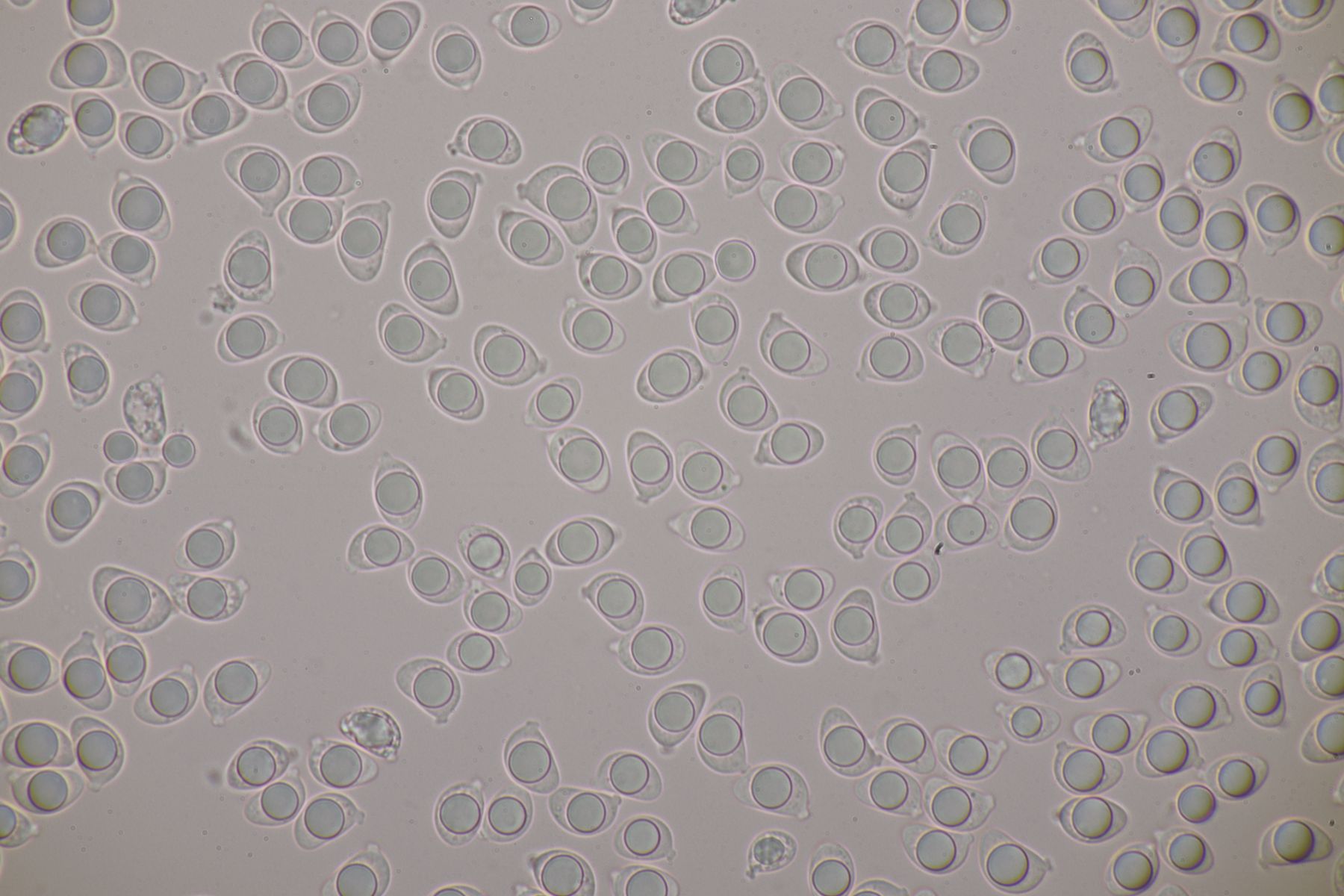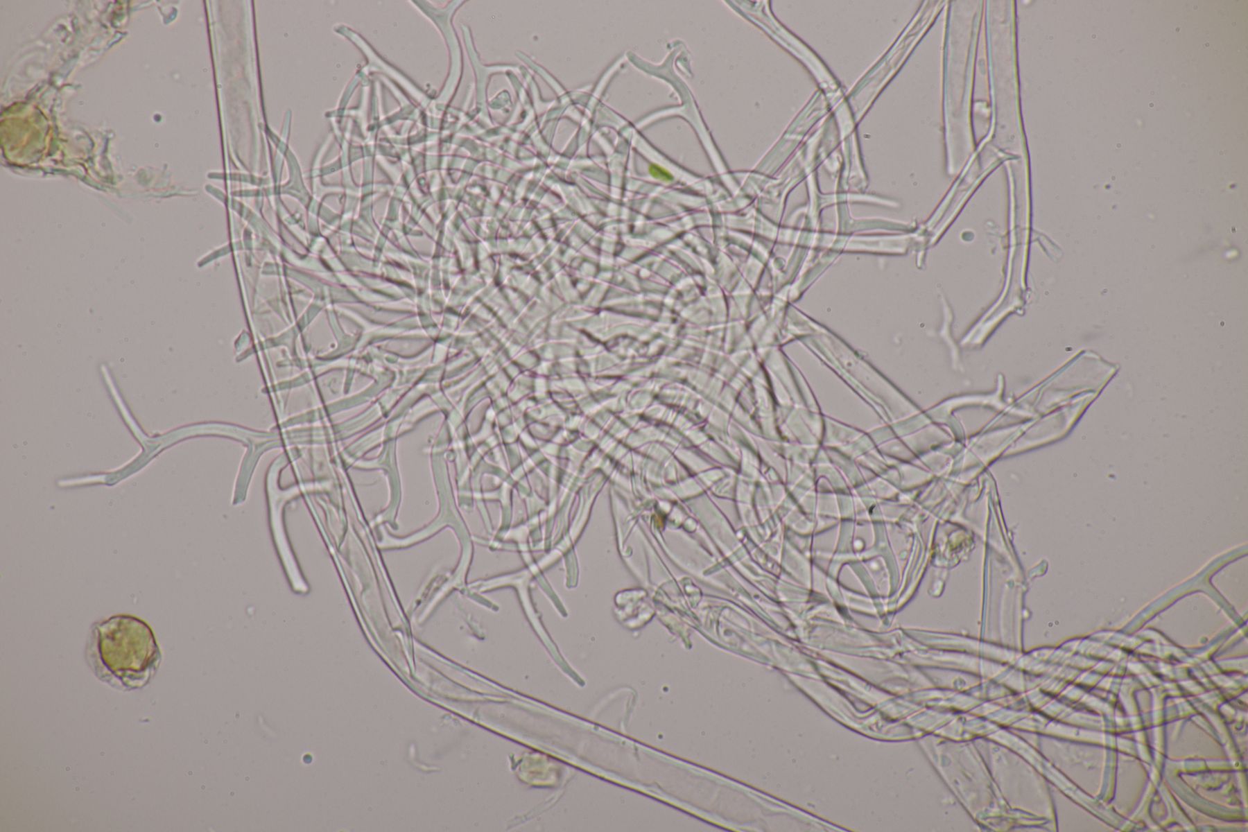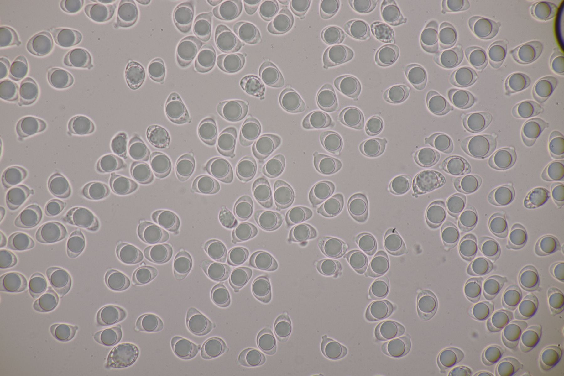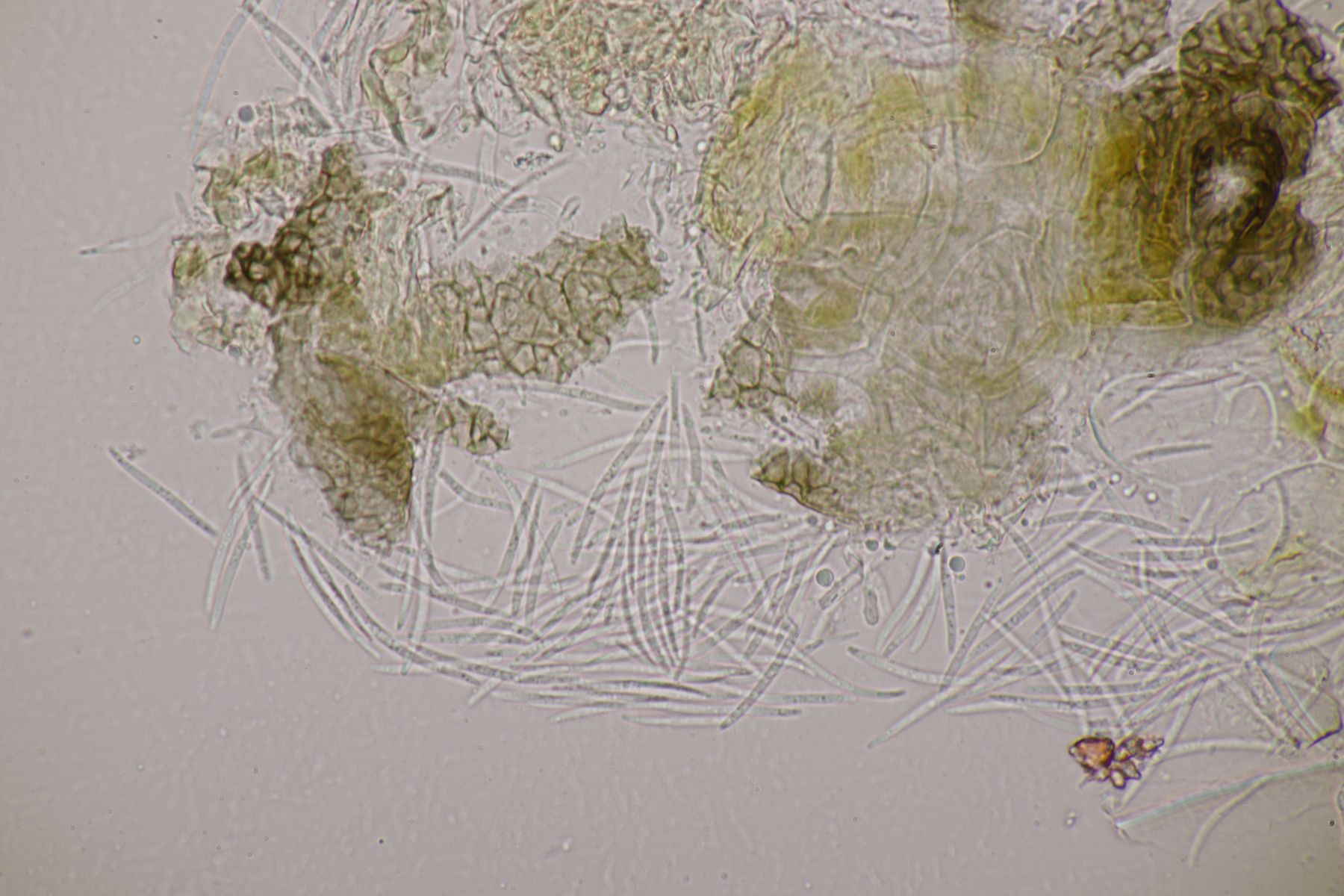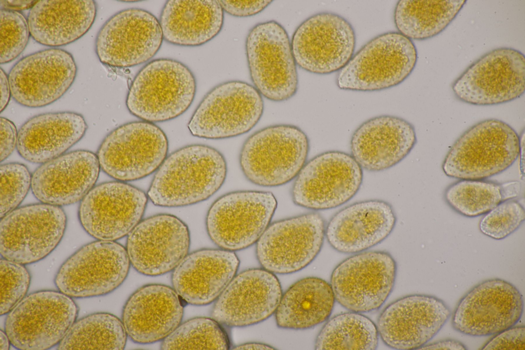 10. Sclerospora graminicola ex Setaria viridis. Hier hat der falsche Mehltau die Blütenstände komplett befallen, so daß sie in der Blattscheide steckengeblieben sind und jetzt zum Ende der Vegetationsperiode voll mit Oosporen sind.