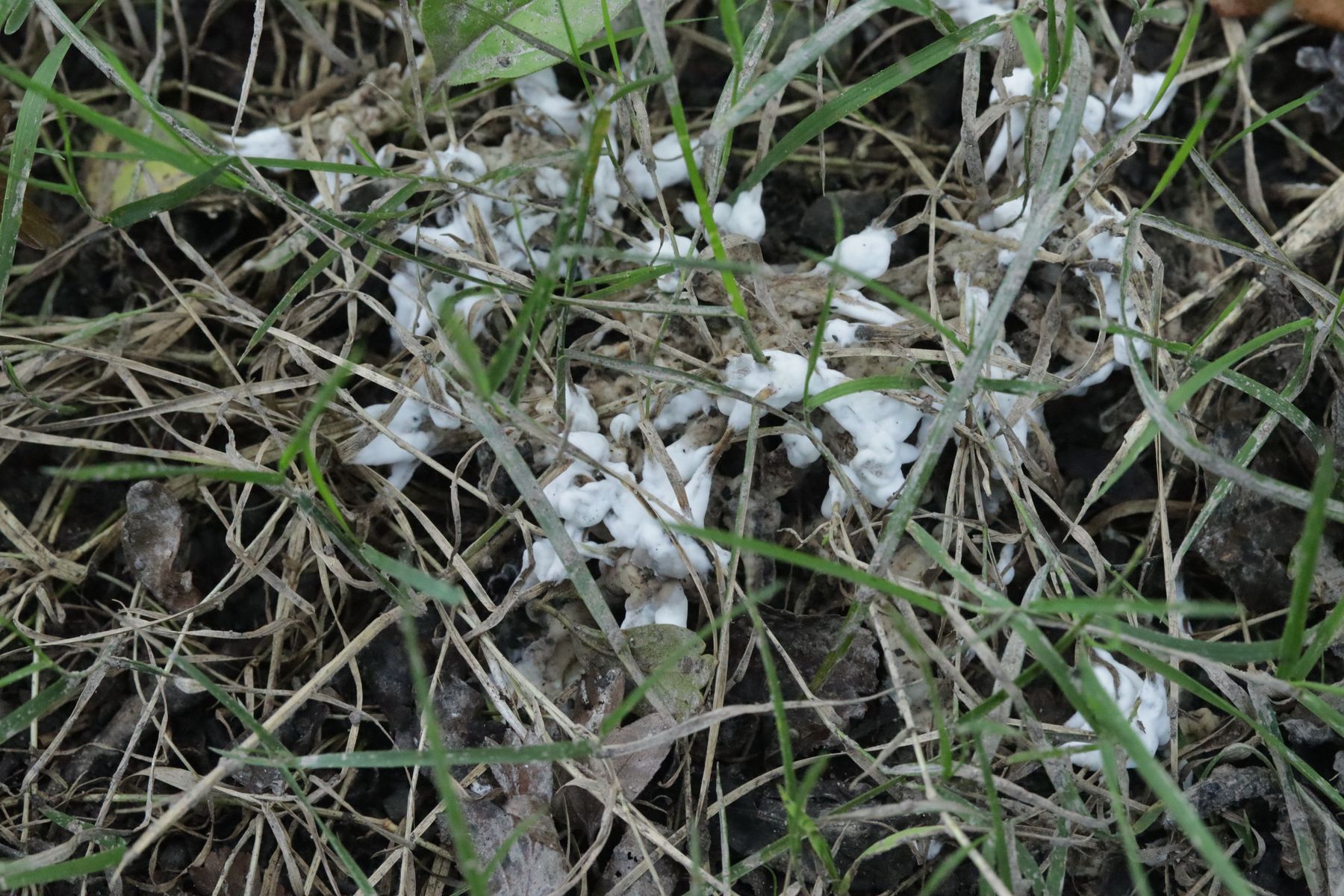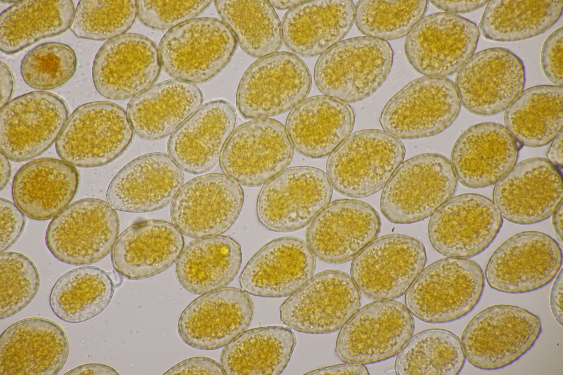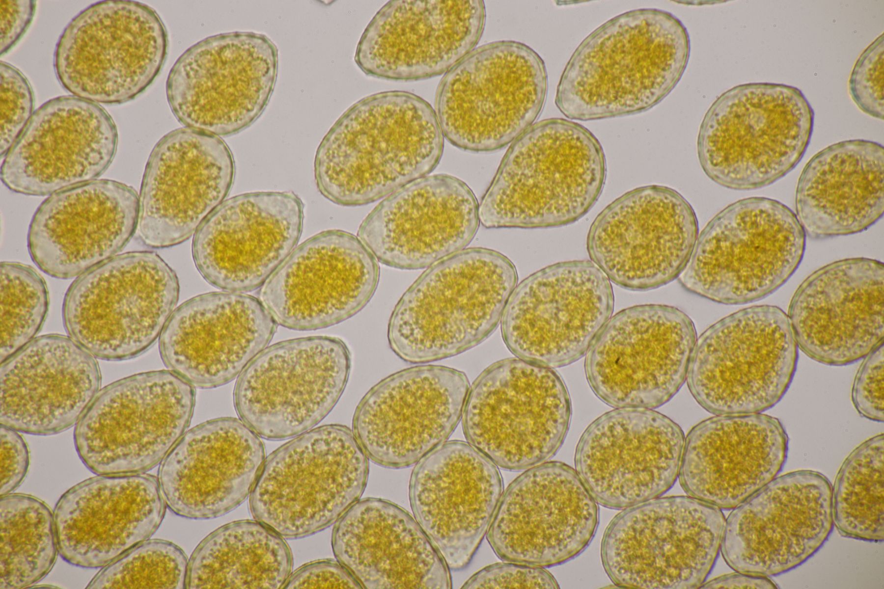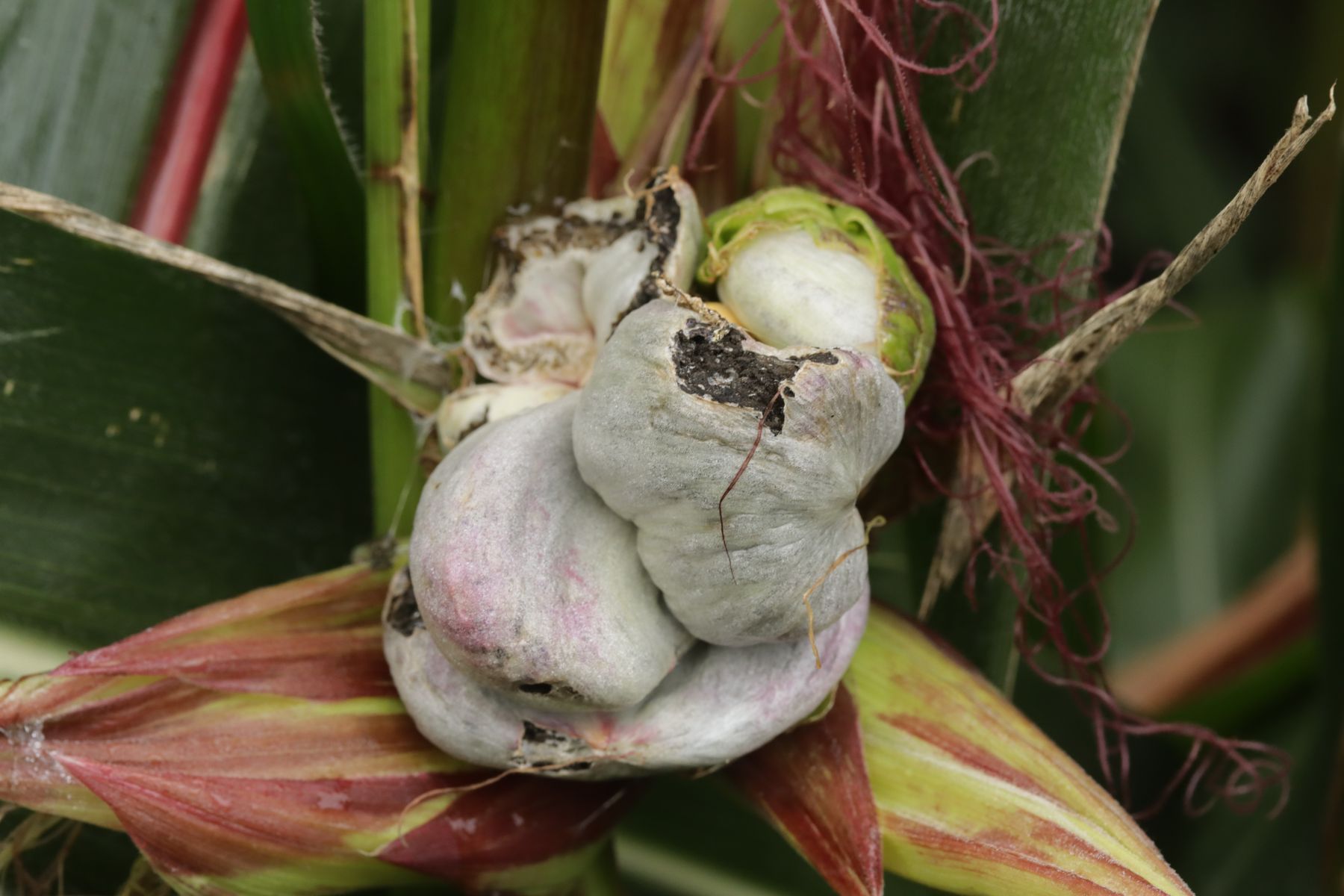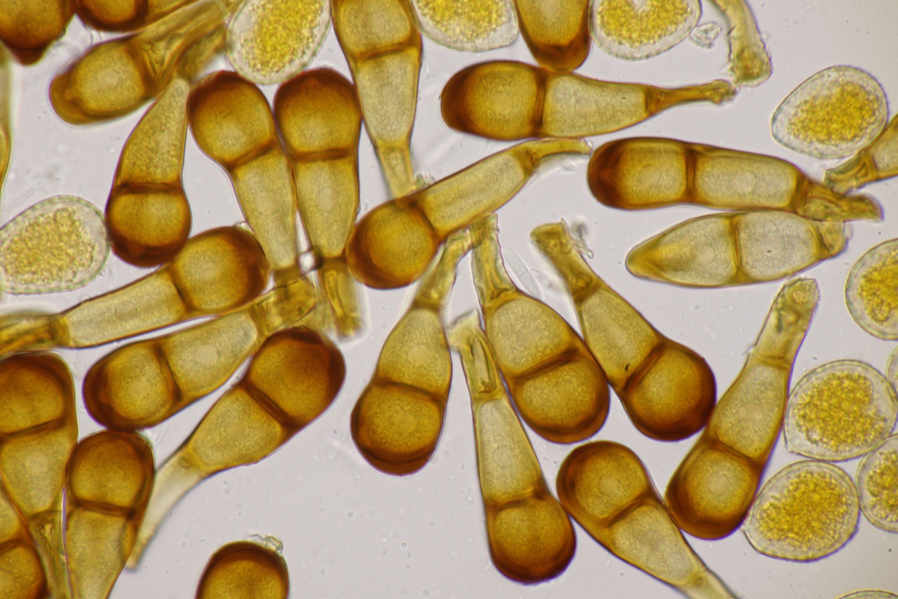 10. Sclerospora graminicola ex Setaria viridis. Hier hat der falsche Mehltau die Blütenstände komplett befallen, so daß sie in der Blattscheide steckengeblieben sind und jetzt zum Ende der Vegetationsperiode voll mit Oosporen sind.