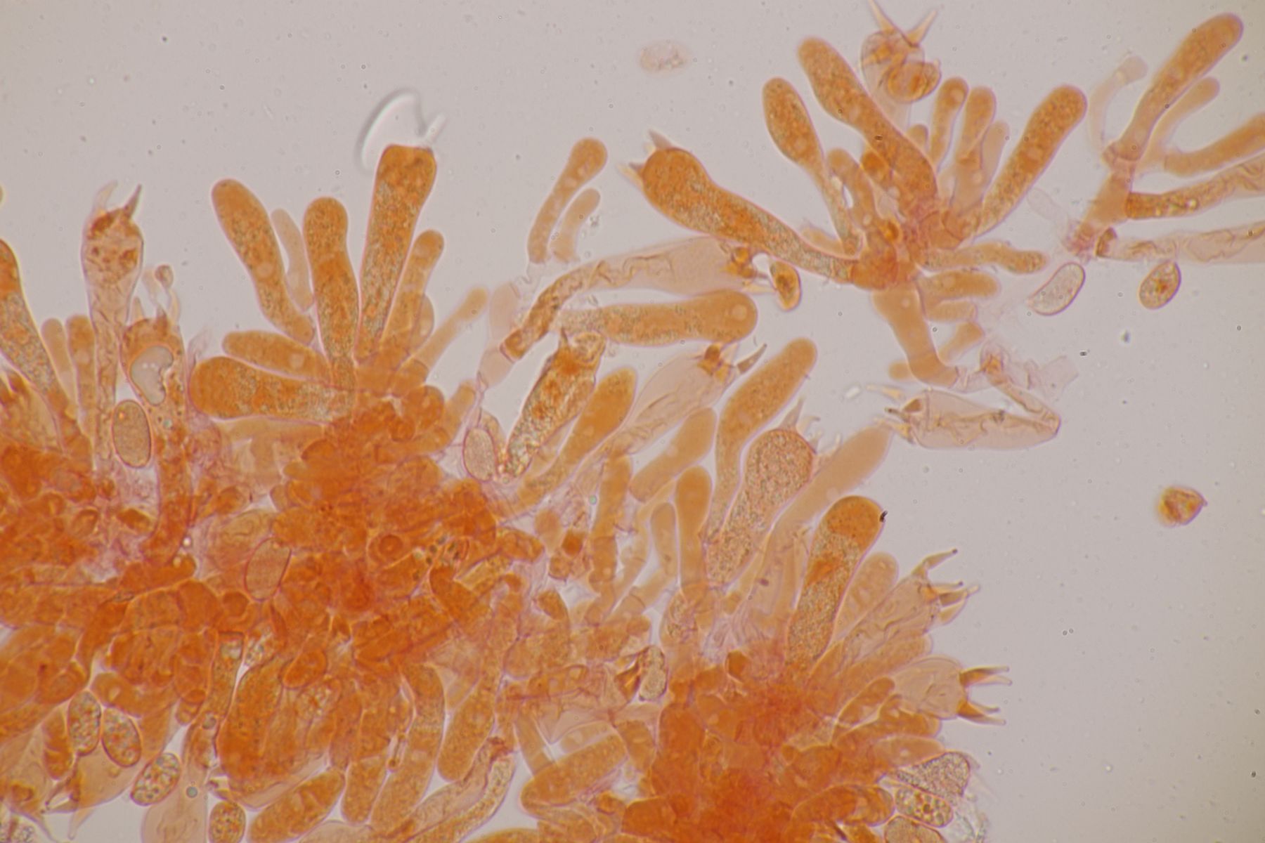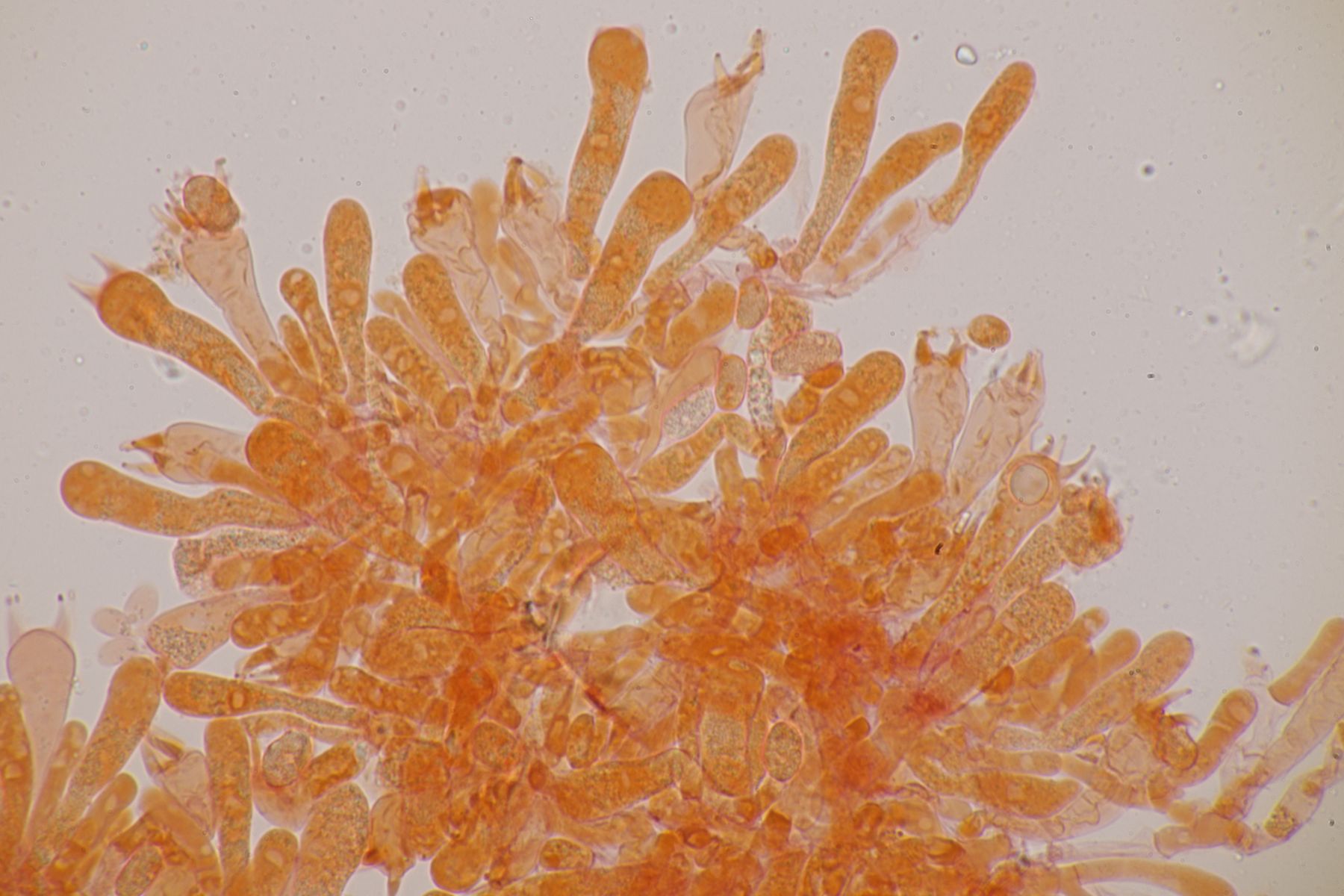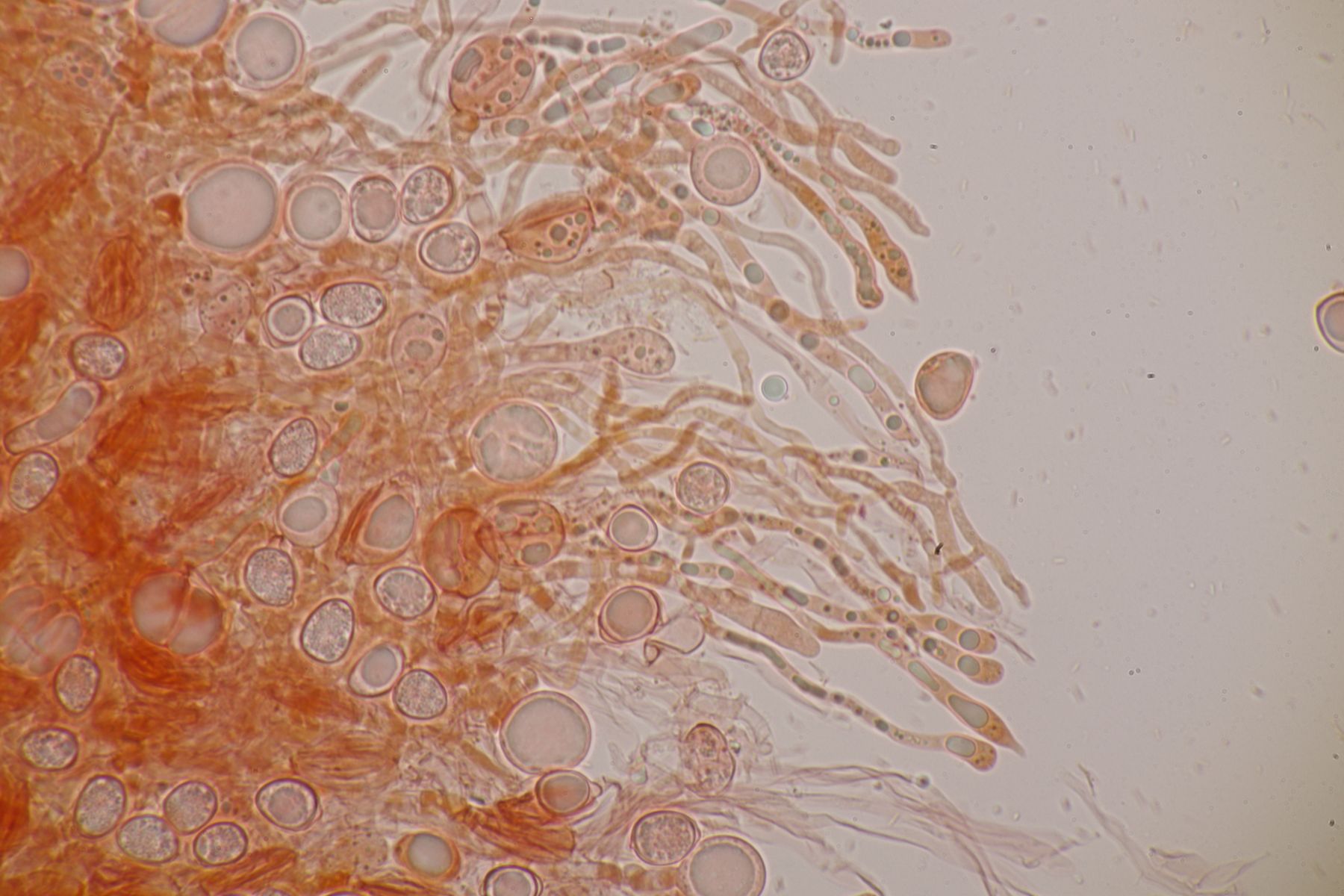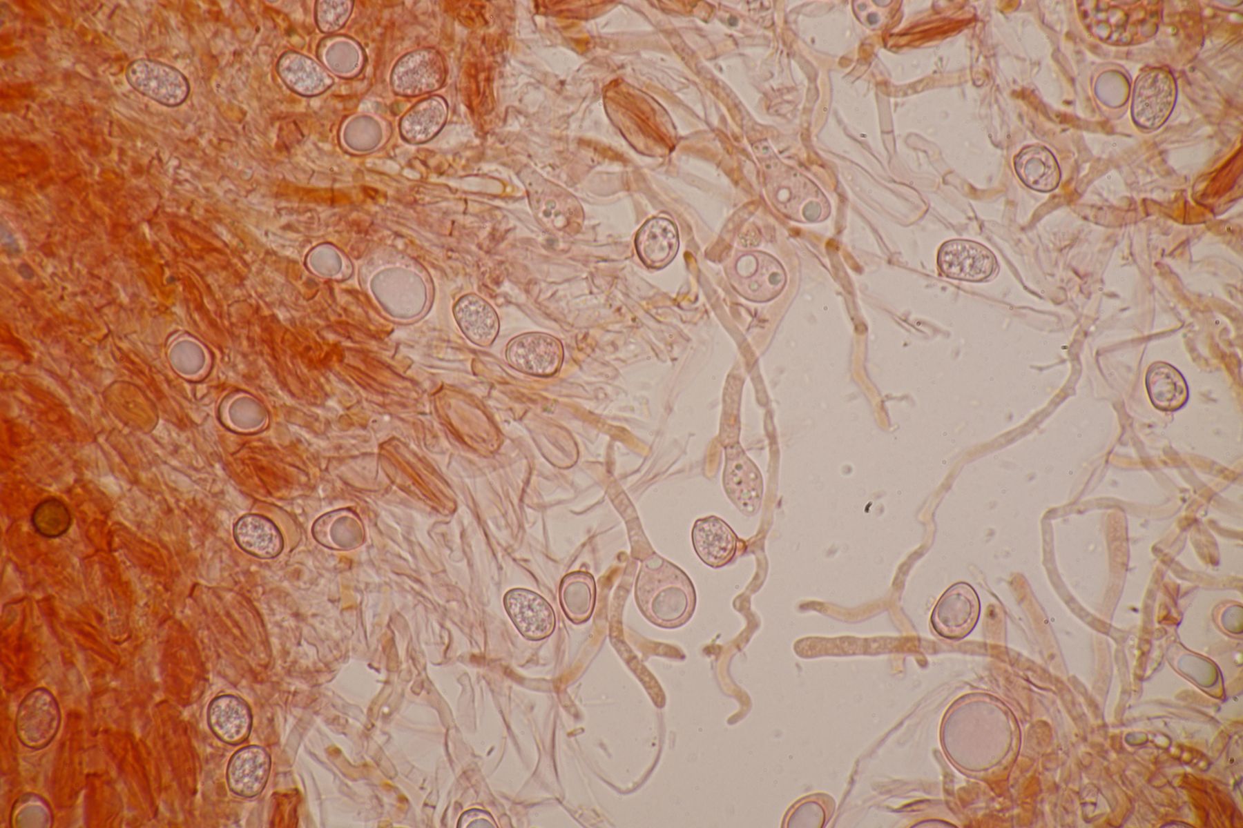 ich hatte im Feld auch sofort an H. cantharellus gedacht, weil ich H. coccineocrenata gar nicht auf dem Schirm hatte. Als ich meine Funde dann aber bei obsidentify hochgeladen habe, schlug die KI direkt H. coccineocrenata vor. Das paßt natürlich perfekt zum Standort und zu den Schüppchen, die dann bei den Fruchtkörpern, die ich einen Tag später mikroskopiert habe, deutlich nachgedunkelt waren.