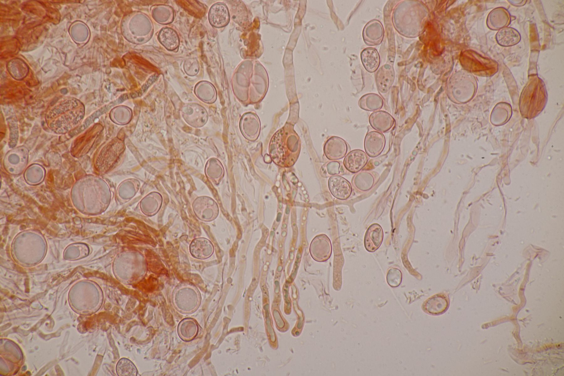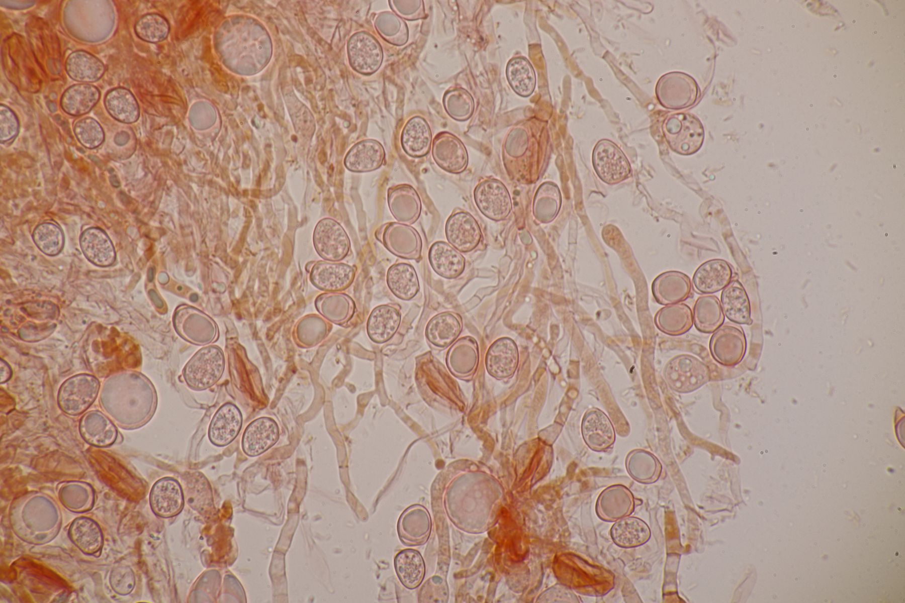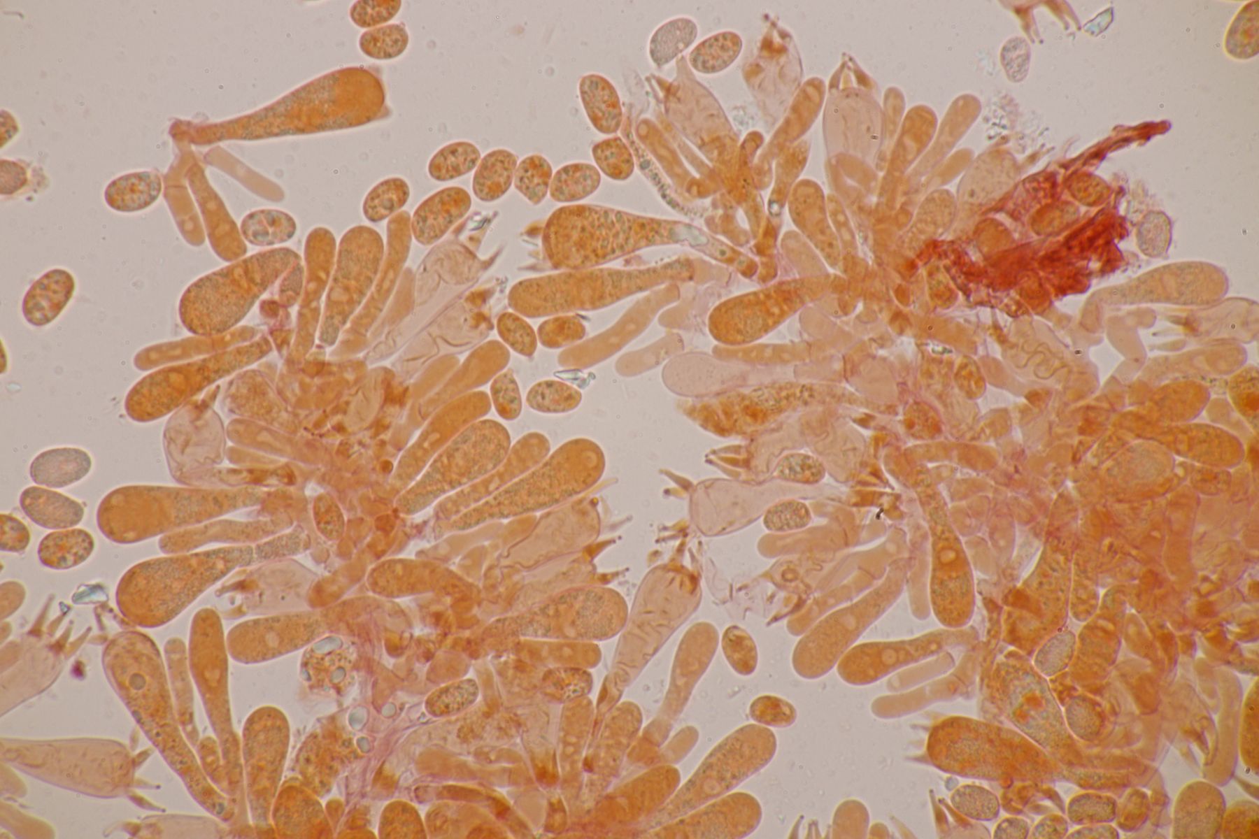 ich hatte im Feld auch sofort an H. cantharellus gedacht, weil ich H. coccineocrenata gar nicht auf dem Schirm hatte. Als ich meine Funde dann aber bei obsidentify hochgeladen habe, schlug die KI direkt H. coccineocrenata vor. Das paßt natürlich perfekt zum Standort und zu den Schüppchen, die dann bei den Fruchtkörpern, die ich einen Tag später mikroskopiert habe, deutlich nachgedunkelt waren.
