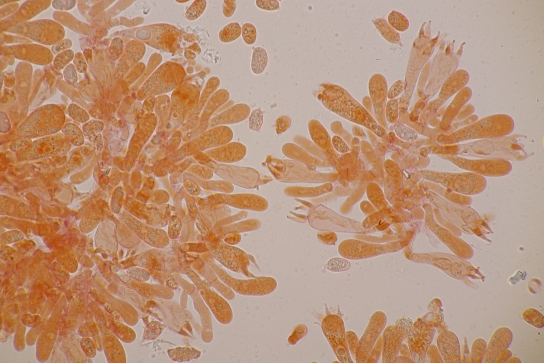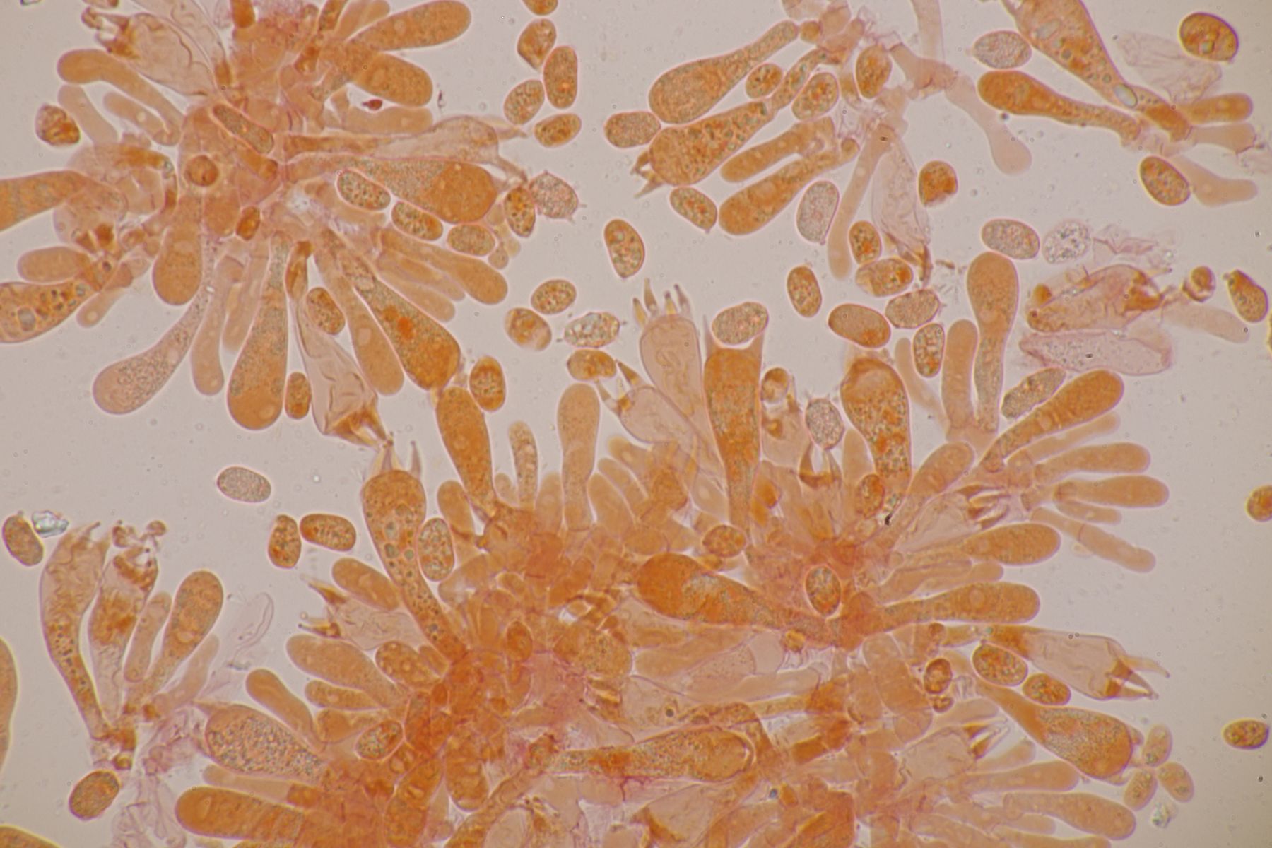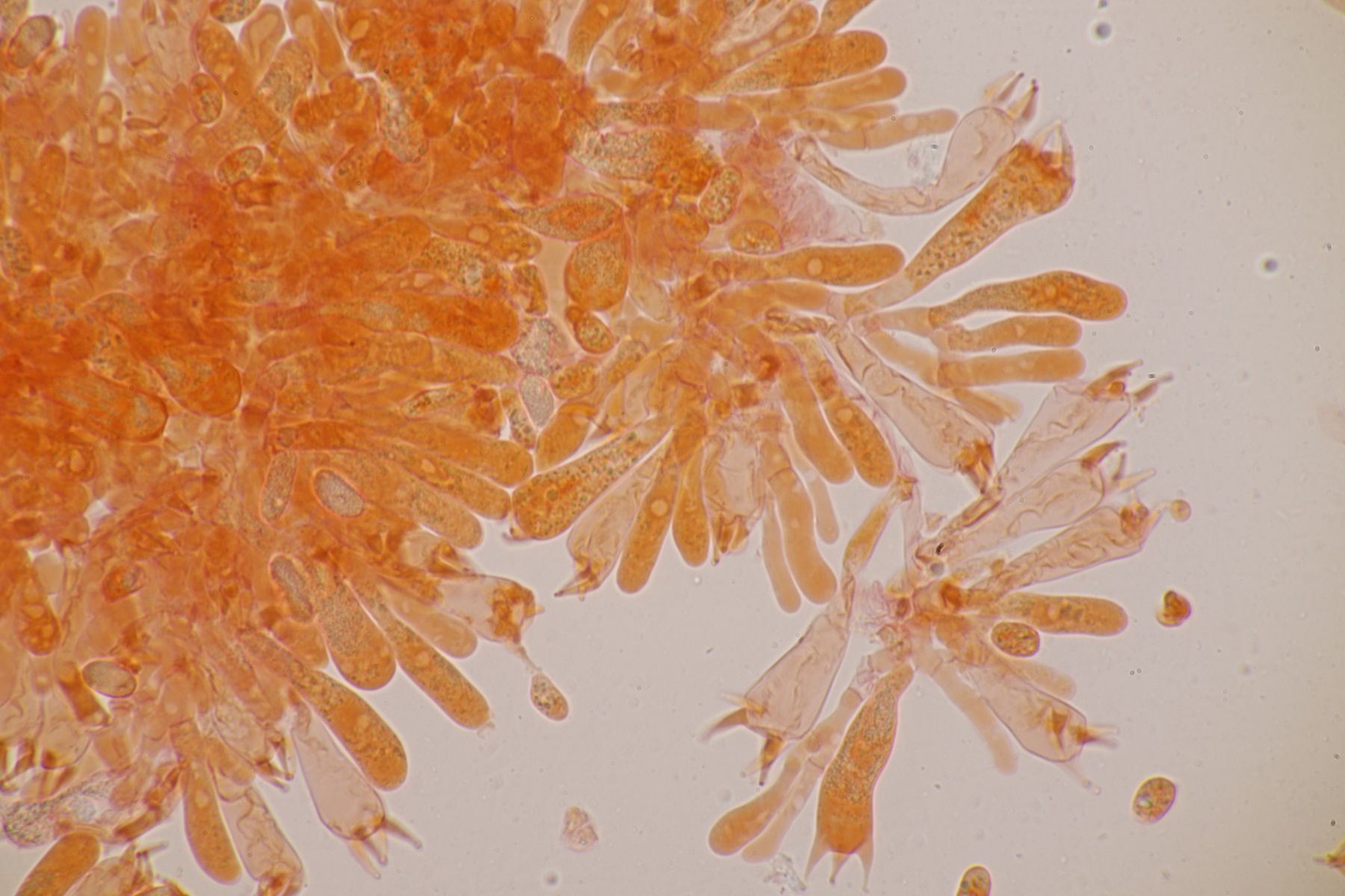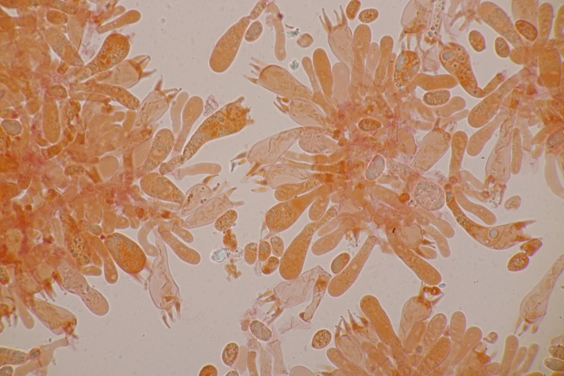 ich hatte im Feld auch sofort an H. cantharellus gedacht, weil ich H. coccineocrenata gar nicht auf dem Schirm hatte. Als ich meine Funde dann aber bei obsidentify hochgeladen habe, schlug die KI direkt H. coccineocrenata vor. Das paßt natürlich perfekt zum Standort und zu den Schüppchen, die dann bei den Fruchtkörpern, die ich einen Tag später mikroskopiert habe, deutlich nachgedunkelt waren.