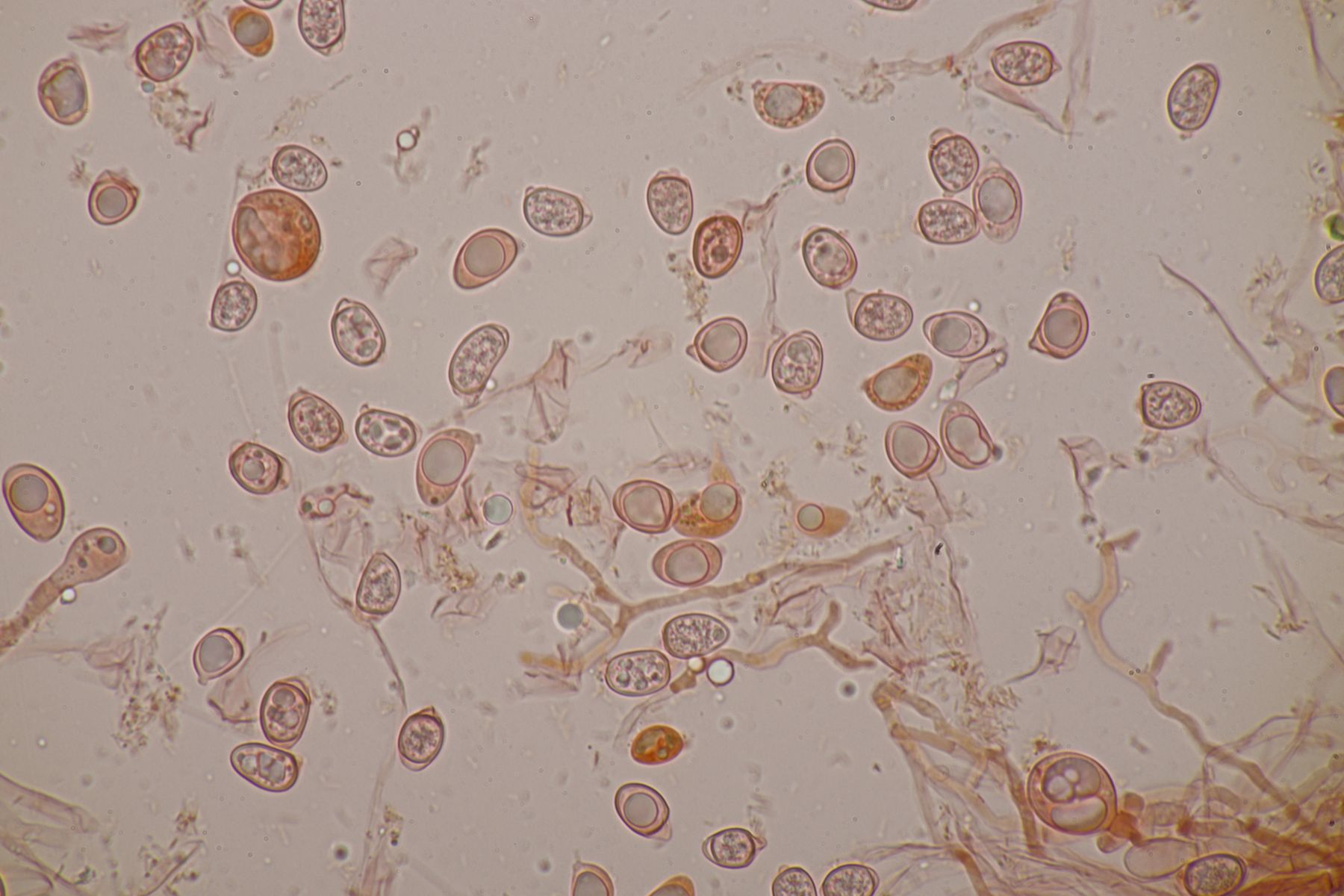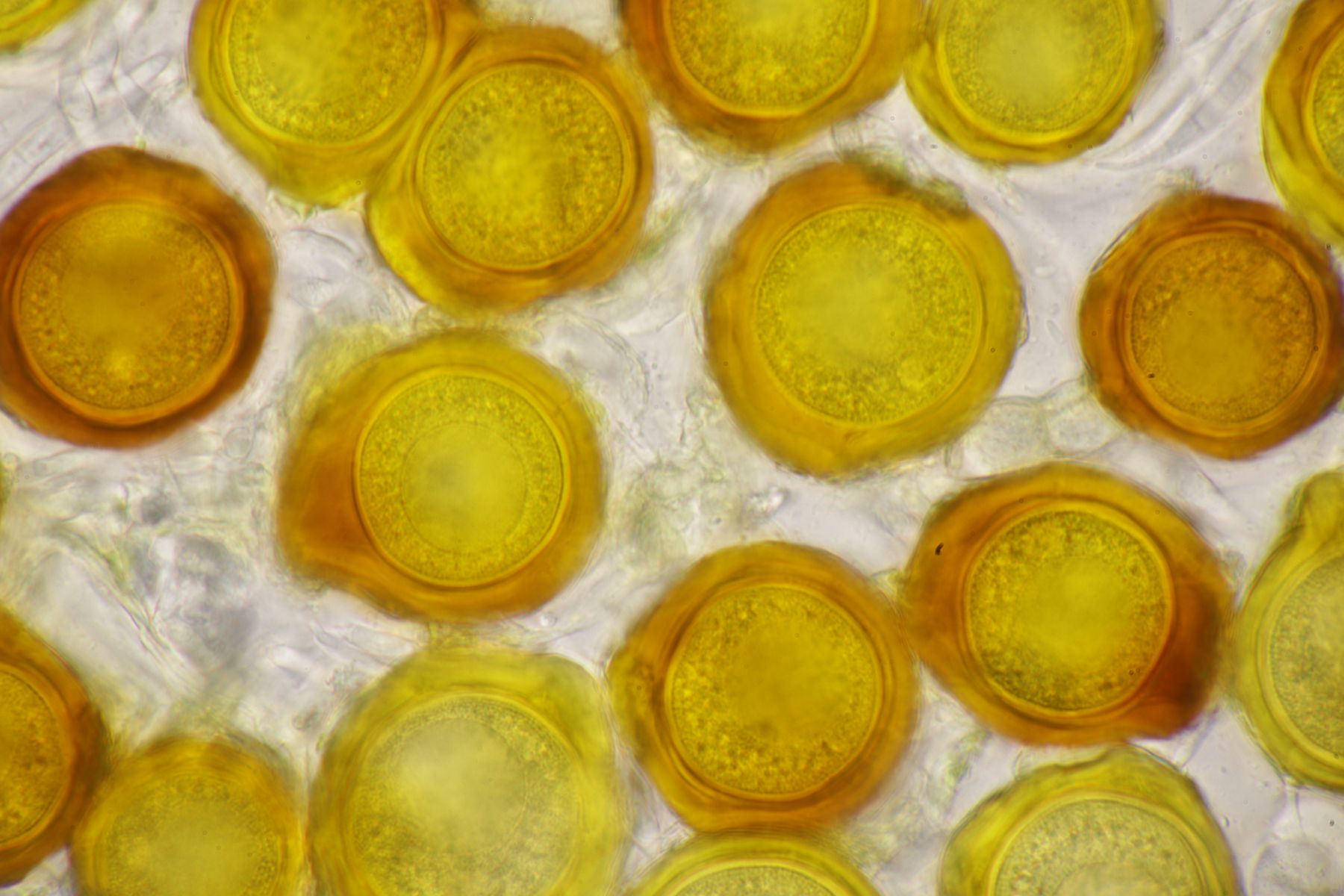 4. Coleosporium solidaginis ex Solidago gigantea mit Ramularia coleosporii als Hyperparasiten