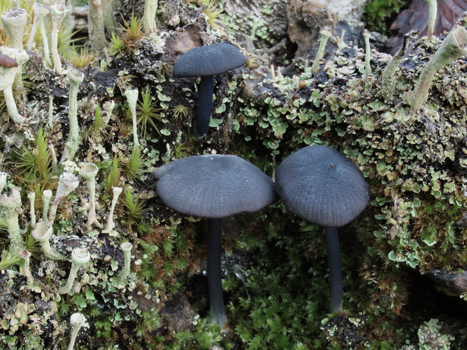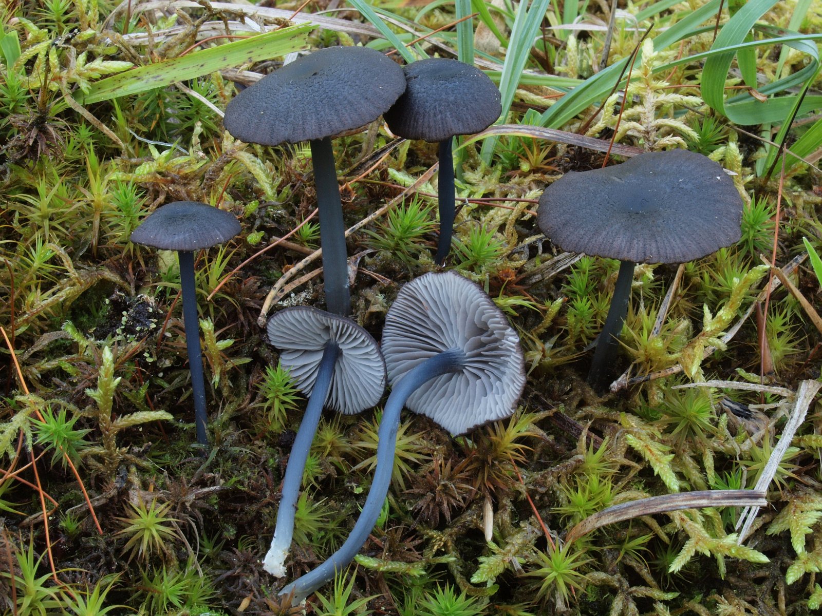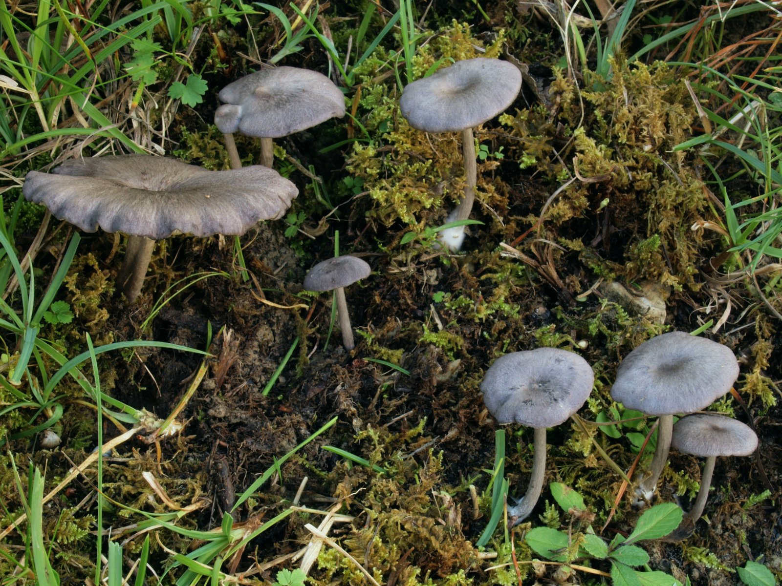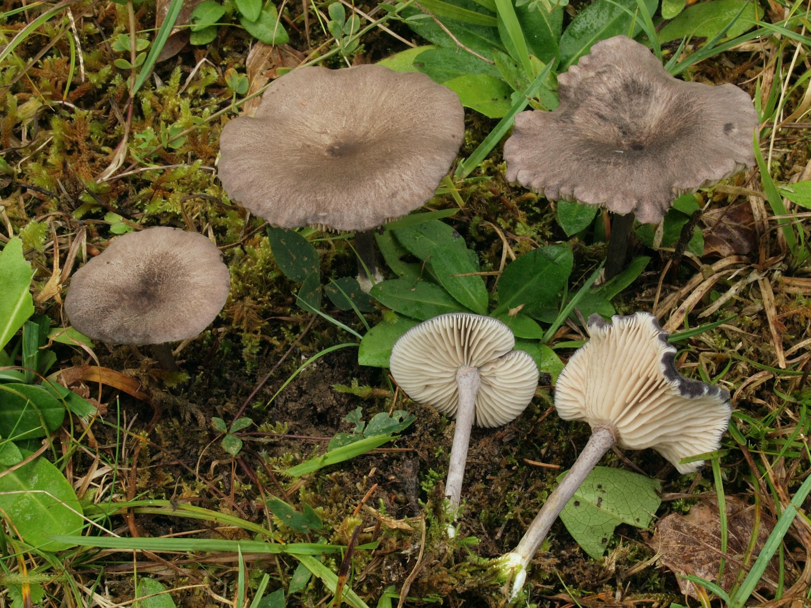 Entoloma exile (Schmächtiger Zärtling) mit nur frisch blaßblauen Stielen und mit Ausnahme der Mitte rasch verblassenden Hüten