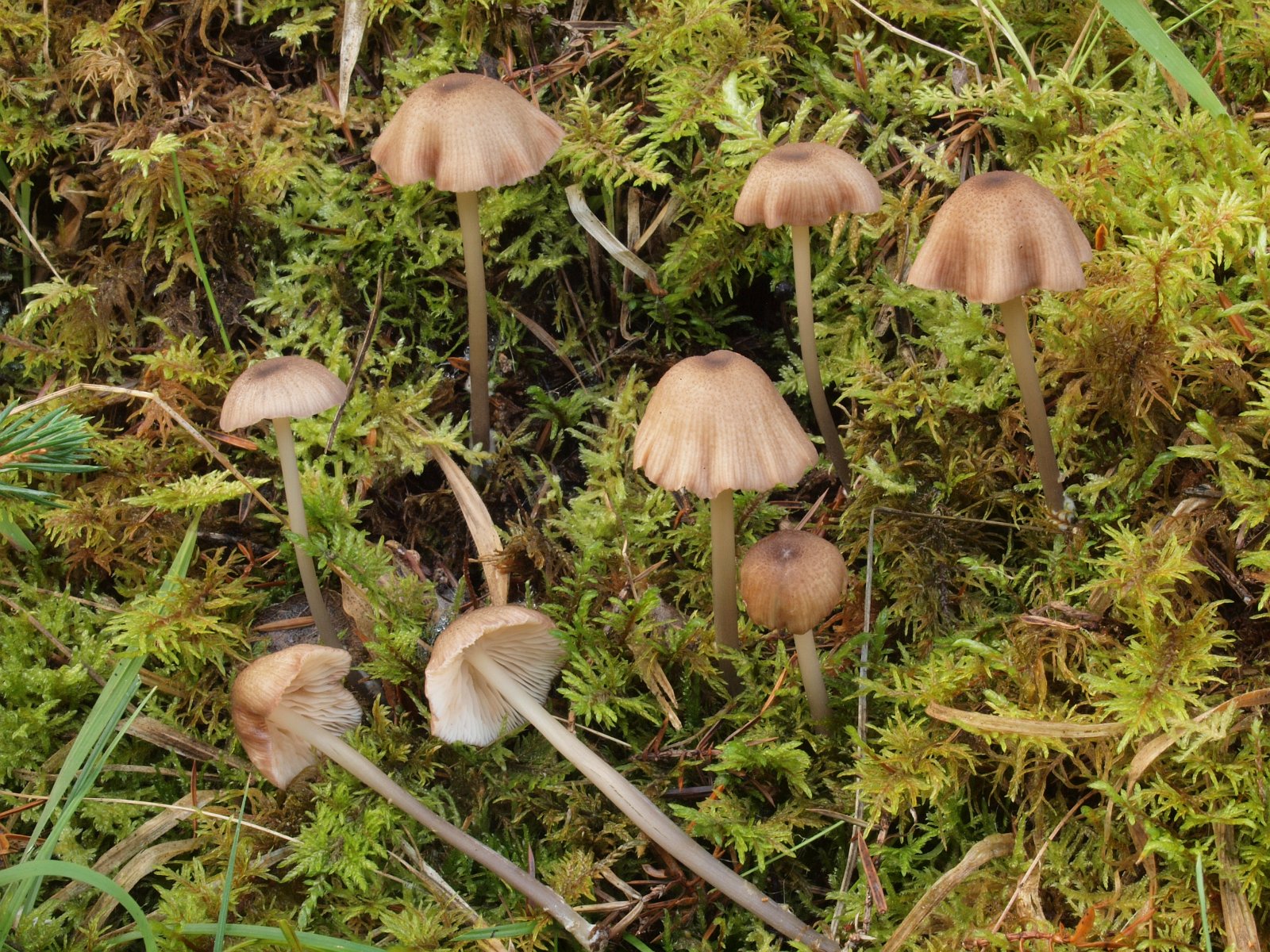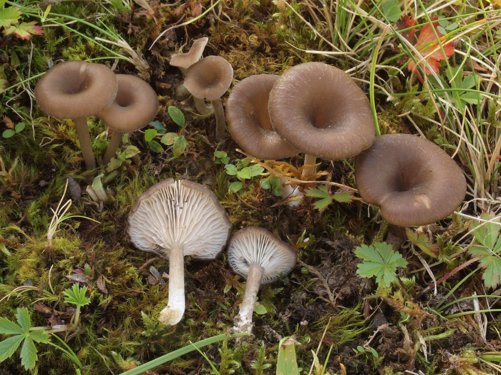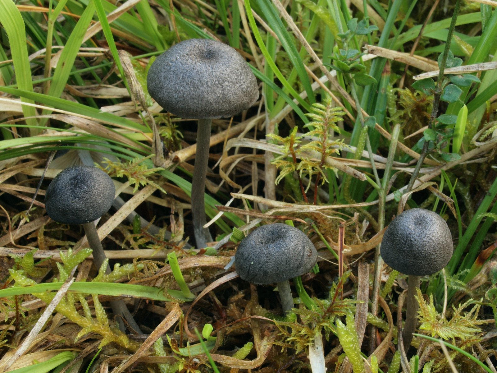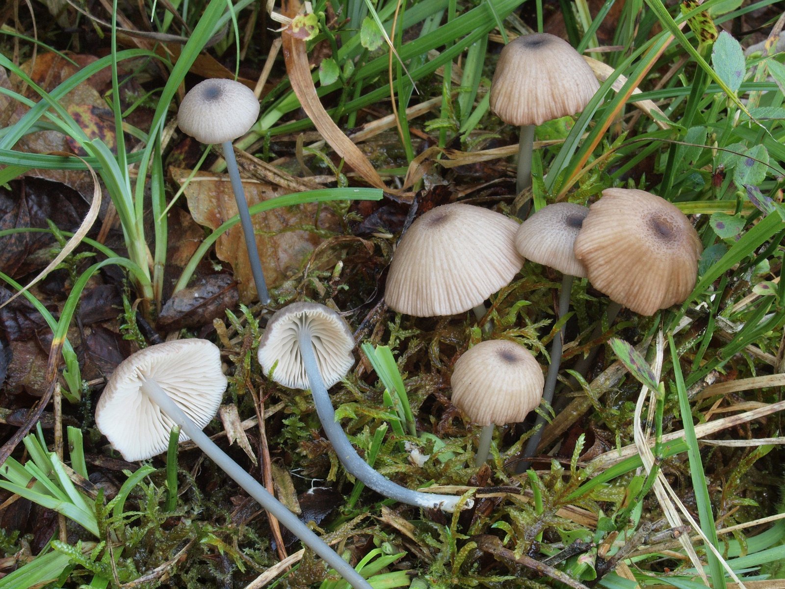 Entoloma exile (Schmächtiger Zärtling) mit nur frisch blaßblauen Stielen und mit Ausnahme der Mitte rasch verblassenden Hüten