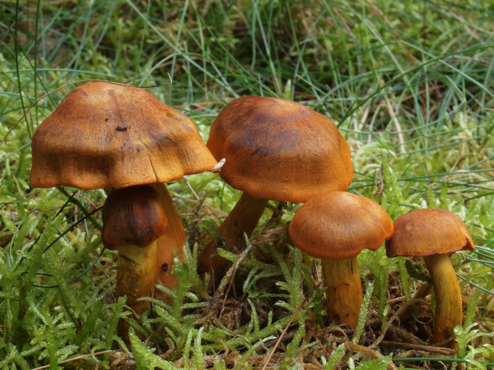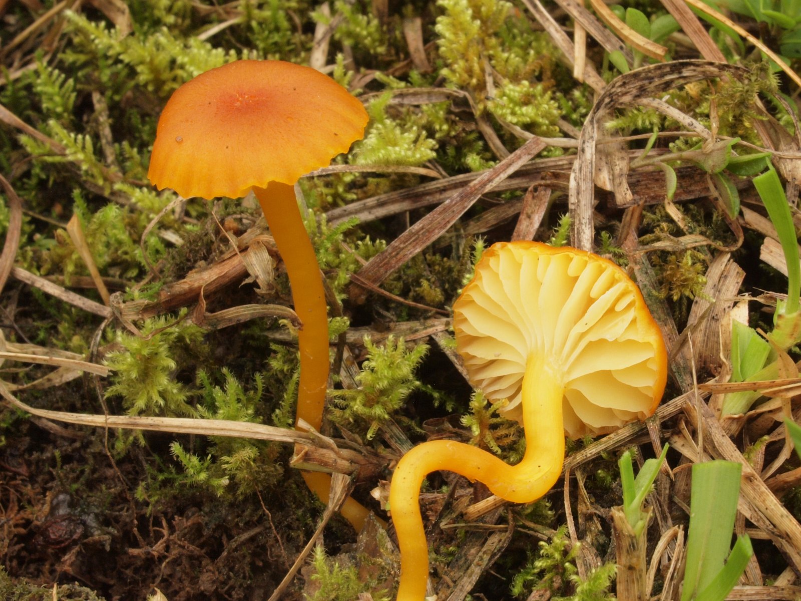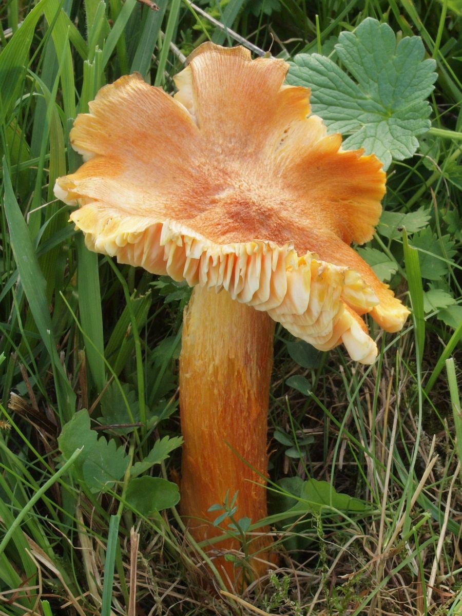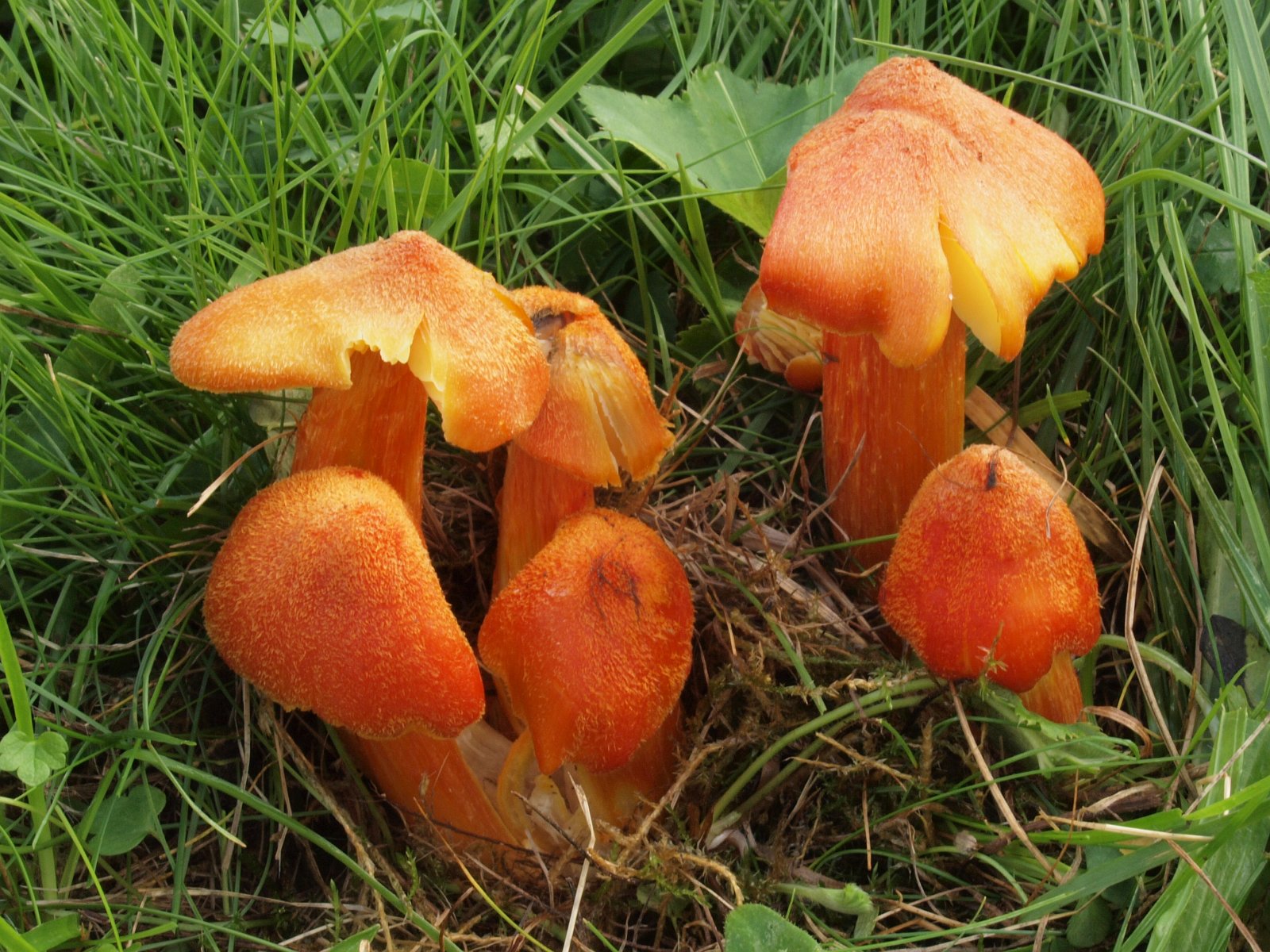 Einer muss der letzte sein und hier im Duett mit dem Feuerschuppigen Saftling. Beide Arten erscheinen in der Eifel oft schon im August vor der eigentlichen Saftlingsaison. Möglicherweise werden sie daher oft noch nciht beachtet und sind häufiger, als die Funddaten erwarten lassen.
