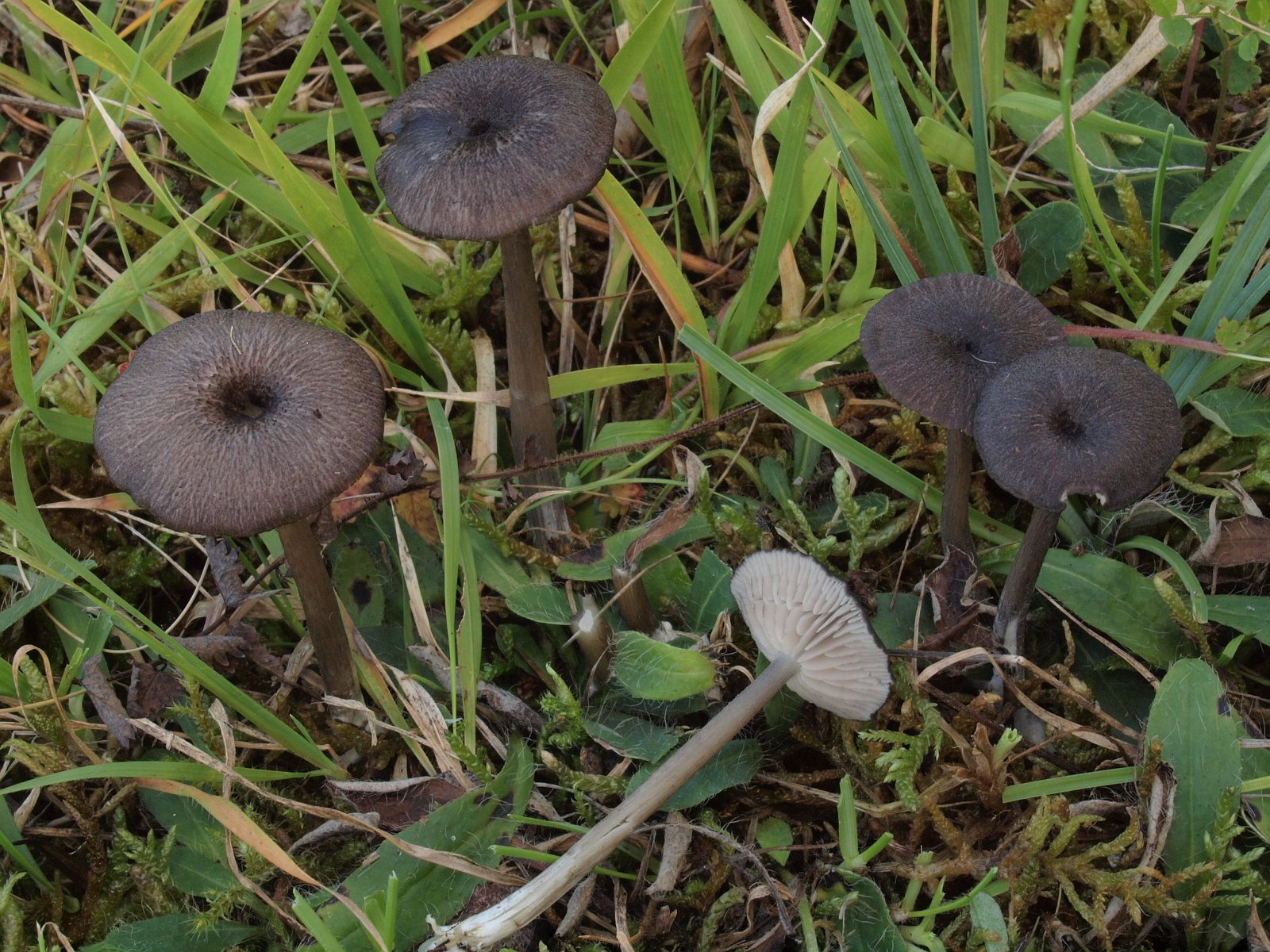 Entoloma exile (Schmächtiger Zärtling) mit nur frisch blaßblauen Stielen und mit Ausnahme der Mitte rasch verblassenden Hüten