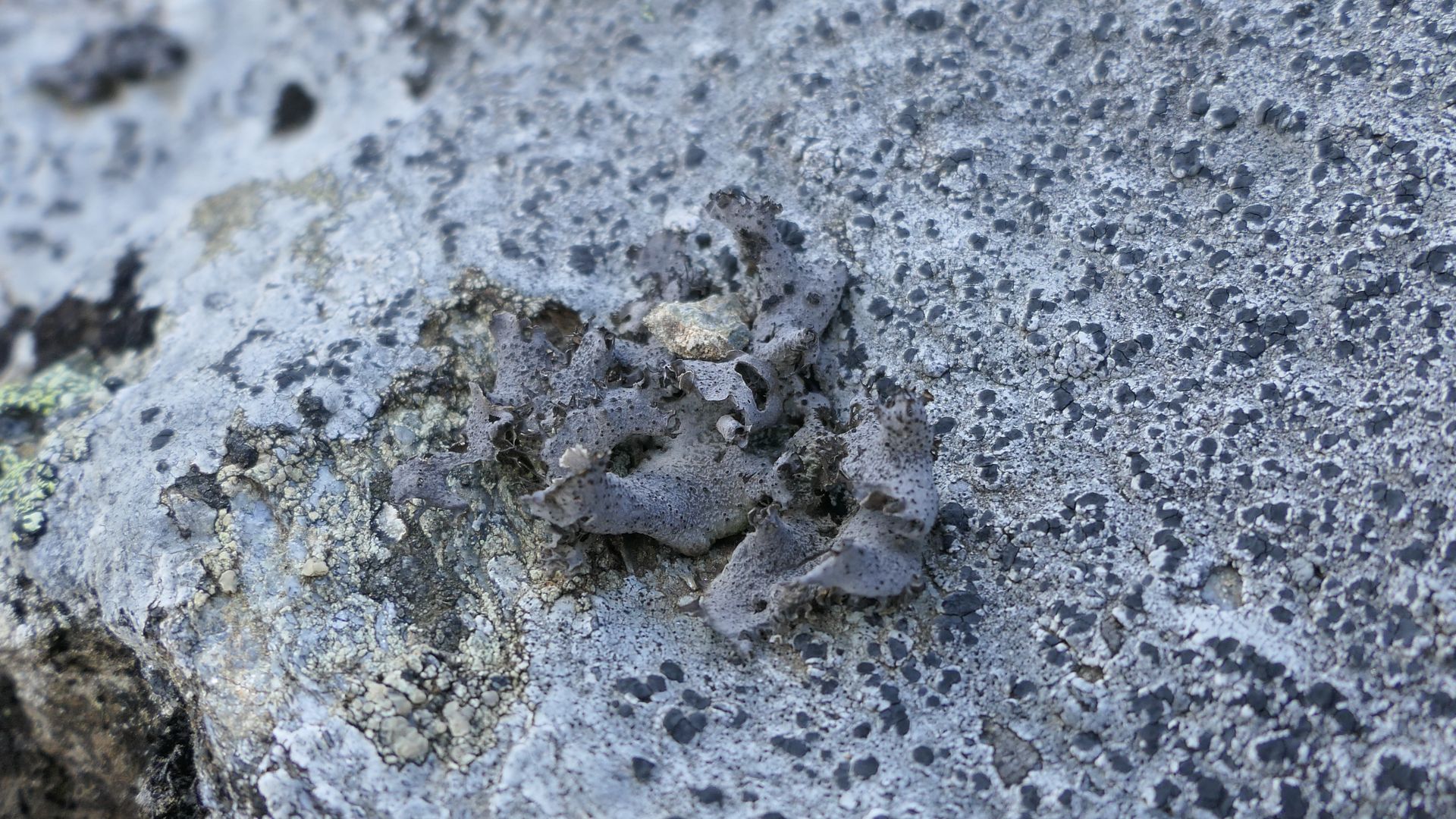 An dieser Felswand fiel mir unter anderem einen seltame geformte Nabelflechte mit mehrlappiger Wuchs mit Zilien am Thallusrand auf, was ich so noch nicht gesehen hatte.