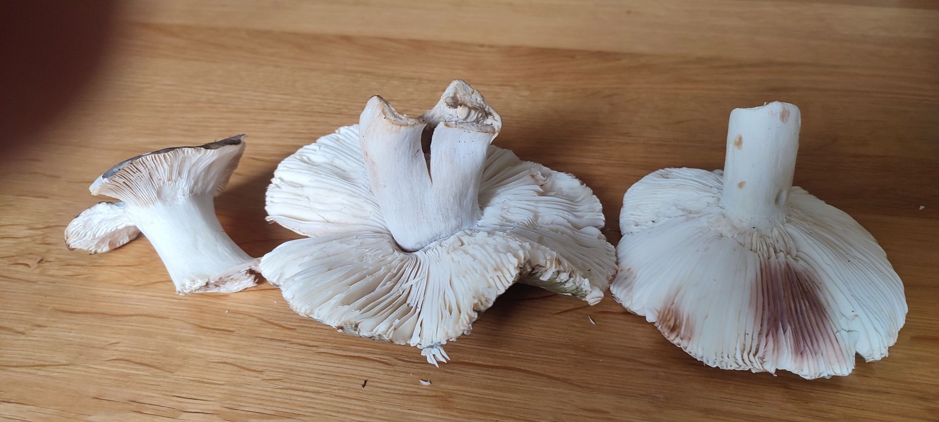 2. Lamellen eher wenig mit fleischrosalichem Schimmer