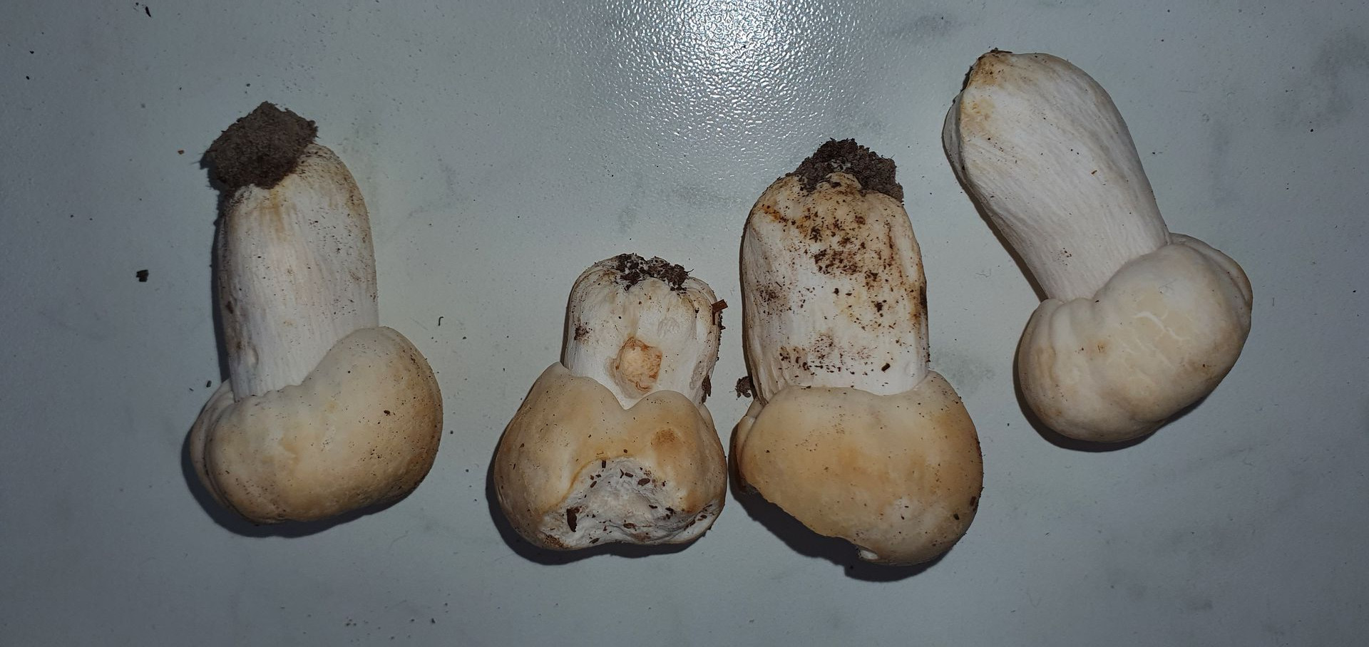 1. ganz junge Fruchtkörper, recht beige, der rechte teils leicht weißlich beige.