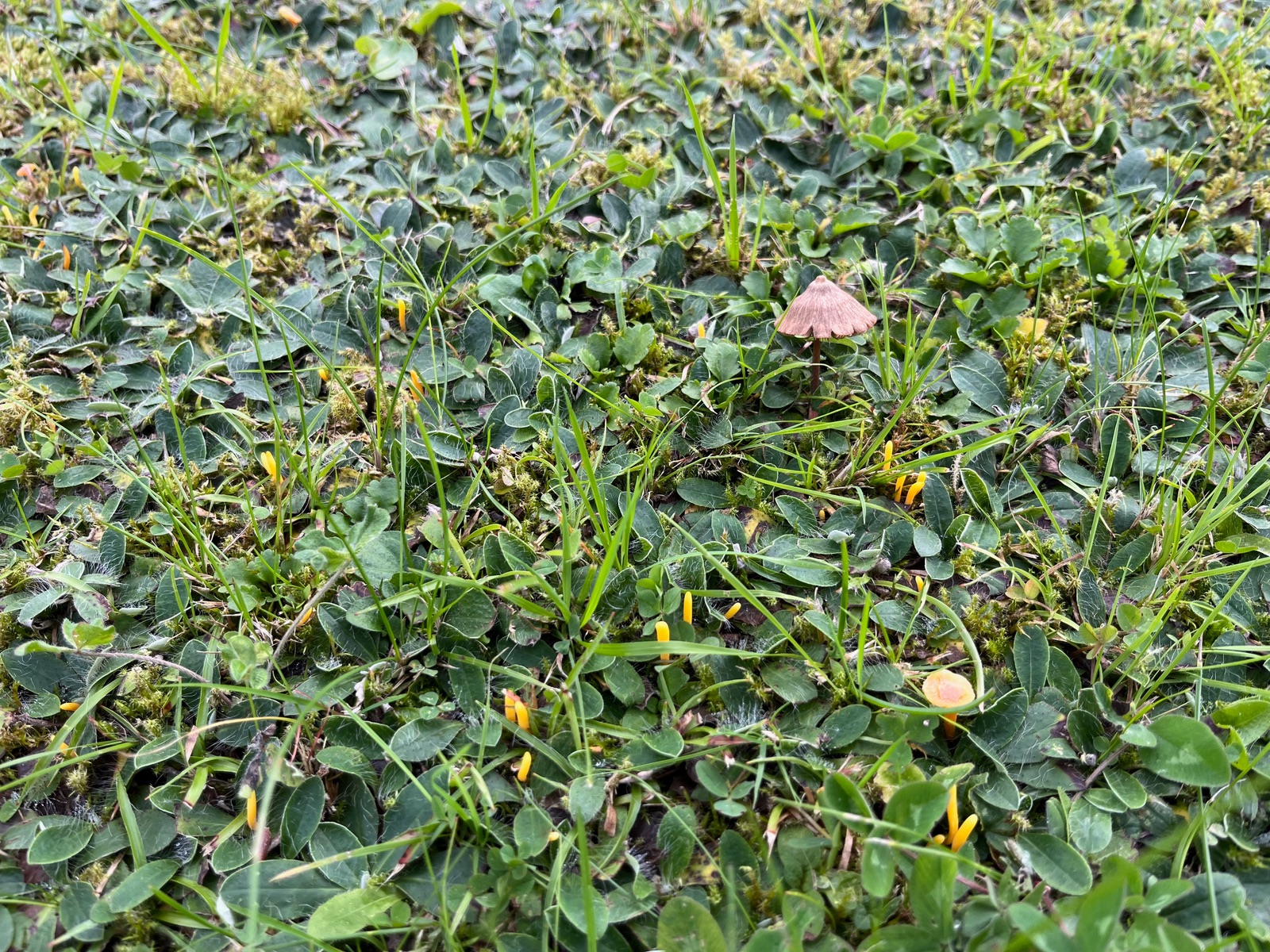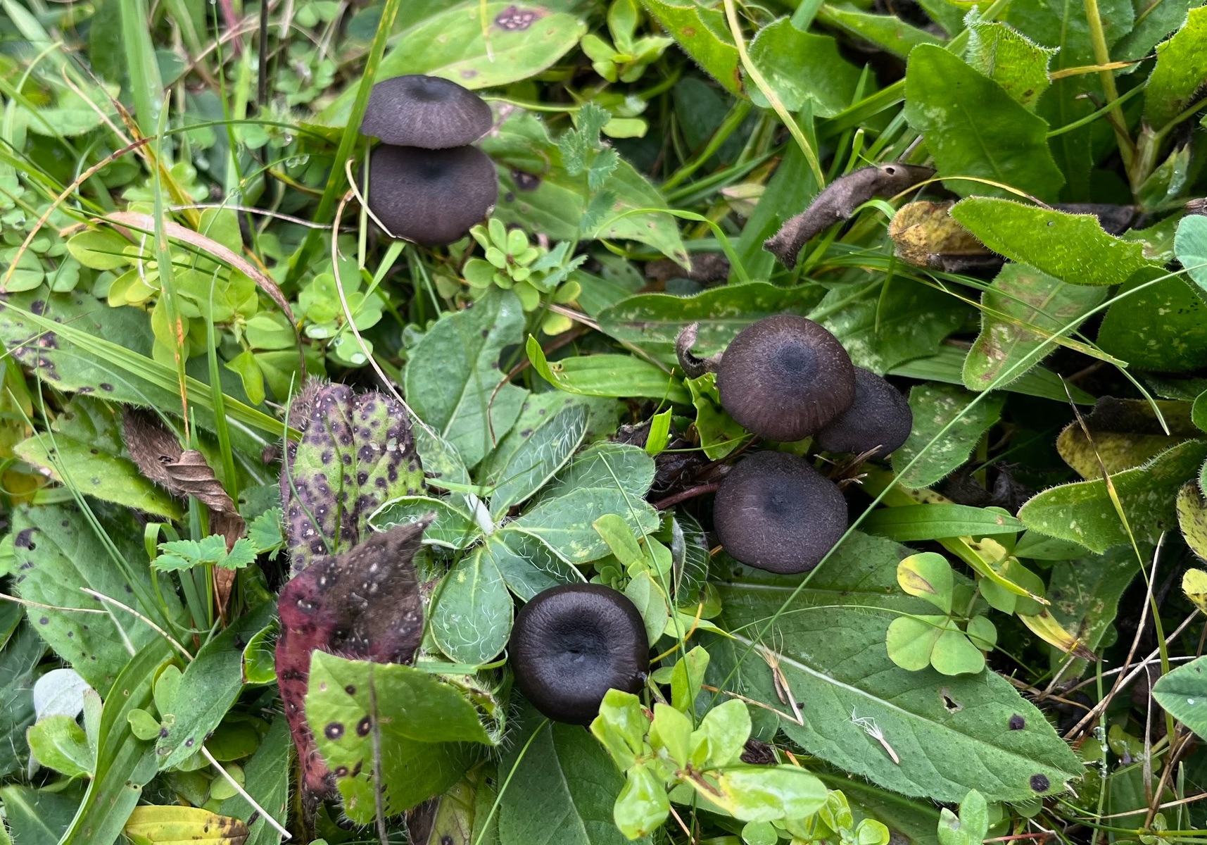 28. das Beste des Tages: Zipfelmützen des Schwärzenden Saftlings. Das macht Hoffnung auf Wiesenpilze!