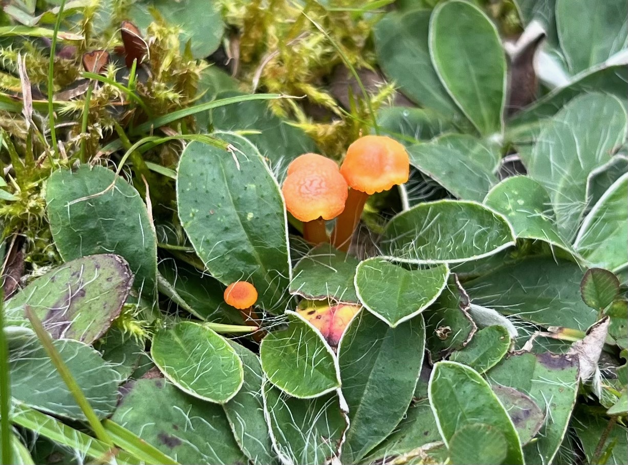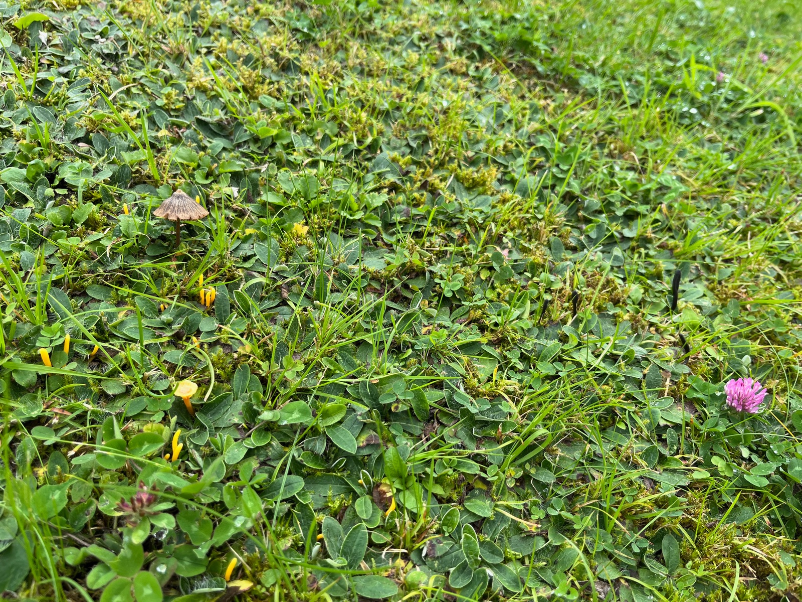 28. das Beste des Tages: Zipfelmützen des Schwärzenden Saftlings. Das macht Hoffnung auf Wiesenpilze!