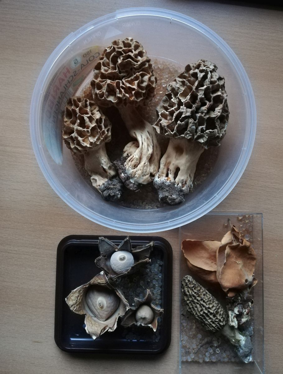 Wichtig ist beim Gefriertrocken das grobe Silica-Gel und den Pilz getrennt durchzufrieren. Dann erst gemeinsam in ein ausreichend großes,