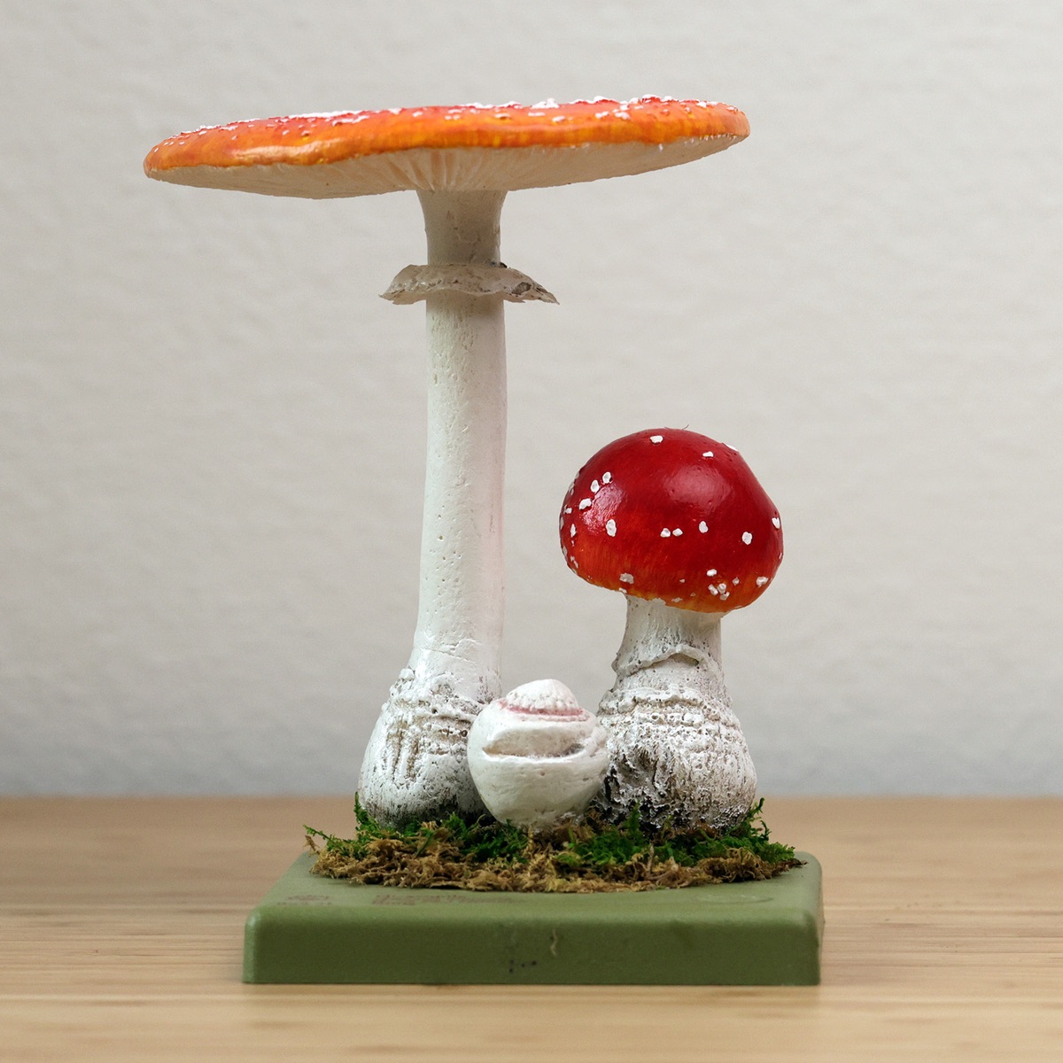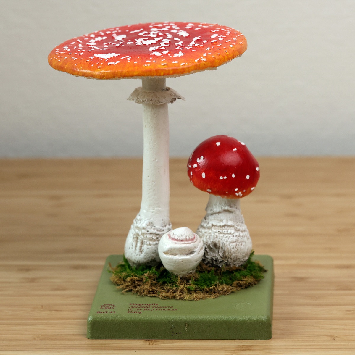 Bei Fliegenpilzen habe ich allerdings leider mit beiden Verfahren noch nicht so das überzeugende Ergebnis erzielen können. Noch nicht ganz geschlüpfte Pilze gehen (mit Aushölen, mit Silica füllen und dann in den No-Frost-Gefrierschrank werfen) einigermaßen, aber so ein richtiger prächtiger Fliegenpilz schrumpelt ziemlich.