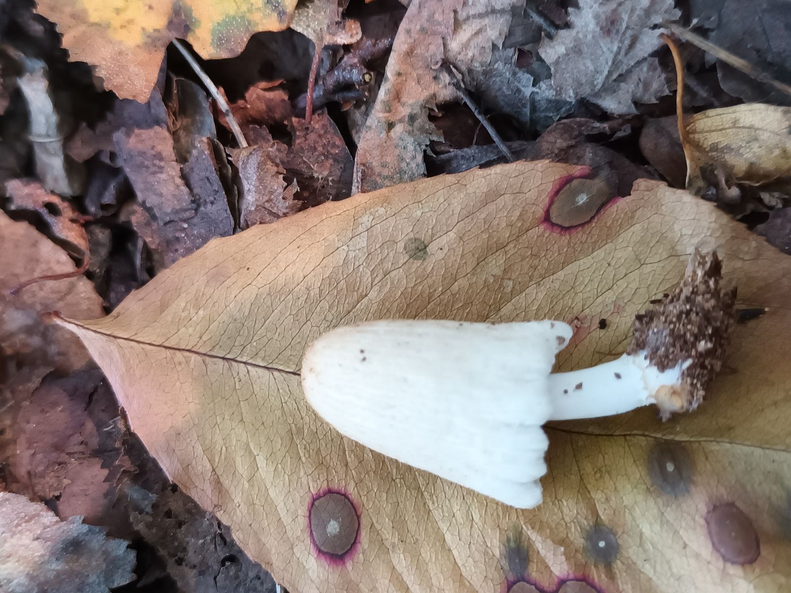 Es war dort mäßig feucht, Nachbarn war ein Kartoffelbovist und ein junger Birkenporling. Es gibt dort Eschen, Birken und hauptsächlich Laubwald. Der Boden ist sauer, sandig und moorig. Die Stielbasis ist mit weißem Filz versehen.