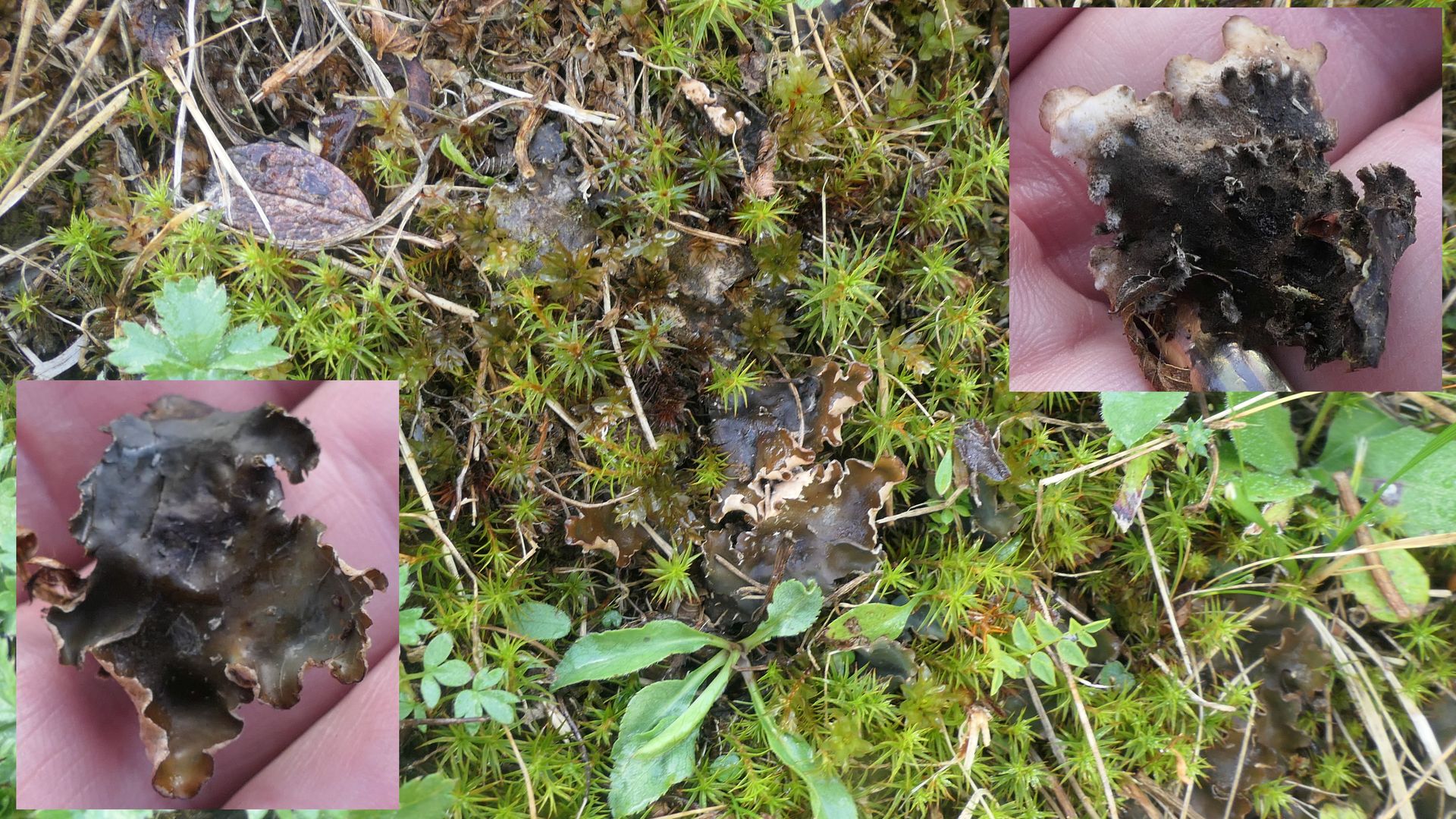 Bild 1 Peltigera im Moss am Wegrand. Einsatzbilder: Foto von Ober- und Unterseite noch vor Ort