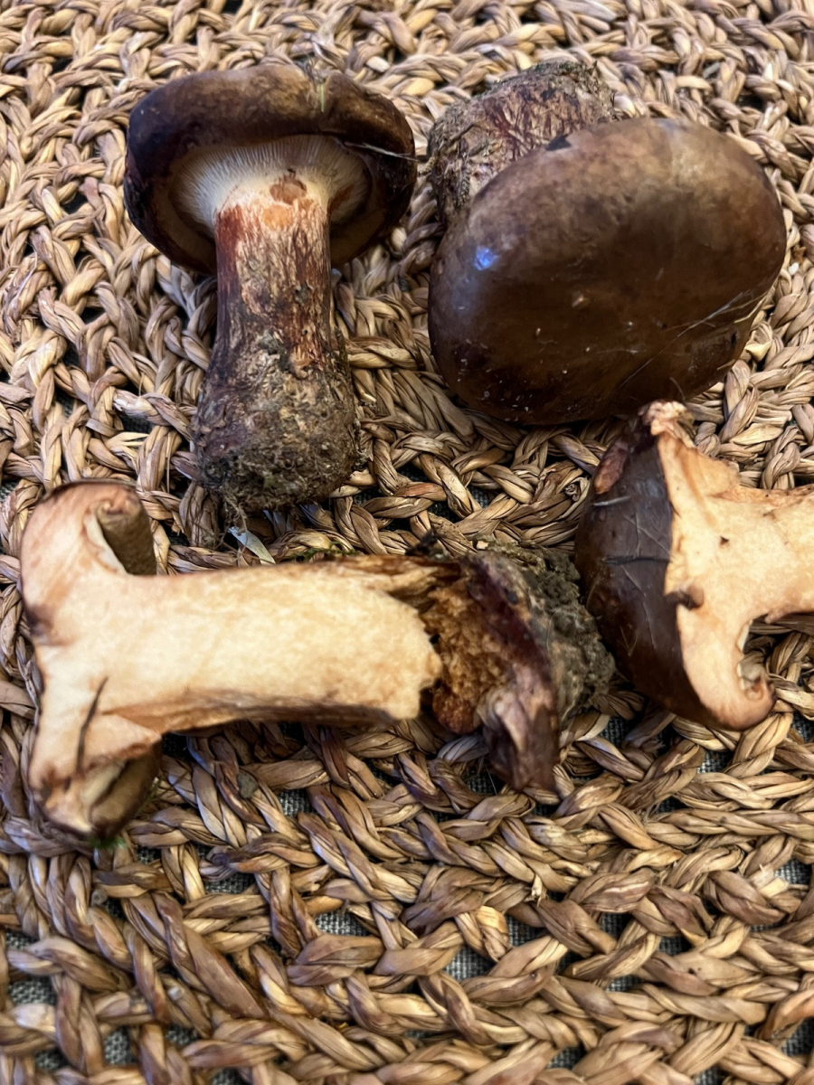 Die Jungs haben nur mit dem Hut aus dem dicken Moos rausgeschaut und erst dachte ich dass es auch Birkenpilze sind,aber die Lamellen haben das schnell verworfen.