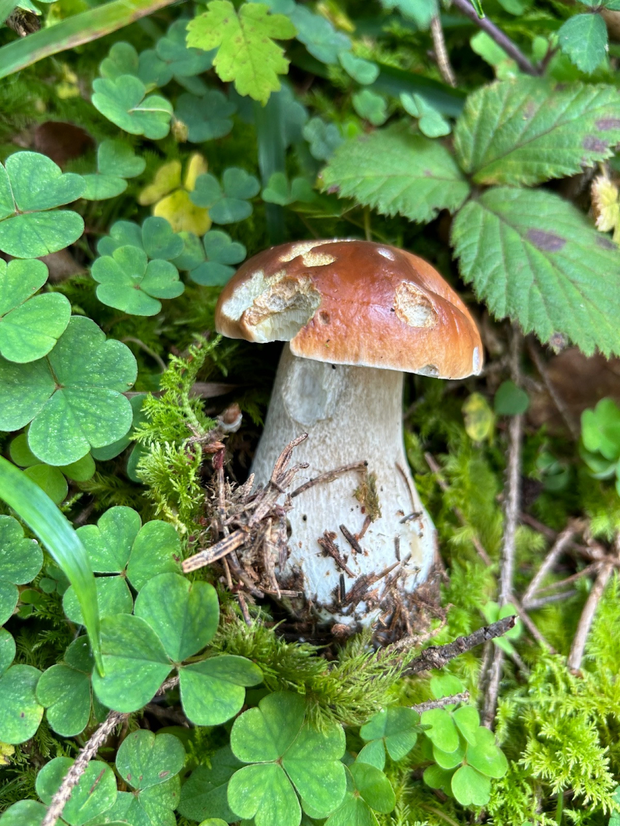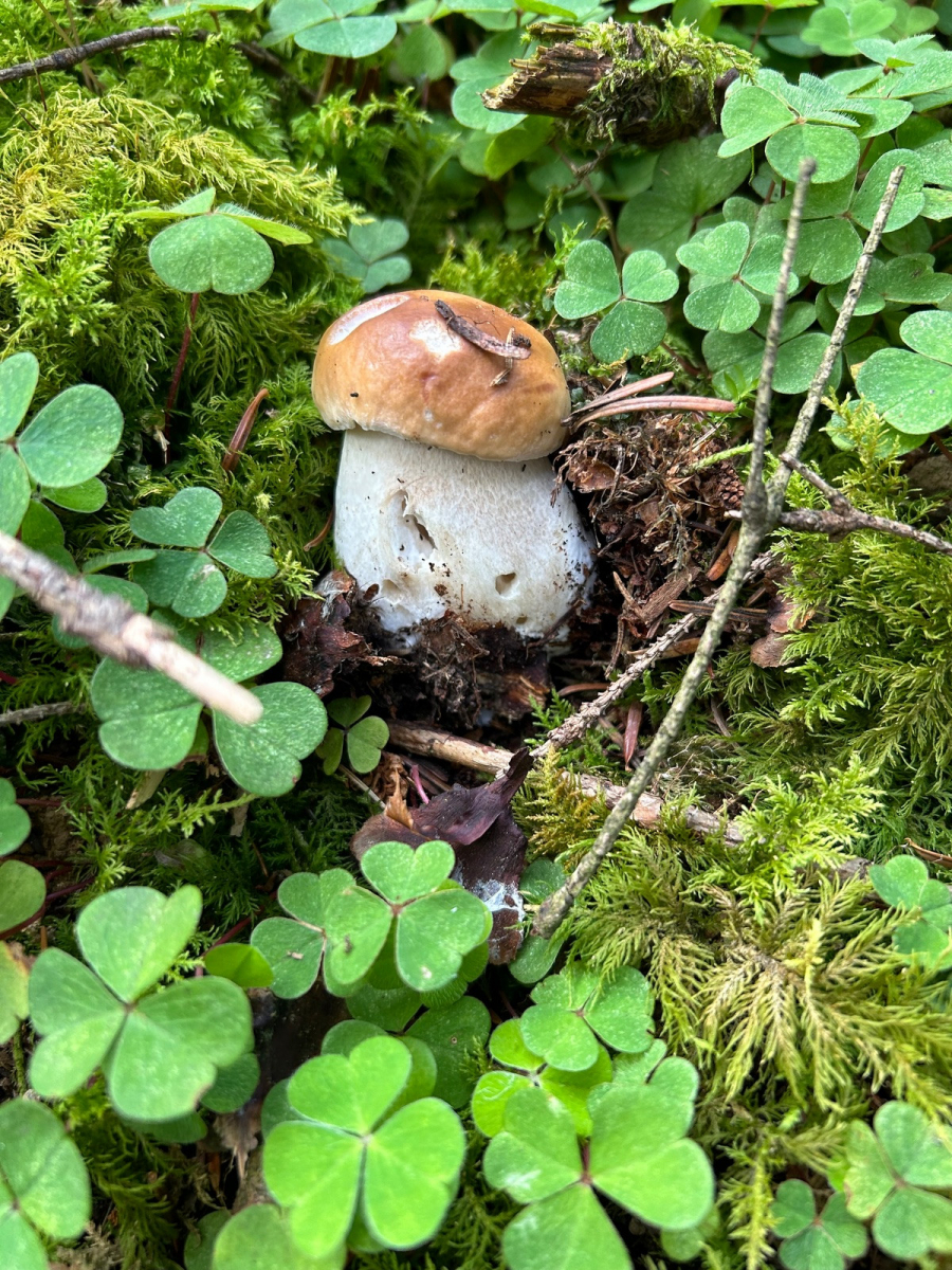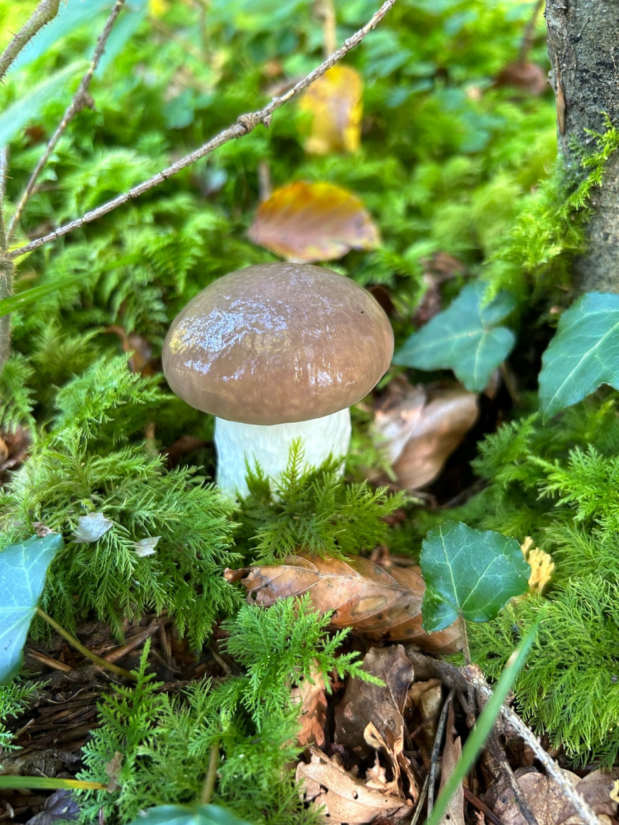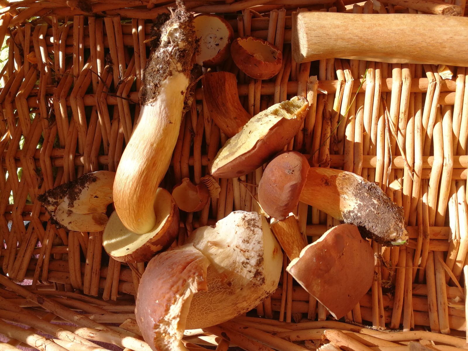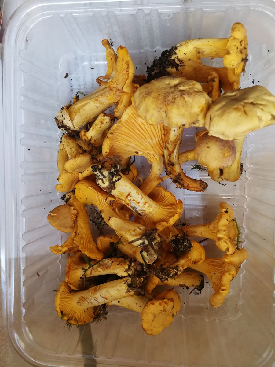 Wir fanden Pfifferlinge, frische Maronenröhrlinge und zu unserer großen Freunde auch endlich mal wieder einen kleinen Steinpilz.