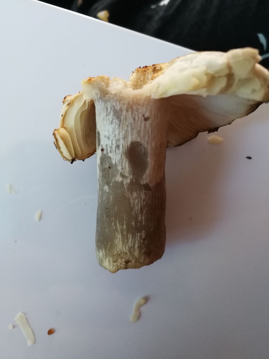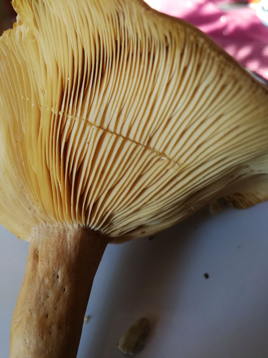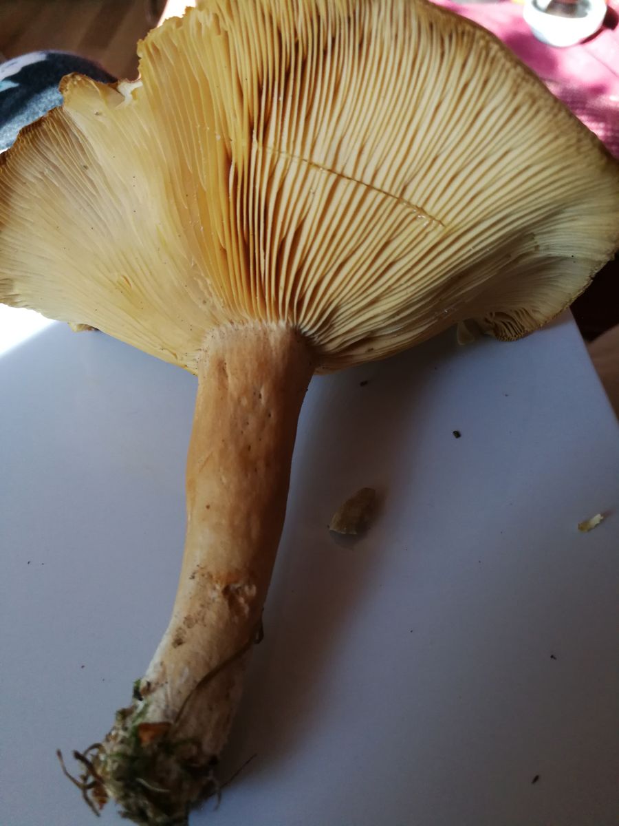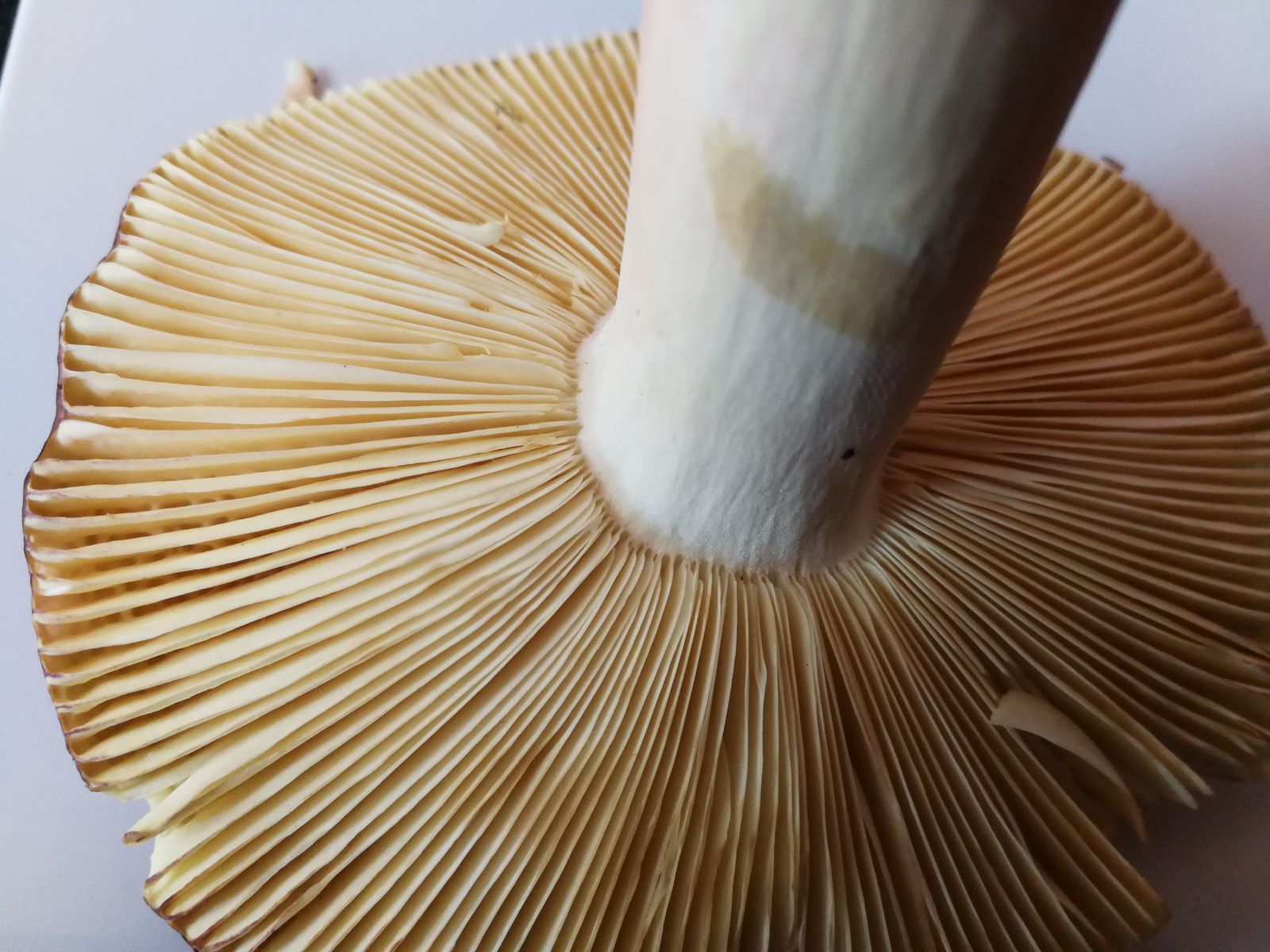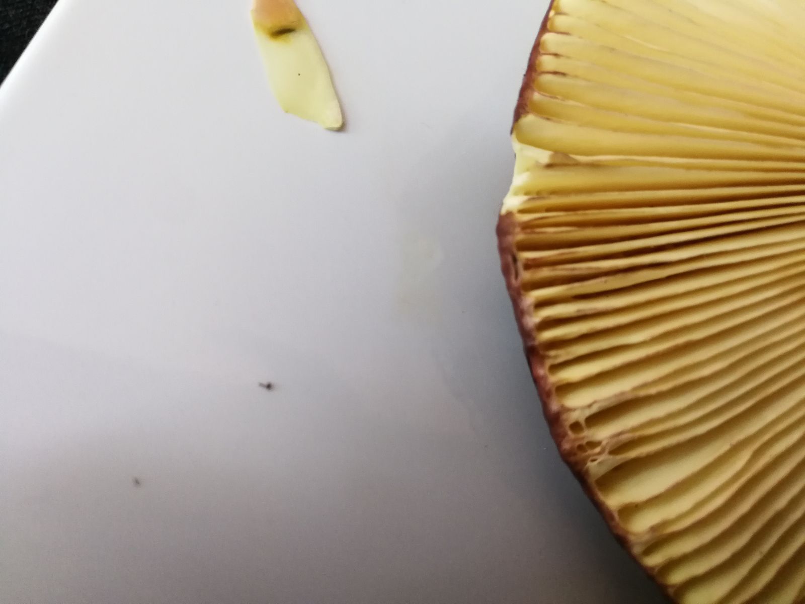 5. Hier komme ich nach Recherche zum Maggipilz LACTARIUS HELVUS. Er hat eine klare Milch und riecht nach Maggi.