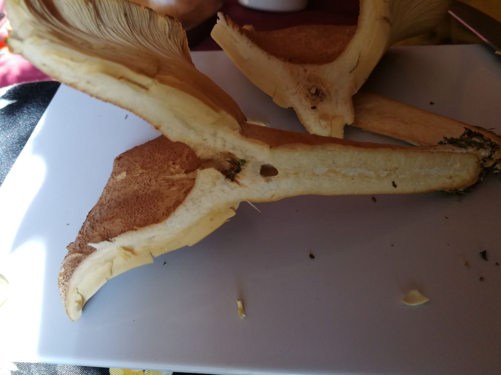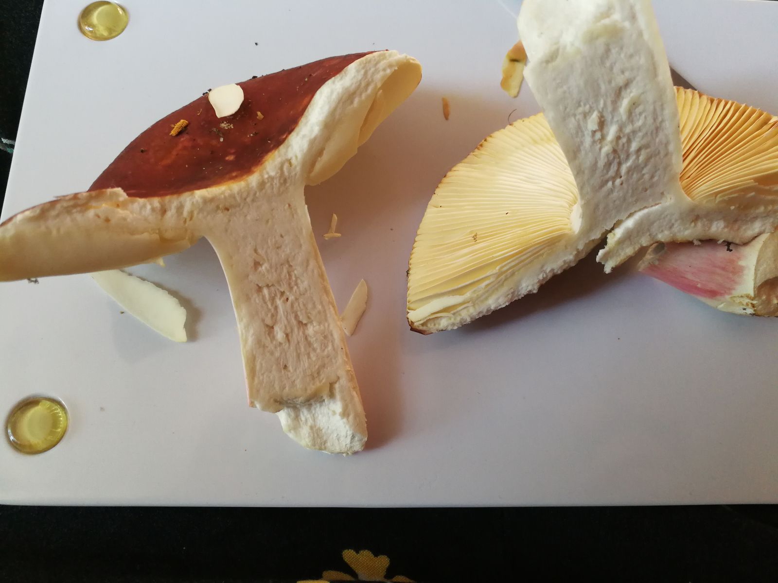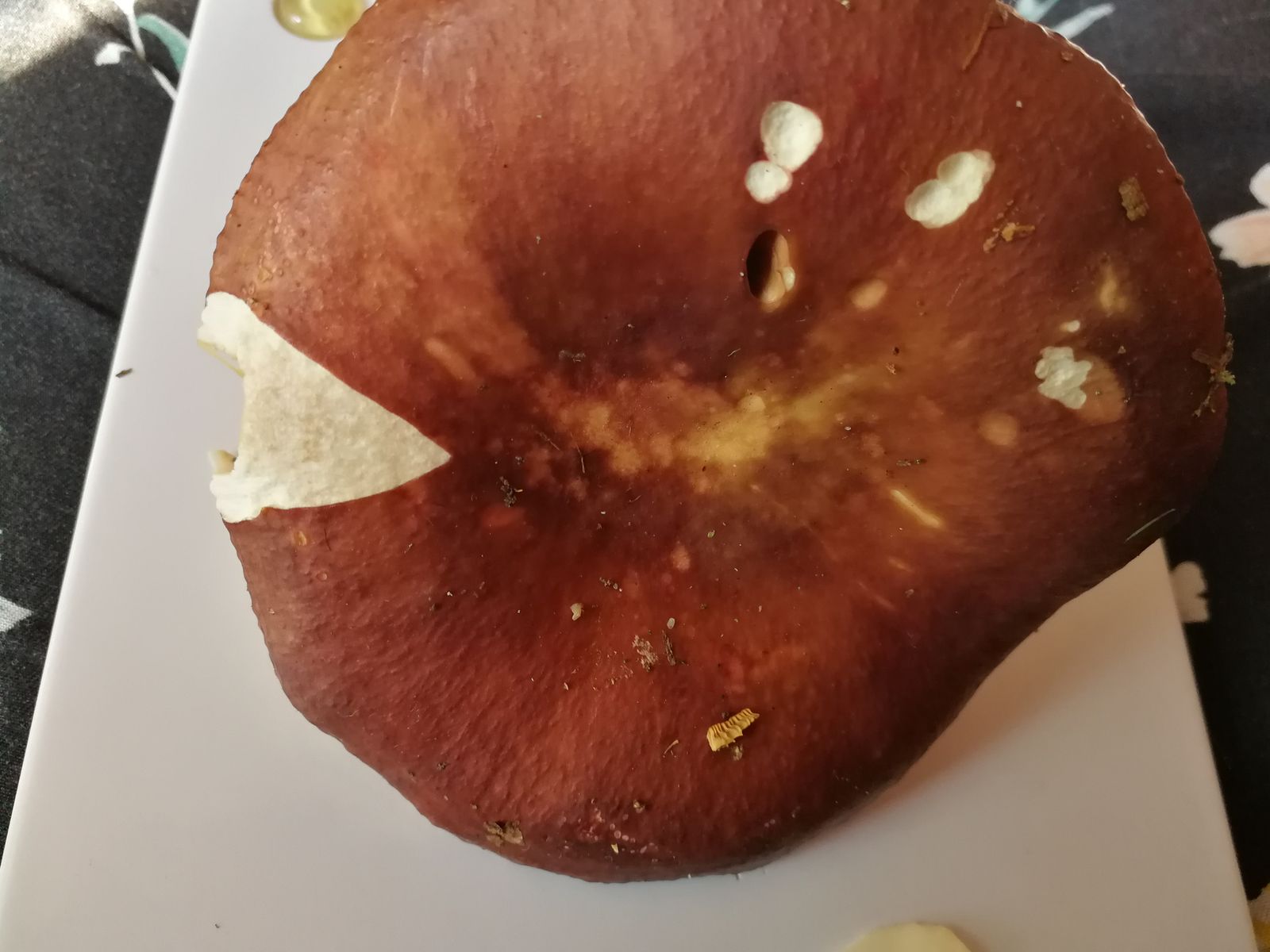 3. Da könnte ich mich nicht recht festlegen. Der Täubling ist anfangs mild, wird dann aber schnell sehr scharf. Der Geruch war auffällig, ging in Richtung Jod oder irgendwas medizinisches.