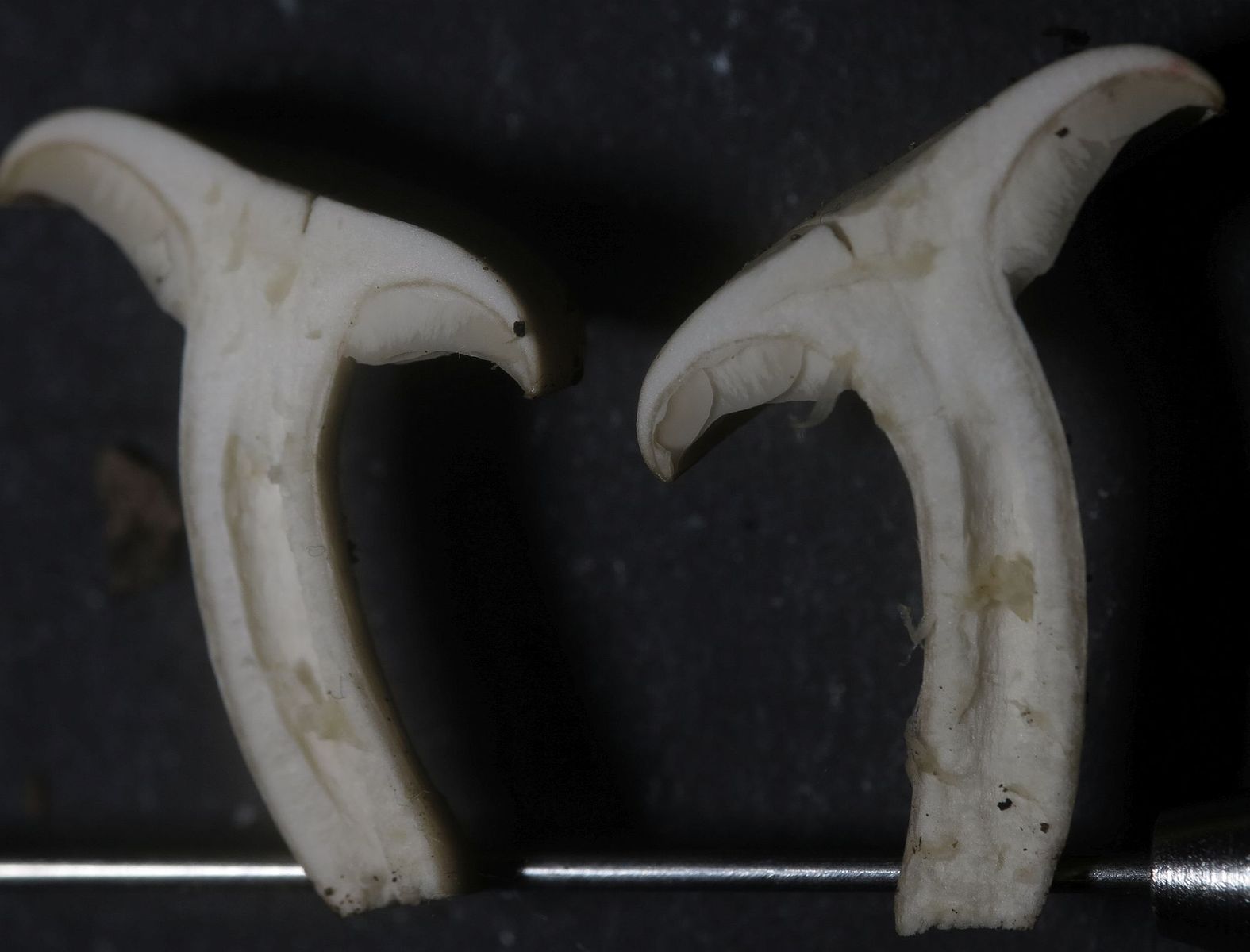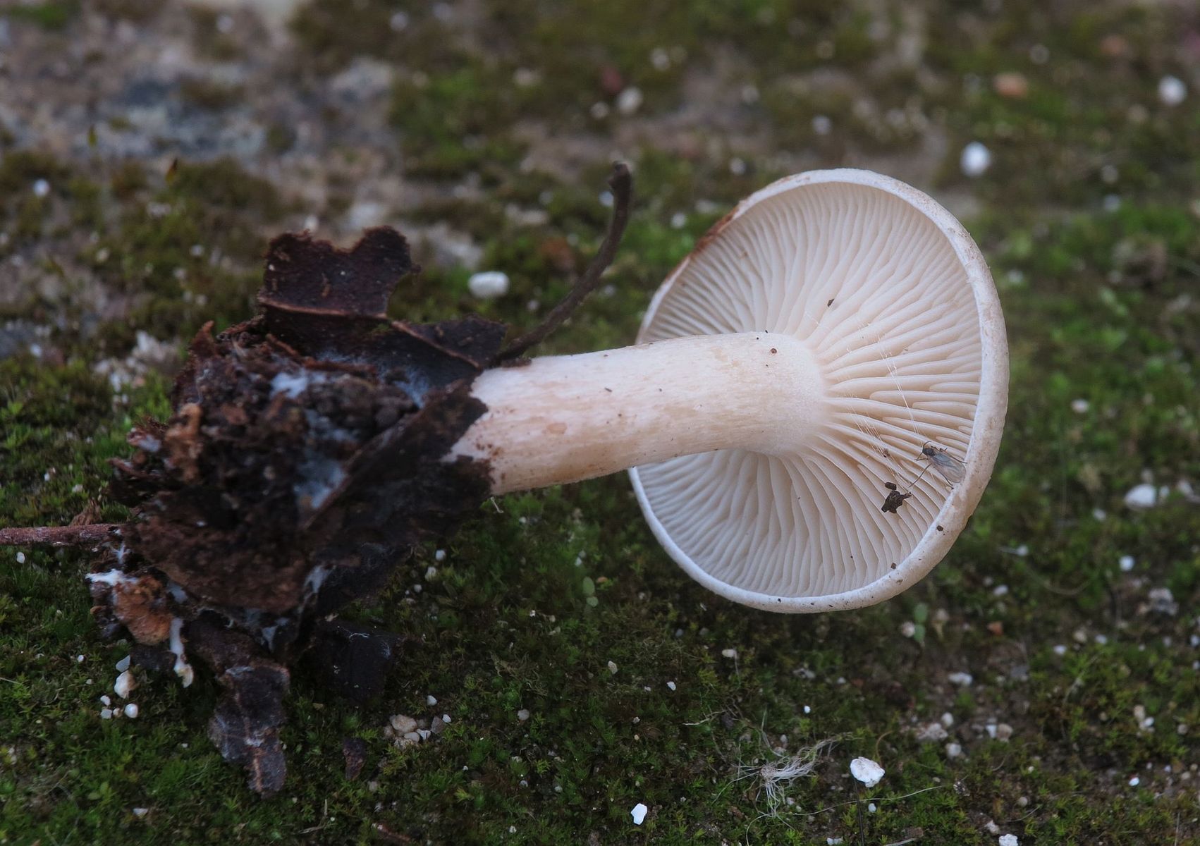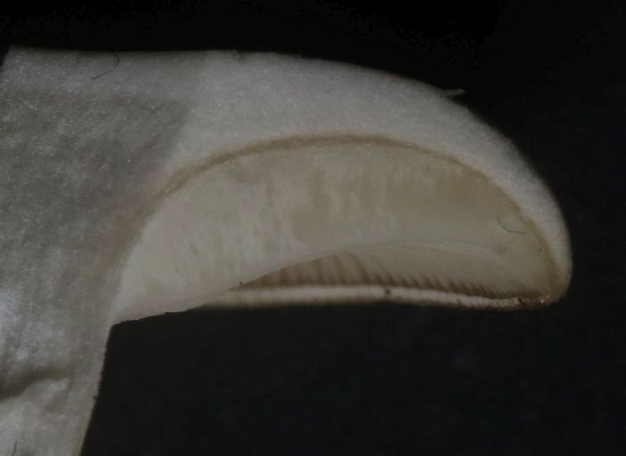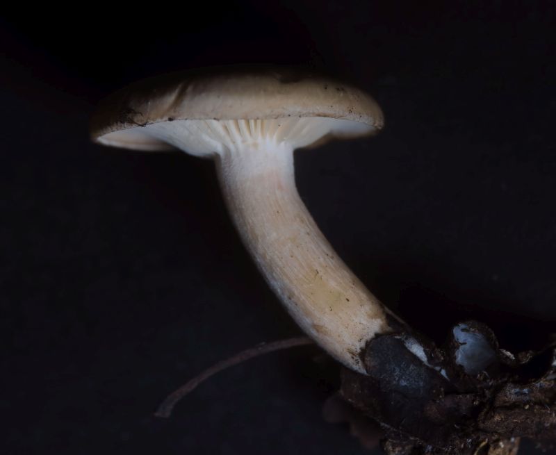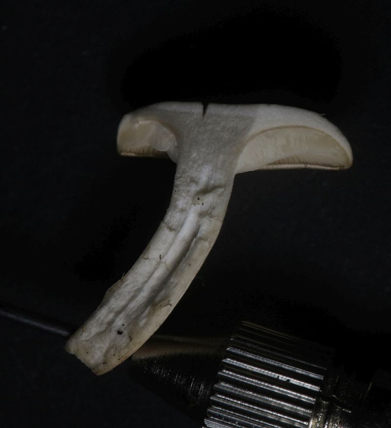 Found attached to decaying twigs of a carob tree in a shaded and humid environment. Spore print white. No particular odour, taste bitter, unpleasant.