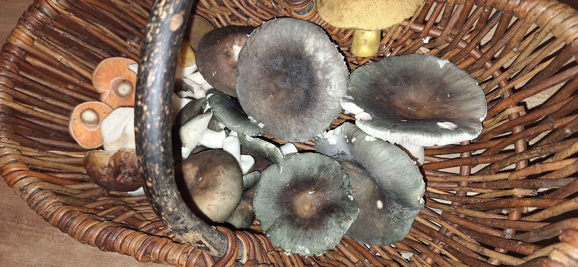 Einiges an rötlichem scharfem Kram gabs zu sehen, reichlich Ockertäublinge, Buckeltäublinge und eine ganze Menge Blaugrüner Reiftäublinge, darüber hab ich mich sehr gefreut, die find ich sehr lecker.