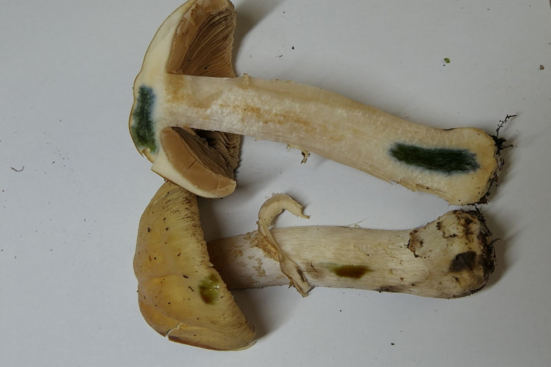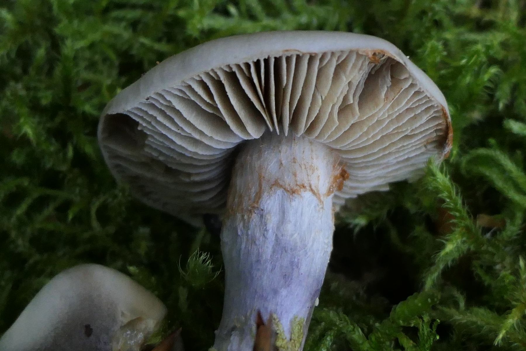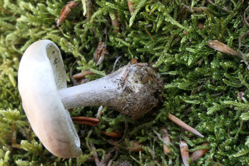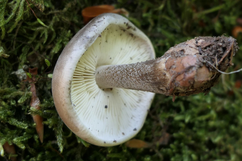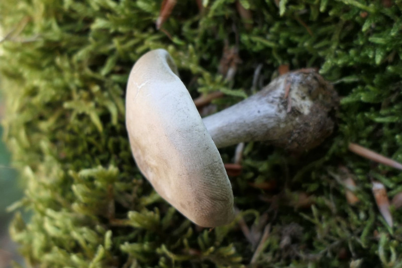 unter Buchen, auffällig war der graue Hut mit dunkler Mitte bei gleichzeitig kräftig lilafarbenem Stiel. Das habe ich in diesem Kontrast so auch noch nicht gesehen. Der Hut war etwas schleimig. Das Fleisch weiß.